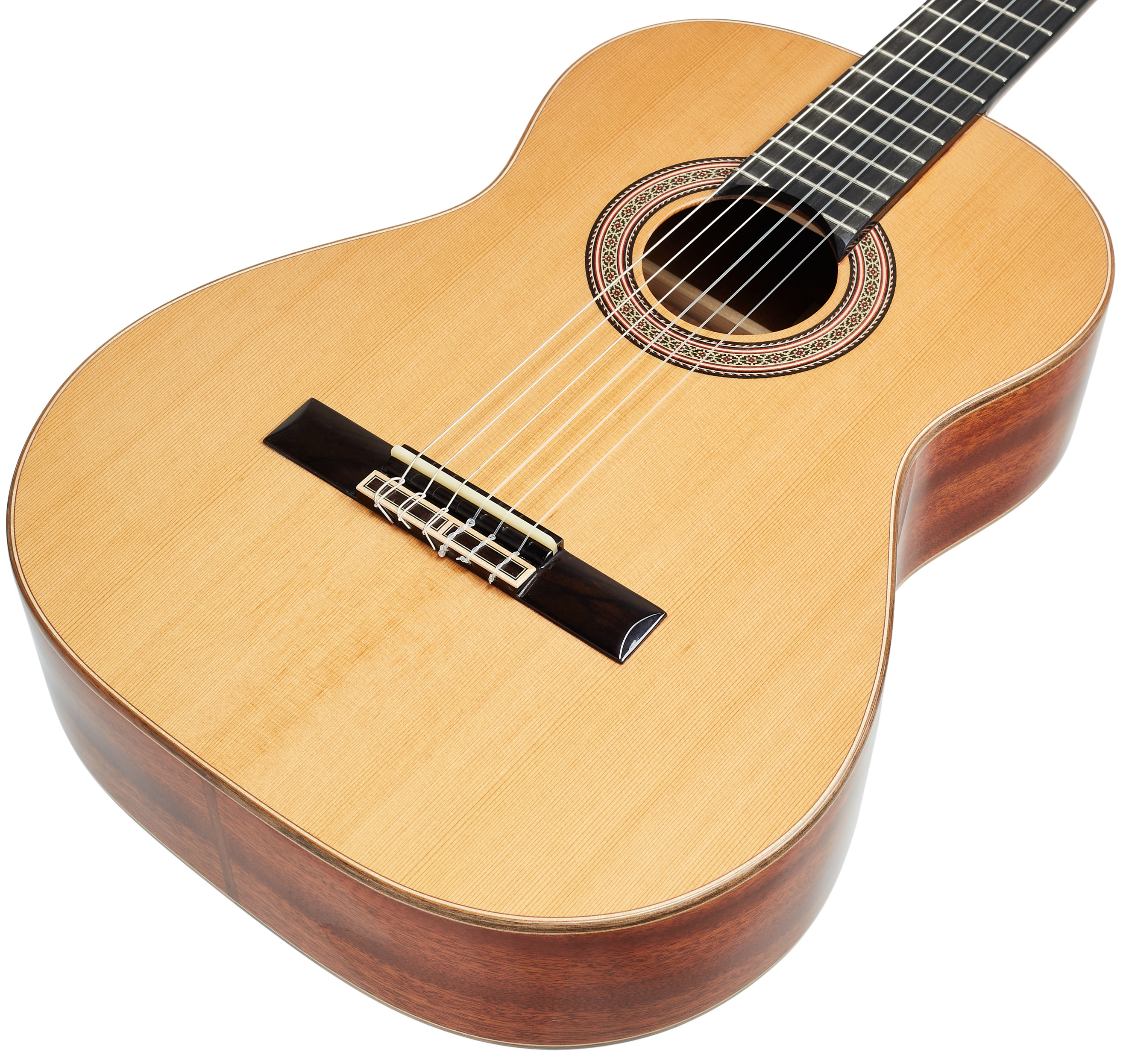 Klasická gitara Klasická gitara Admira ADM40 je ručne vyrábaný celomasívny nástroj, ktorý osloví aj tých najnáročnejších hudobníkov. Predná doska gitary je vyrobená z masívneho cédru, zatiaľ čo zadná doska a luby sú z masívneho mahagónu. Krk z afrického mahagónu sa pýši ebenovou výstuhou, zatiaľ čo hmatník a hlavica sú tiež vyrobené z ebenu. Dobré ladenie zaručuje uchytenie strún v kvalitnej klasickej mechanike v zlatom prevedení s čiernymi kolíkmi. Štýlové spracovanie podčiarkujú tradičné prvky v podobe ro