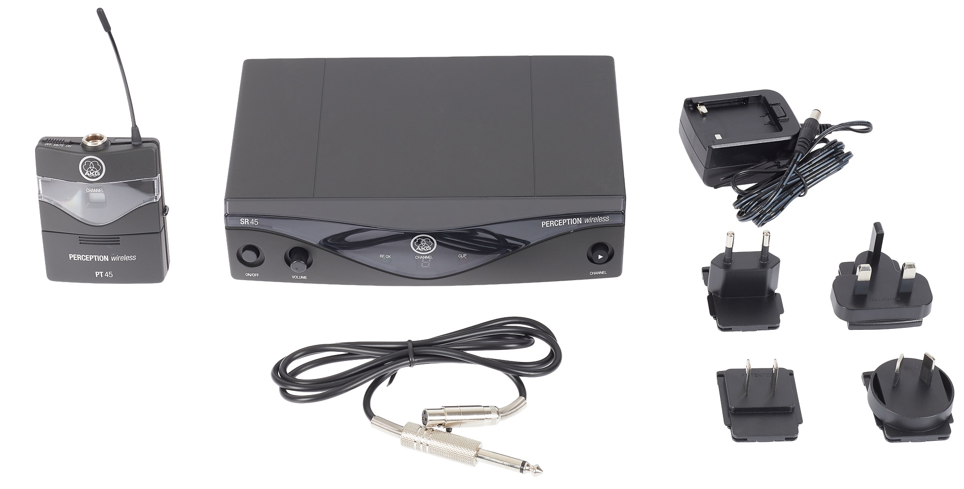 Gitarová/basgitarová bezdrôtová súprava AKG Perception Wireless Instrumental Set je bezdrôtový set určený pre elektrickú basgitaru, basovú gitaru a ďalšie nástroje. Jeho výraznou výhodou je veľmi malý a ľahký bodypack vysielač a kompatibilita so sériou mikrofónov AKG MicroMics. Bezdrôtový inštrumentálny set AKG Perception obsahuje prijímač AKG SR45 a bodypack AKG PT45. Prijímač má na svojom šasi minimálne ovládacie prvky, ale nastavenie parametrov nie je nijako obmedzené. Ovládacie prvky zahŕňajú potenciome