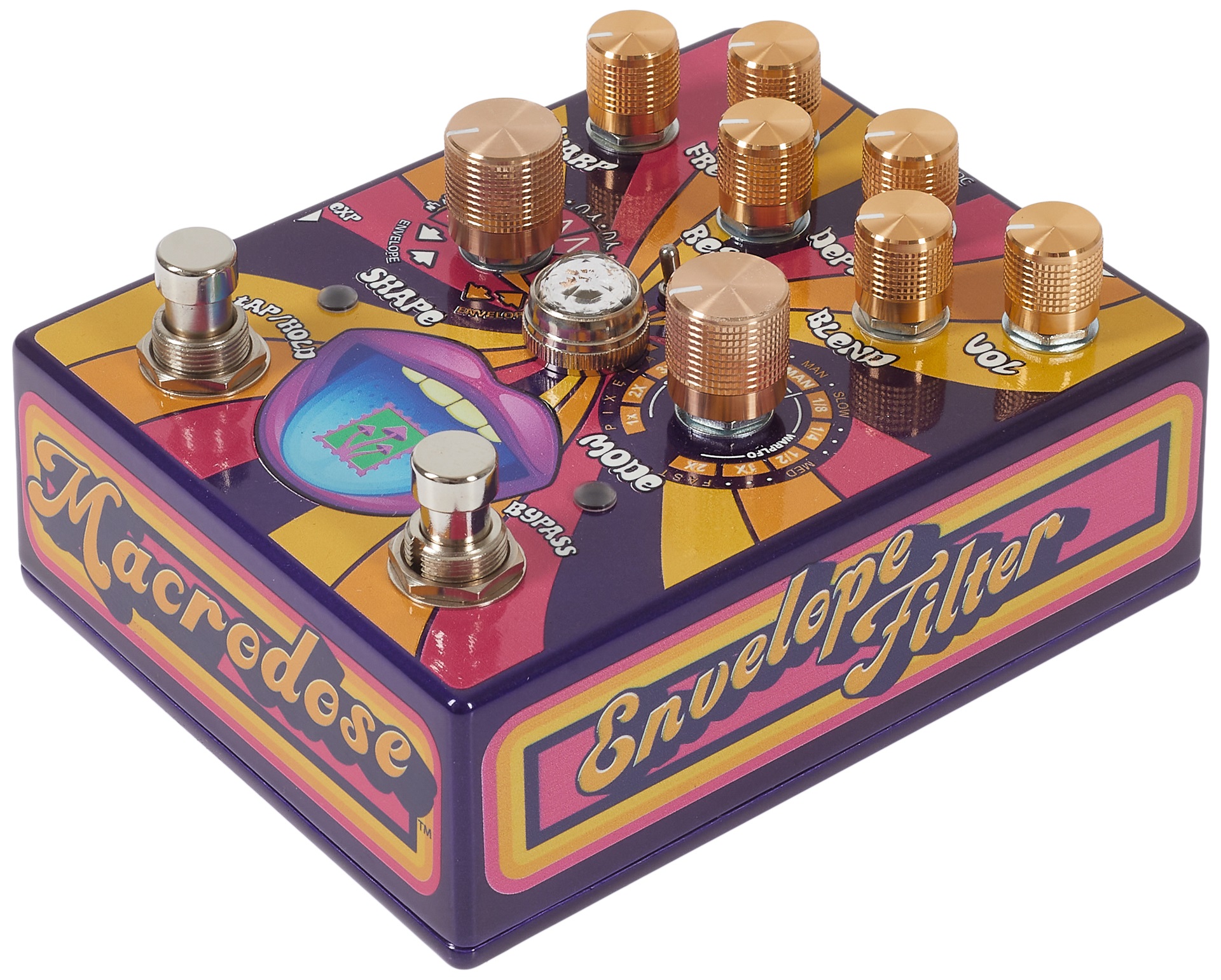 Gitarový efekt Pedálový efekt Macrodose od americkej značky Allpedal je obálkový filter s digitálnym ovládaním čisto analógového obvodu, jedenástimi operačnými módmi a siedmimi LFO krivkami, s ktorým budete mimoriadne detailne formovať klasické zvuky obálkových filtrov, ako aj vytvárať originálne groove efekty. Macrodose ponúka klasické auto-wah efekty s možnosťou výberu LFO kriviek, funkcií sample/hold, step filter, random sample/hold a pixelated filter. Jednotlivé nastavenia ovládania určujú rozsah frekve