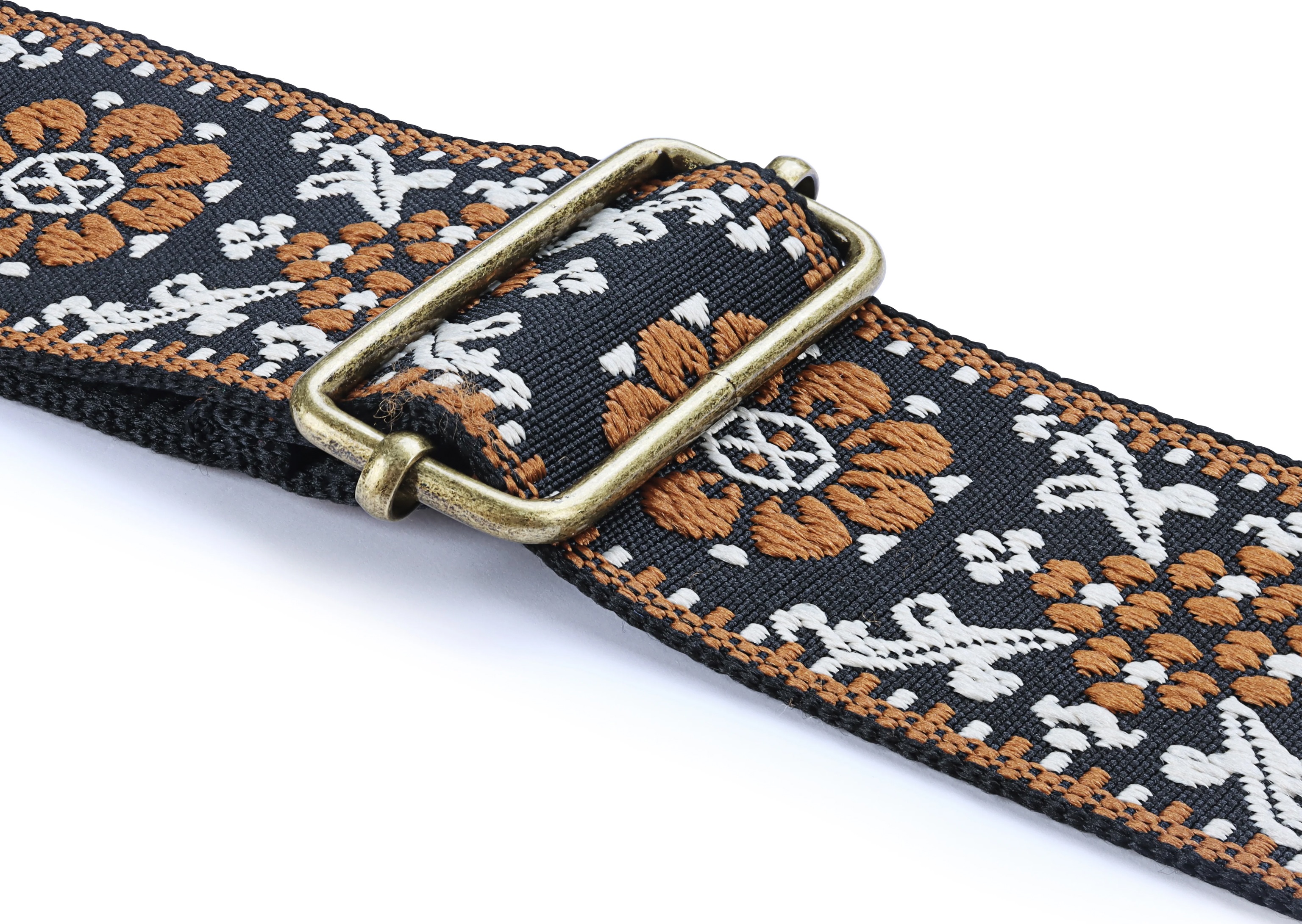 Gitarový popruh Gitarové popruhy AMUMU sú známe svojou odolnosťou, spoľahlivosťou a kvalitným spracovaním. Vďaka širokej škále modelov a farieb si každý nájde to svoje. Popruh Lucky Flower Brown pochádza z elegantnej vintage edície a vyznačuje sa krásnym vyšívaným vzorom, hnedými koncami z pravej kože a bronzovými prackami, ktoré mu dodávajú autentický starožitný vzhľad. Je vyrobený z príjemného bavlneného materiálu, ktorý je šetrný k pokožke a zaručuje pohodlie aj počas dl