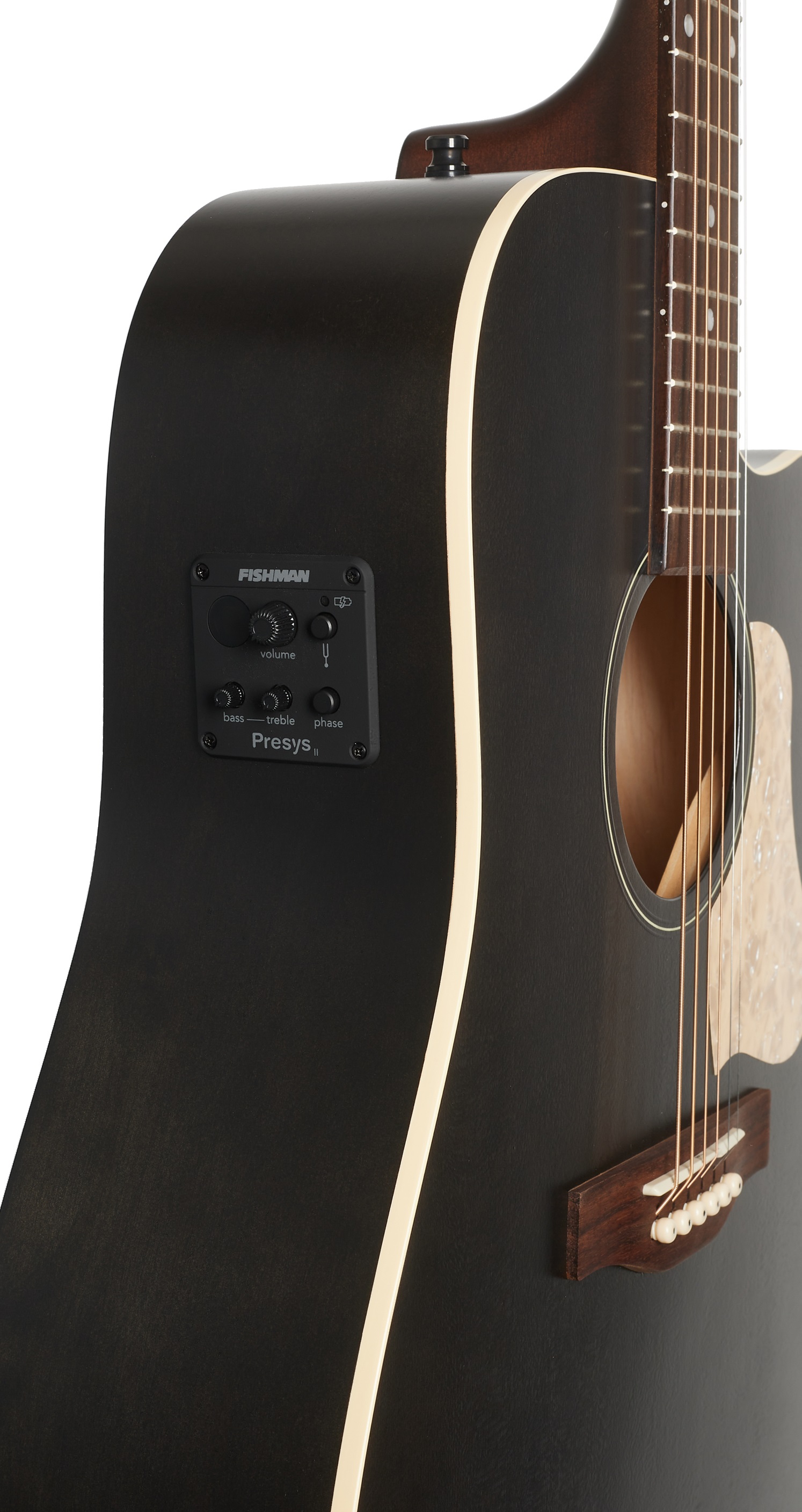 Elektroakustická gitara Elektroakustická gitara Americana Faded Black CW Presys II od kanadskej spoločnosti Art and Lutherie je typu Dreadnought, ktorý svojím vzhľadom a zvukom odkazuje na nástroje z prvej polovice dvadsiateho storočia. Je to nástroj s polomasívnou konštrukciou určený na časté koncerty a štúdiovú prácu. Telo gitary je vyrobené z masívnej prednej dosky z tlakovo testovaného cédra a zadnej dosky a lubov z vrstvenej kanadskej figúrovanej čerešne. K javorovému krku so striebornými listami je pr