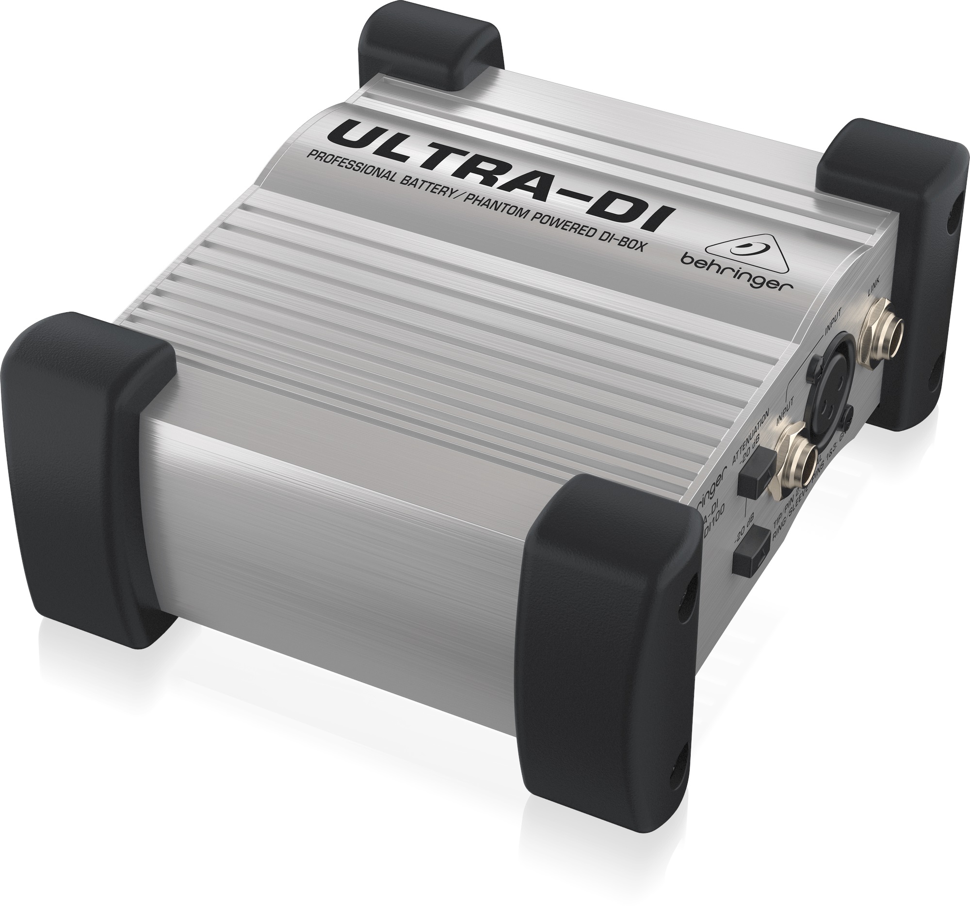 DI box Behringer DI100 je robustný aktívny DI box so vstupmi XLR a jack 6,3 mm TRS, vyváženým výstupom XLR, výstupom Link Out (jack 6,3 mm) a útlmom -20 dB a -40 dB na bezproblémové pripojenie k mikrofónom, hudobným nástrojom a reproduktorom/PA. DI box môže byť napájaný 9V batériou alebo fantómovým napájaním.