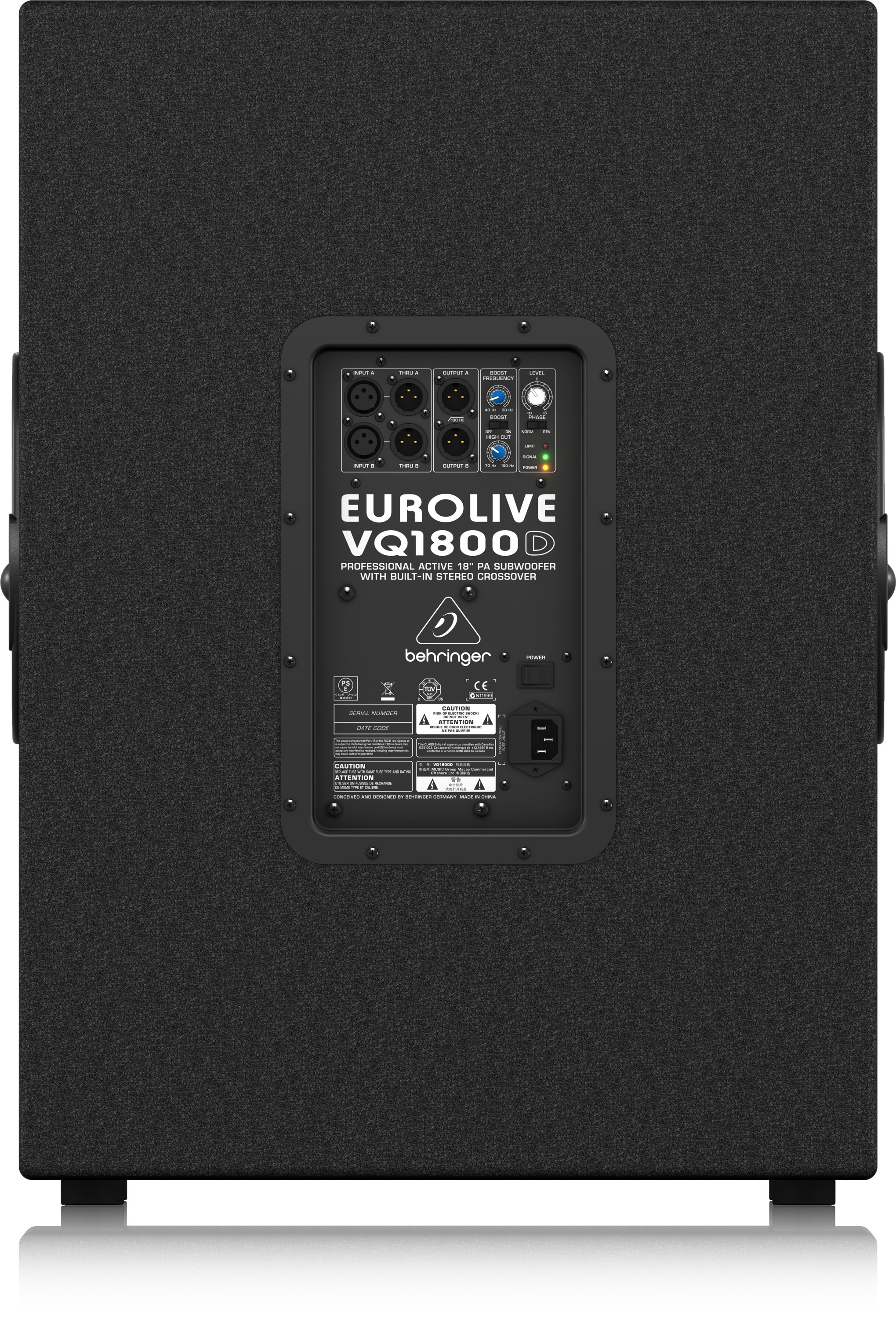 Aktívny subwoofer Aktívny subwoofer vhodný na veľké koncerty v interiéri aj exteriéri, firemné večierky alebo záhradné párty. Získate vysoko výkonný systém vhodný na trvalé alebo mobilné inštalácie. Vnútri odolnej konštrukcie VQ1800D sa nachádza 18″ woofer, ktorý vám poskytne mimoriadne čisté basové frekvencie a spolu so zosilňovačom triedy D maximálny výkon až 500 W. Hlavný panel je vybavený dvoma vstupmi XLR a výstupmi THRU/OUTPUT v podobe konektorov XLR na pripojenie k PA systému. K dispozícii sú aj gomb