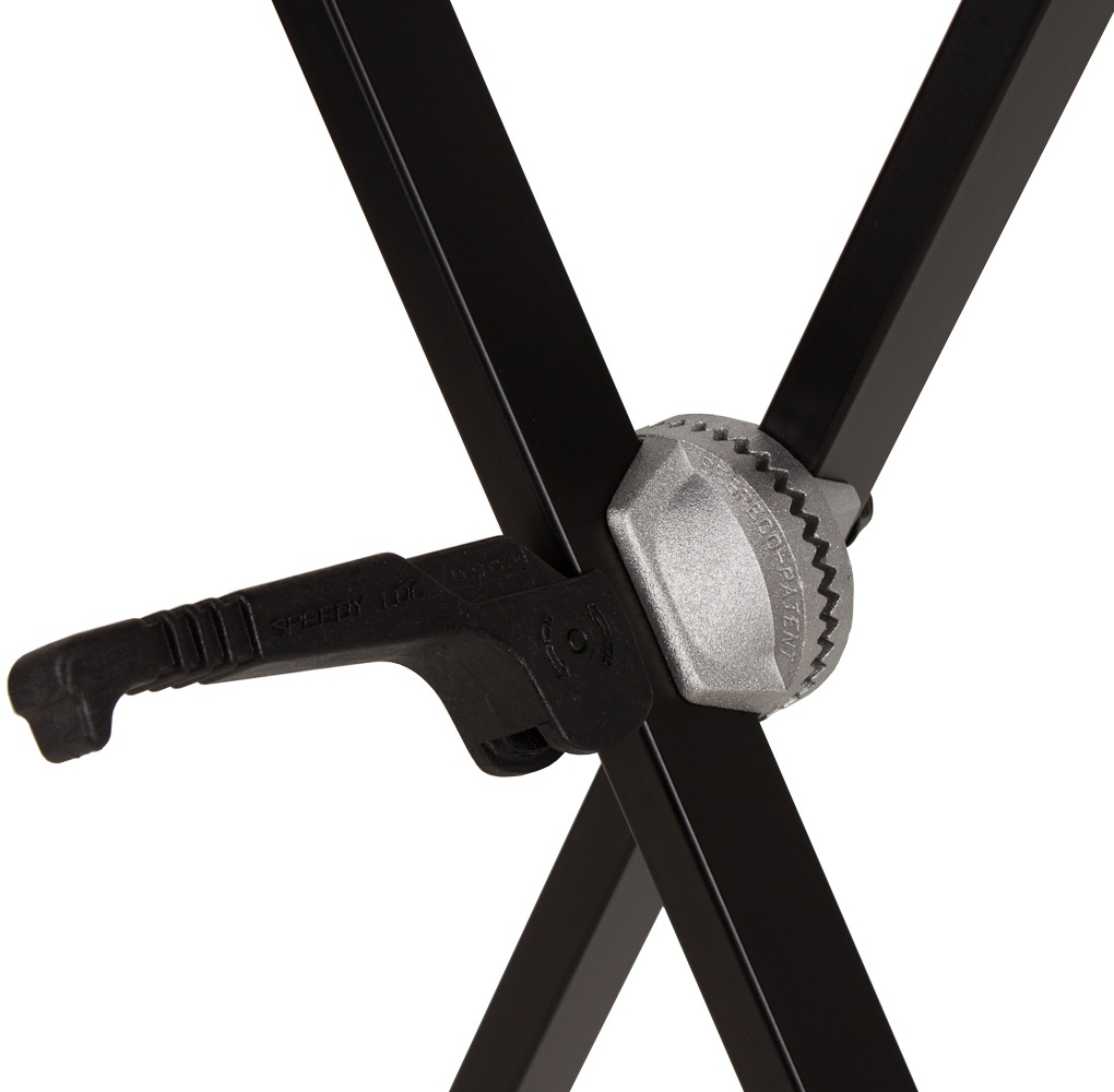 Klávesový stojan Profesionálny stojan na klávesnicu s rýchlym nastavovacím mechanizmom (0°-180°) CROCODILE SYSTEM. Oceľová konštrukcia zaručuje maximálnu stabilitu a robustnosť. – Rozstup (min. – max.): 40-100 cm – hĺbka základne: 50 cm – Hĺbka podlahy: 40 cm – upínací mechanizmus – CROCODILE + rýchloupínacia páka – vnútorný priemer rúrok 25 mm – hmotnosť: 3,2 kg – farba: čierna