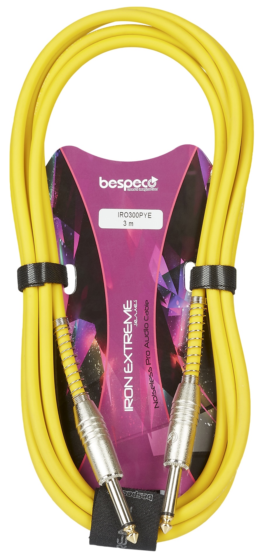 Nástrojový kábel Tento prístrojový kábel Bespeco Iron Extreme Series je vybavený vodičom z 98 % bezkyslíkatej medi (OFC) a vnútorným polovodivým PVC plášťom, ktorý nevytvára šum. Ku kvalite zvuku prispieva aj špirálové tienenie na viac ako 92 percentách vodičov alebo pozlátené konektory s kovovým telom. Samozrejmosťou je aj odolný a zároveň pružný plášť z PVC a vulkanizovaného silikónu.