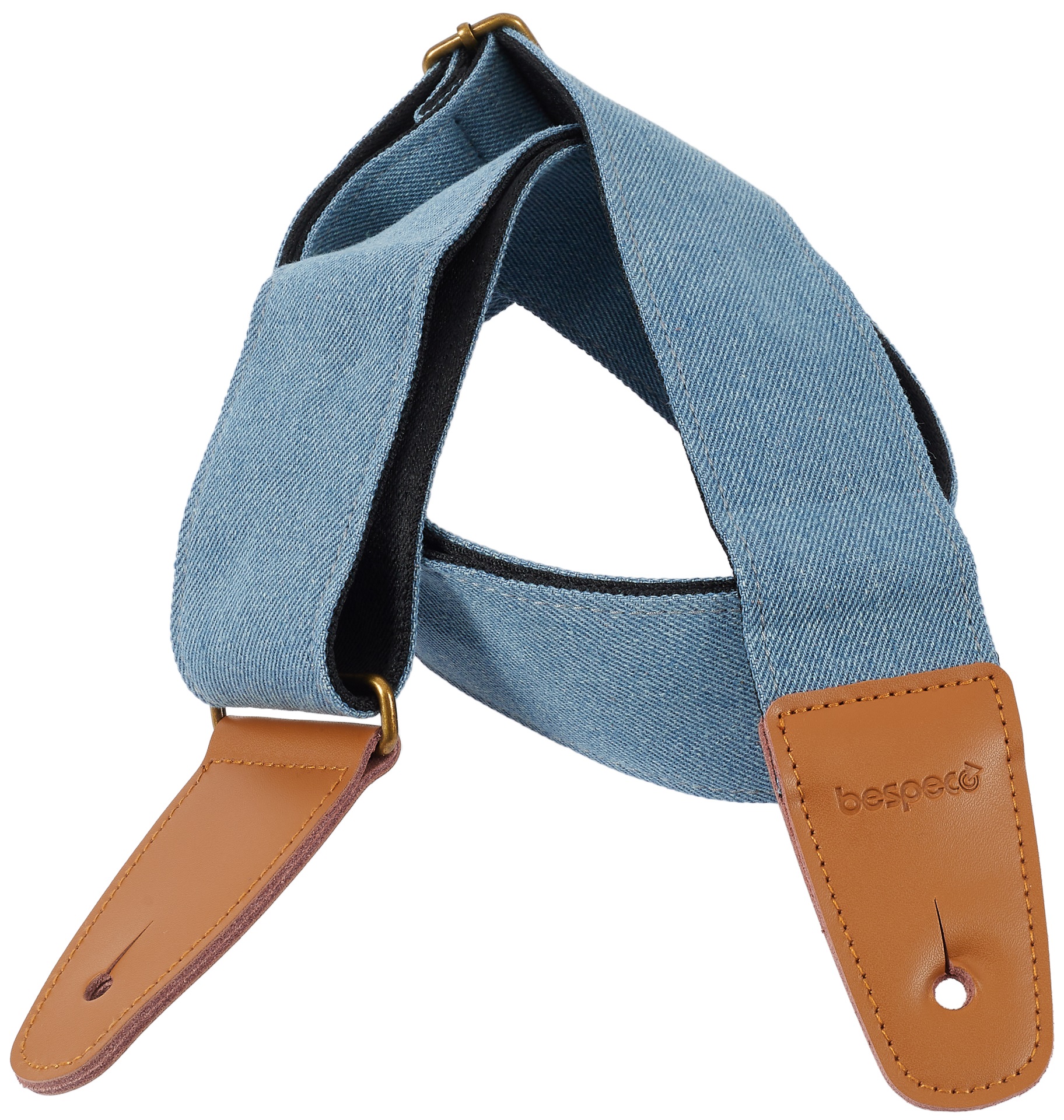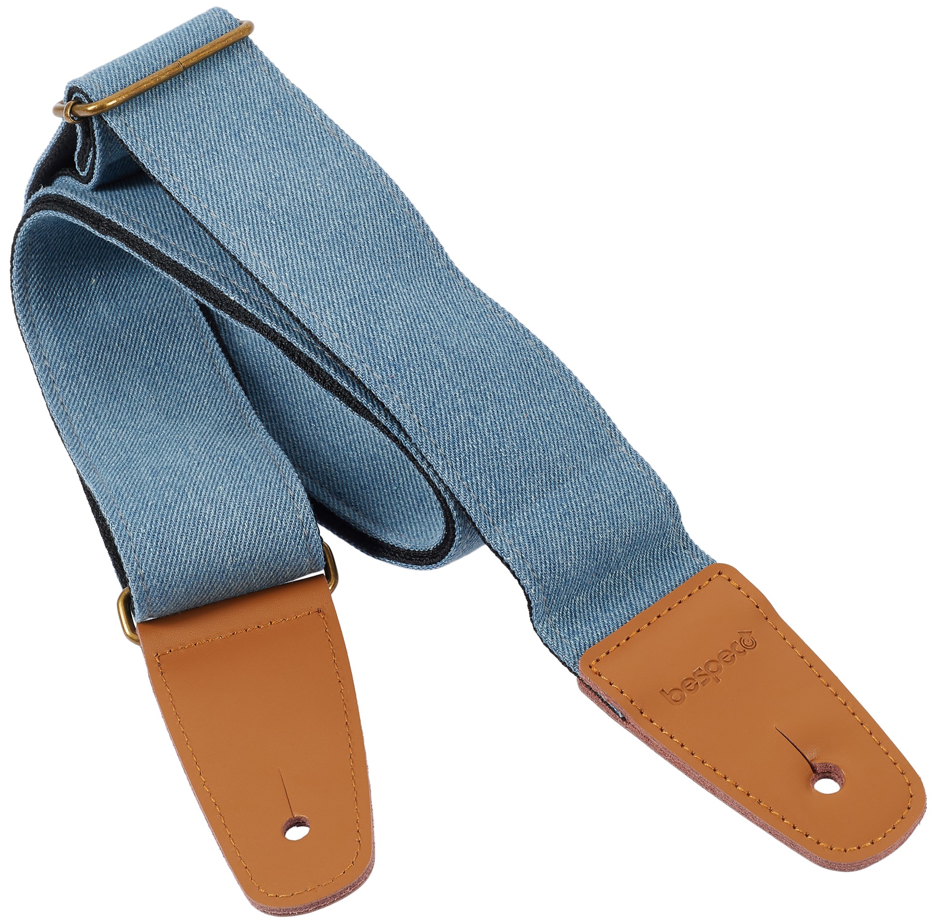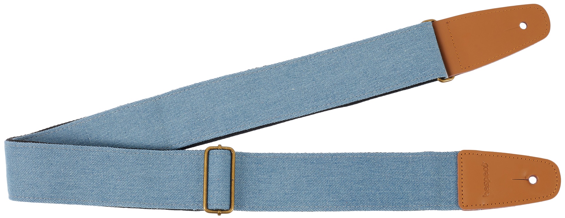 Gitarový popruh Gitarový popruh Bespeco vyrobený z veľmi odolnej džínsoviny. Pevné koženkové zakončenia spoľahlivo udržia vašu gitaru a basgitaru a pomocou kovových praciek si môžete jednoducho nastaviť dĺžku popruhu podľa vašich potrieb. Vhodný pre vegánov.