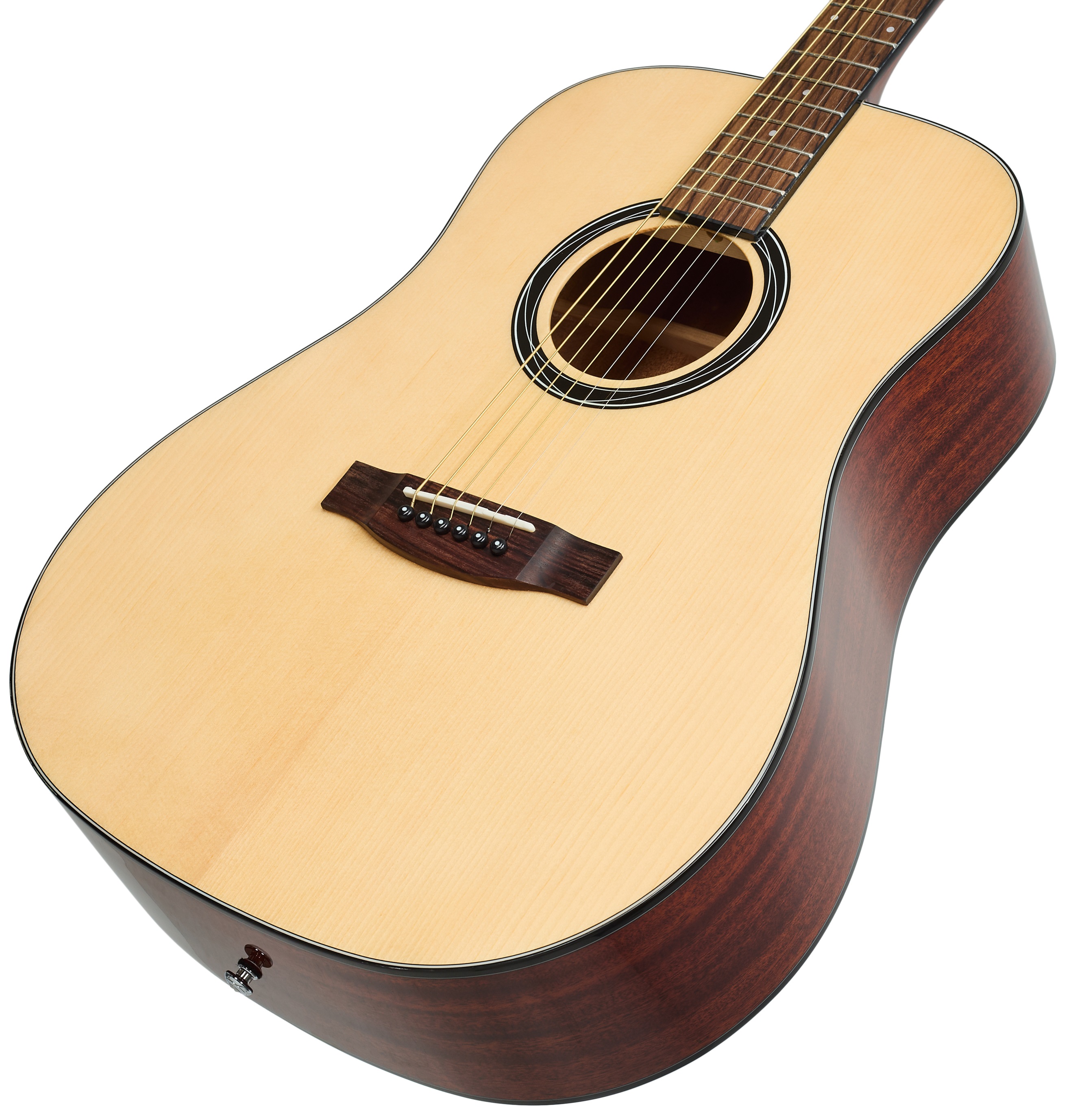 Akustická gitara Blond akustické gitary sú cenovo dostupné nástroje vhodné pre začínajúcich hudobníkov. S ich pomocou sa môžu naučiť základné techniky a zručnosti, a to za cenu, ktorá nezaťaží rodinný rozpočet. Blond D-SA S NAT je akustická gitara s obľúbeným telom typu dreadnought a polomasívnou konštrukciou. Predná doska gitary je vyrobená z masívneho smrekového dreva, zatiaľ čo zadná doska a luby sú z laminovaného mahagónu. Ku krku z oko