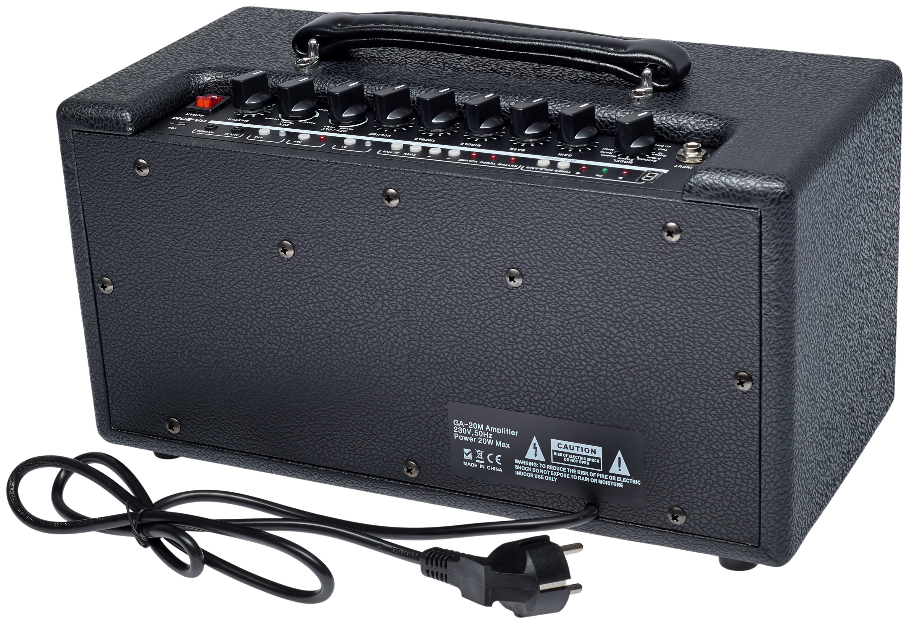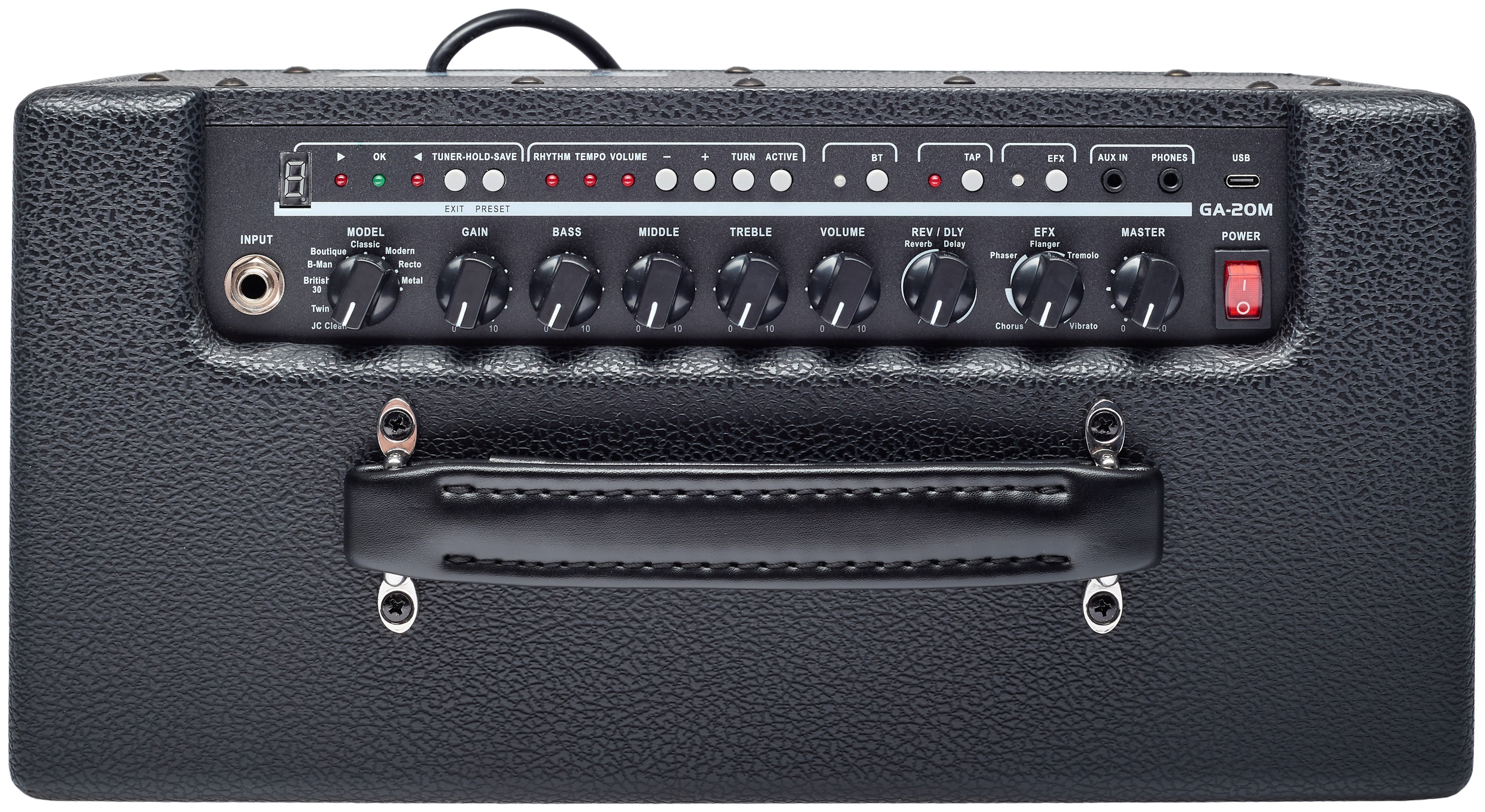 Gitarové modelingové kombo Cenovo dostupný gitarový modelingový kombo Blond GA-20M ponúka výkon 20 W z dvoch 5-palcových reproduktorov, deväť simulácií gitarových zosilňovačov od známych značiek (od vintage a boutique až po high-gain), efektový procesor s reverbom, delayom, chorusom, phaserom, flanger, tremolo a vibrato, päť predvolieb, sedem doprovodných stop z bicieho automatu, kompatibilitu s Bluetooth, vstavaný ladič, výstup na slúchadlá, vstup aux-in na prehrávanie doprovodných stop z