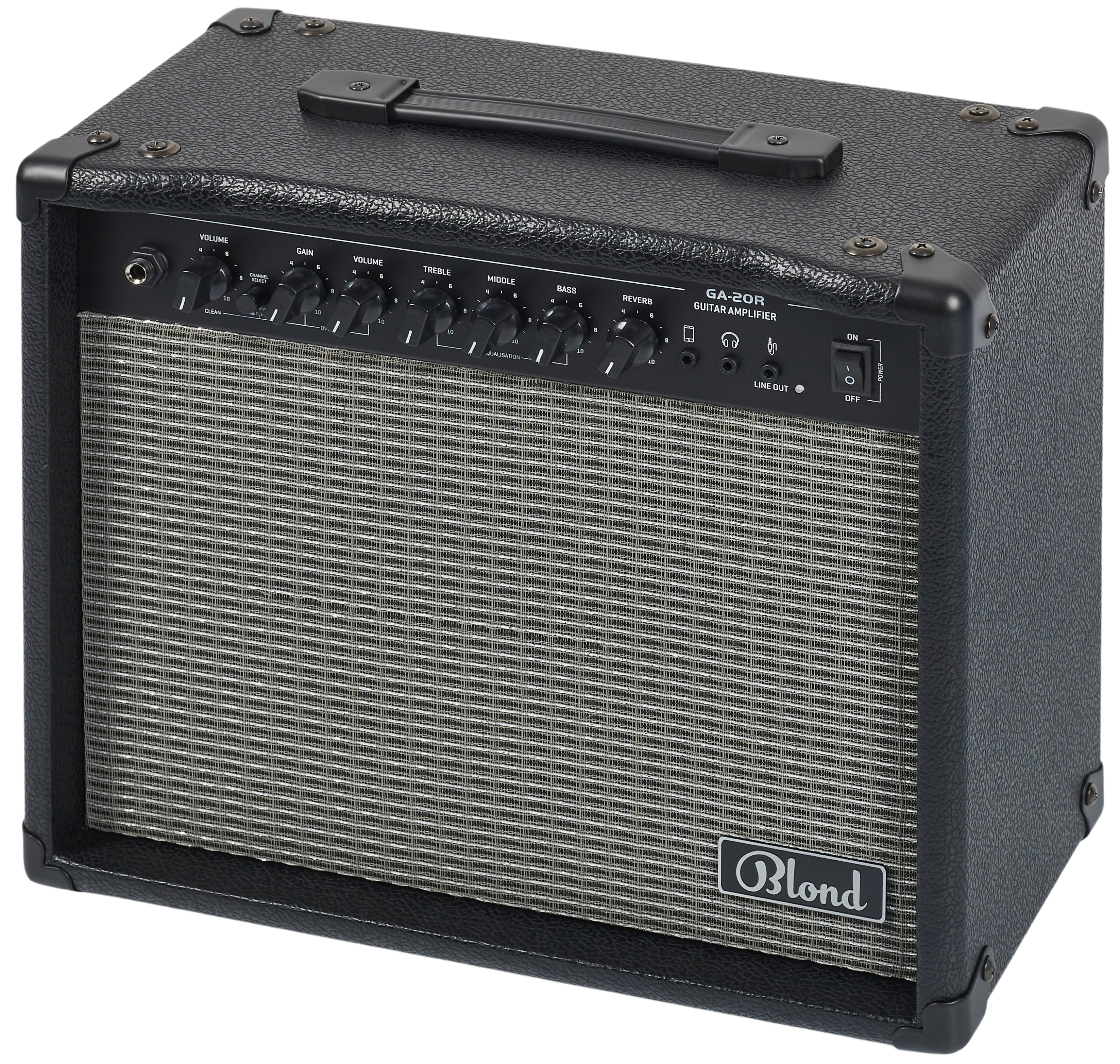 Gitarové tranzistorové kombo S výkonom 20 W a skvelou cenou je tranzistorové gitarové kombo Blond GA-20R ideálnym spoločníkom pre začínajúcich gitaristov. S výkonom 20 W a 8-palcovým reproduktorom sa osvedčí v skúšobni aj na vašich prvých koncertoch pre priateľov. Blond GA-20R ponúka dva prepínateľné kanály (čistý a overdrive) so samostatnými ovládačmi hlasitosti, ovládač zosilnenia kanála overdrive na určenie miery overdrive skreslenia, trojpásmový ekvaliz