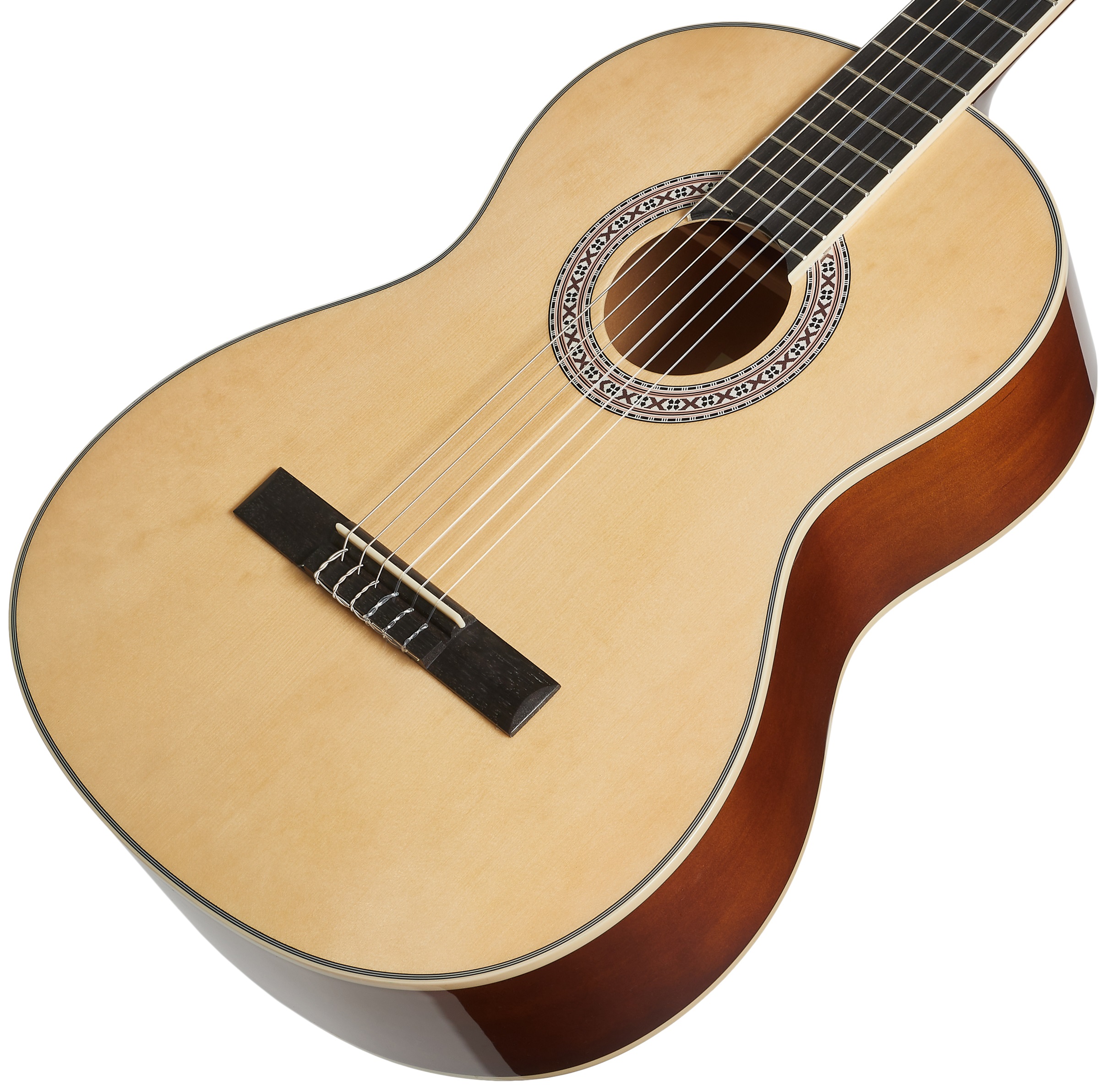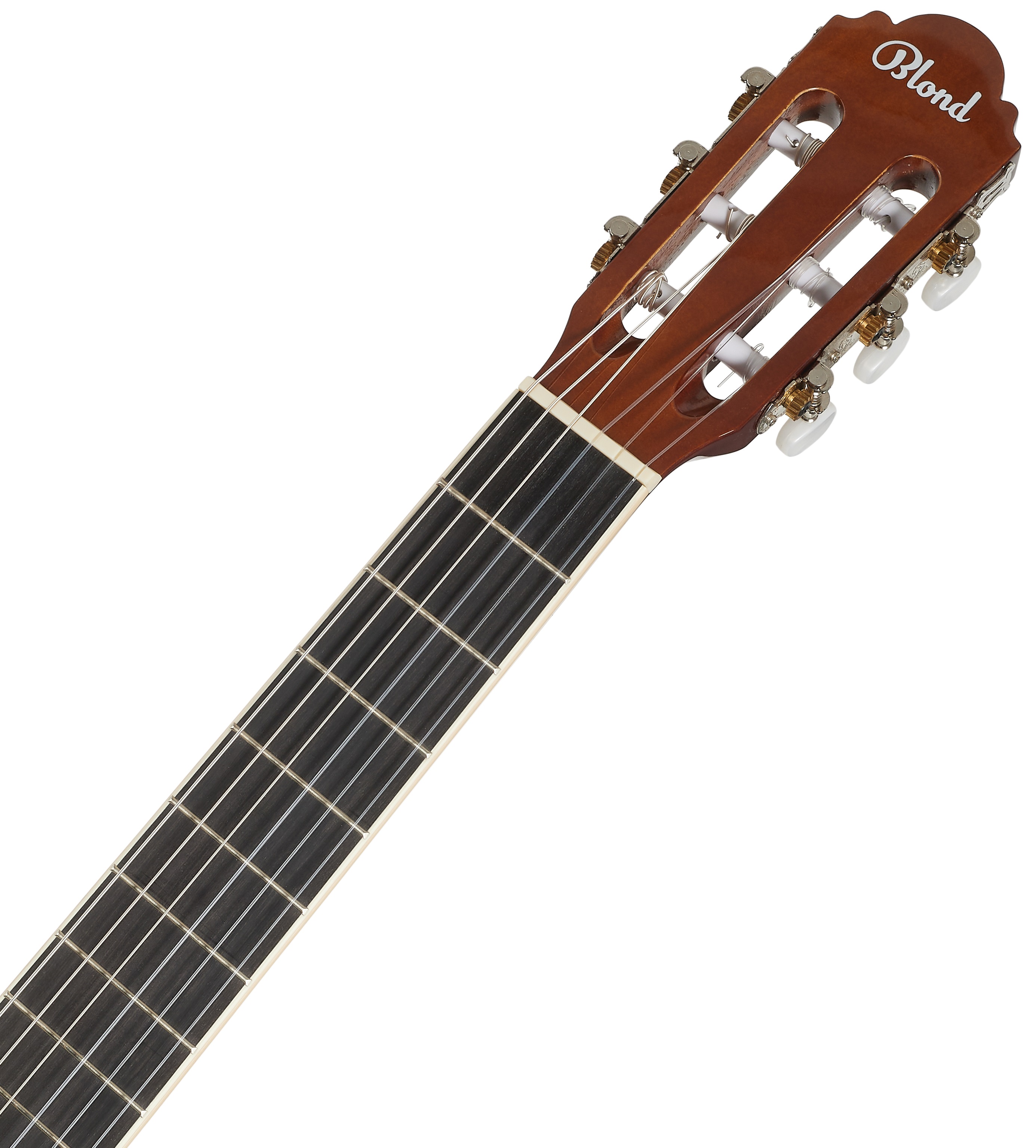 Klasická gitara Klasické gitary Blond sú cenovo dostupné nástroje vhodné pre začínajúcich hudobníkov. S ich pomocou sa môžu naučiť základné techniky a zručnosti, a to za cenu, ktorá nezaťaží rodinný rozpočet. Klasická gitara Blond OC-44 NAT vo veľkosti 4/4 ponúka telo vyrobené z laminovaného smrekového a lipového dreva, krk z dreva okoumé a hmatník a hlavicu z moderného kompozitného materiálu. Struny sú uchytené v klasickej pochrómovanej mechanike s bielymi kolíkmi nad plas