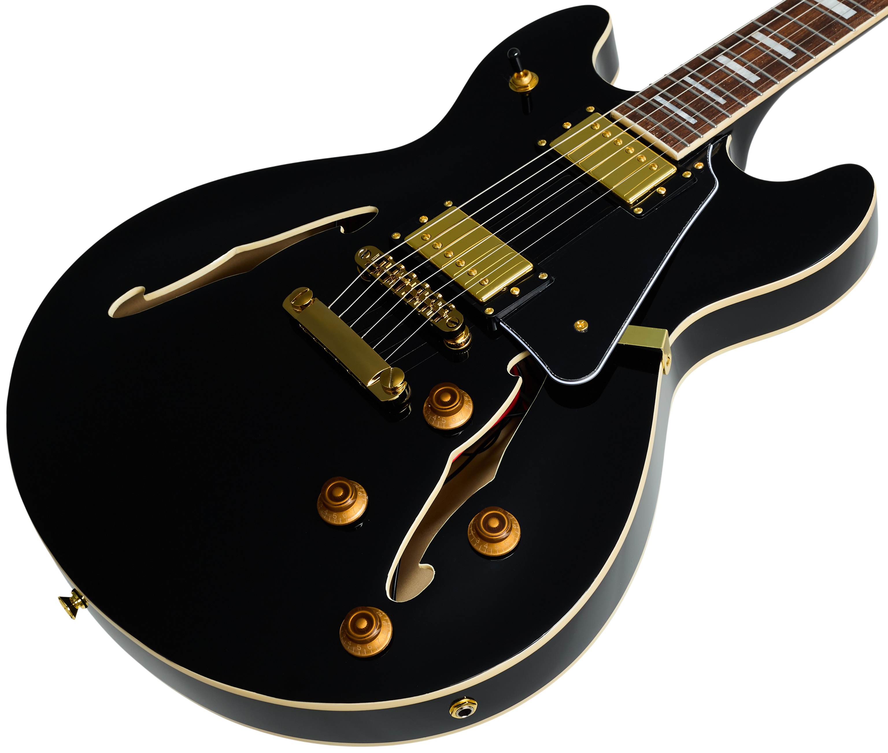 Semiakustická gitara Polodutá elektrická gitara Blond SH-2 BK zo série Standard v dvojitom vyrezávanom dizajne je cenovo dostupný nástroj, ktorý osloví širokú škálu hráčov. Telo gitary je vyrobené z laminovaného javora. Masívny stredový blok posilňuje vrchnú dosku a znižuje náchylnosť gitary na nežiaduce spätné väzby. Kanadský javorový krk je vybavený figwoodovým hmatníkom s 22 pražcami. Polohové bodky na hmatníku uľahčujú orientáciu. Dva humbuckery v retro štýle</s