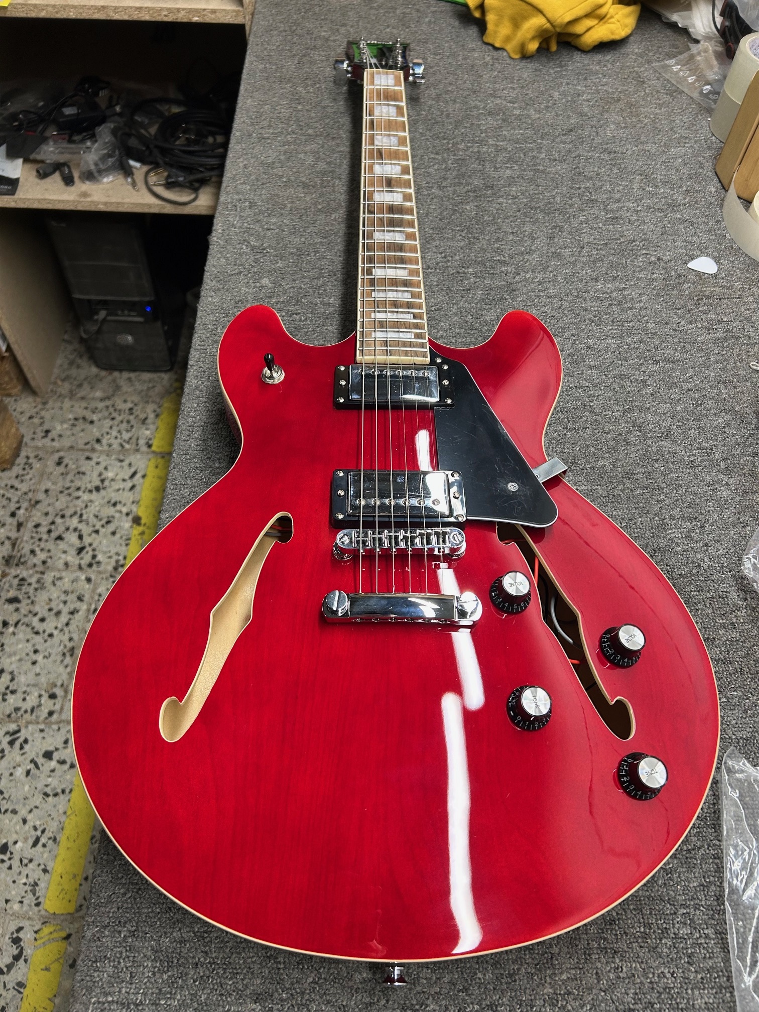 Semiakustická gitara Elektrická gitara Blond SH-2 CH Standard Series s dvojitým výrezom a polodutým telom je cenovo dostupný nástroj, ktorý osloví široké spektrum hráčov. Telo gitary je vyrobené z laminovaného javora. Masívny stredový blok spevňuje rezonančnú dosku a znižuje náchylnosť gitary na nežiaduci efekt viazania. Ku krku z kanadského javora je prilepený figúrovaný javorový hmatník s dvadsiatimi dvoma pražcami. Hmatník je orientovaný polohovými bodkami. Dva humbuckery vo vintage štýle dodávajú gitare