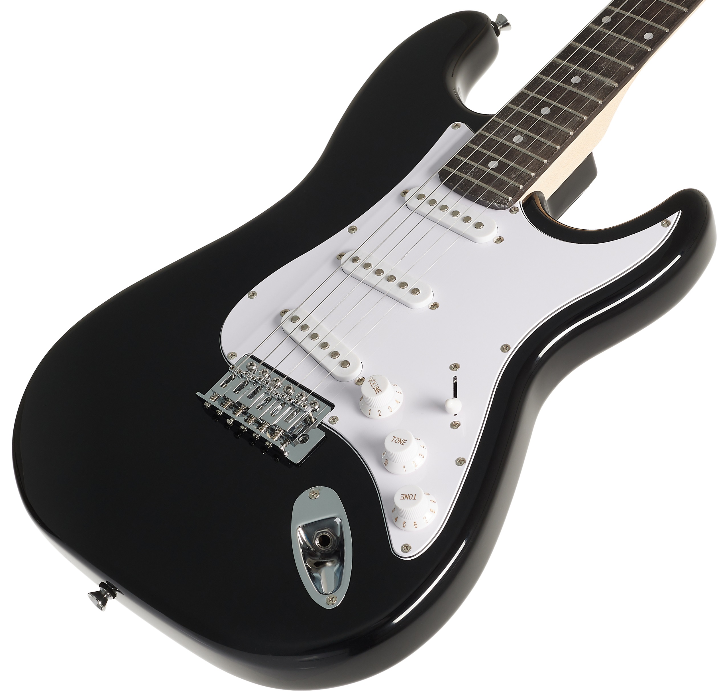 Elektrická gitara Elektrická gitara Blond STR-1 BK je ideálnou voľbou pre začínajúcich rockerov a rockerky. Ide o nástroj s tradičným tvarom ST a všetkými prvkami, ktoré si s týmto typom gitary spájate – od snímačov typu ST s jednou cievkou cez synchronizované tremolo až po pickguard. Telo gitary je vyrobené z topoľa. K javorovému krku s pekným profilom Modern C je prilepený hmatník Roseacer, ktorý je z tepelne upraveného javora v palisandrovej povrchovej úprave. Tri single-coil snímače dodávajú gitare klas