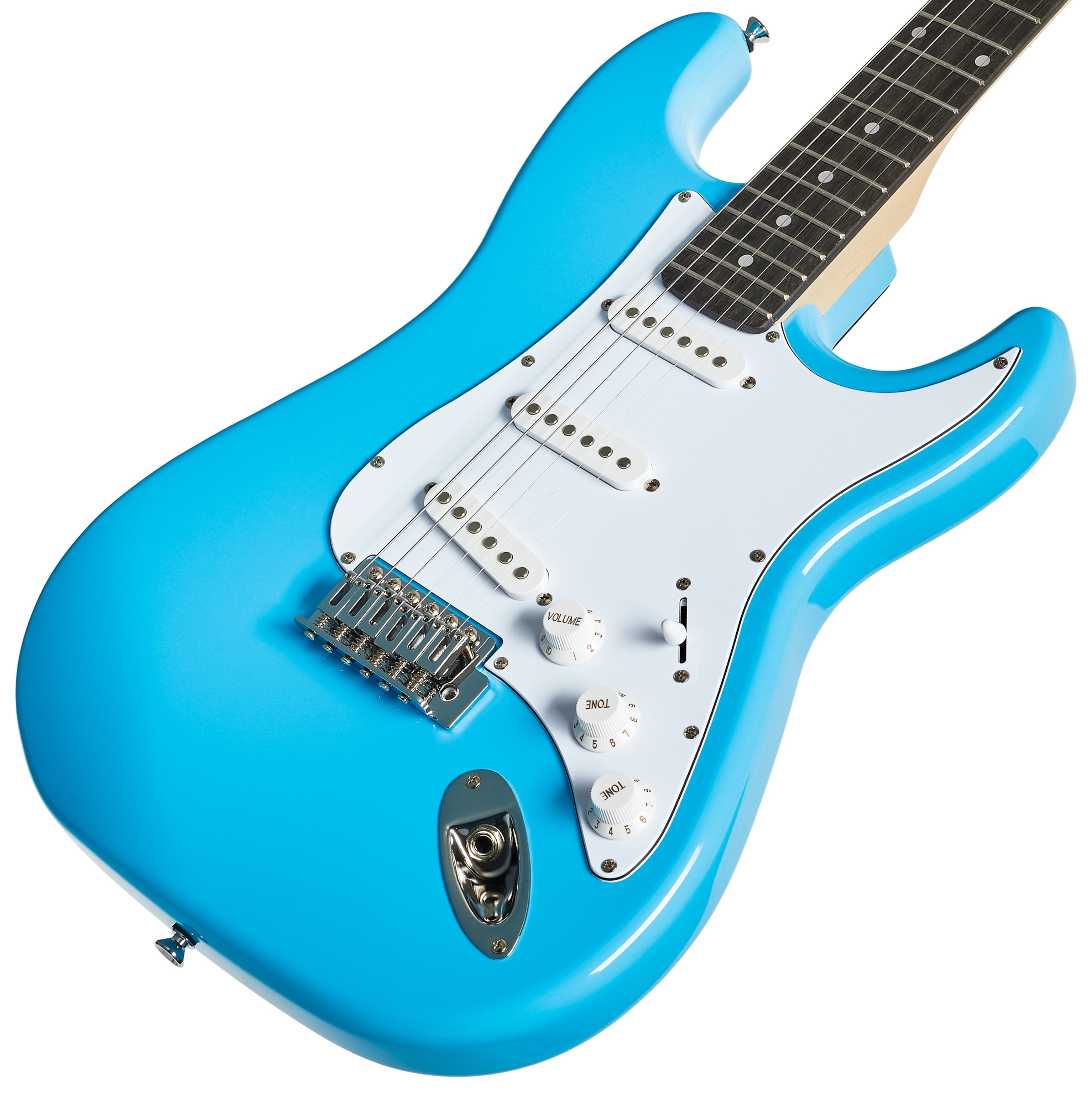 Elektrická gitara Elektrická gitara Blond STR-1 BL je ideálnou voľbou pre začínajúcich rockerov a rockerky. Je to nástroj s tradičným tvarom ST a všetkými prvkami, ktoré si s týmto typom gitary spájate – od snímačov typu ST s jednou cievkou cez synchronizované tremolo až po pickguard. Telo gitary je vyrobené z topoľa. K javorovému krku s pekným profilom Modern C je prilepený hmatník Roseacer, ktorý je z tepelne upraveného javora v palisandrovej povrchovej úprave. Tri single-coil snímače dodávajú gitare klas