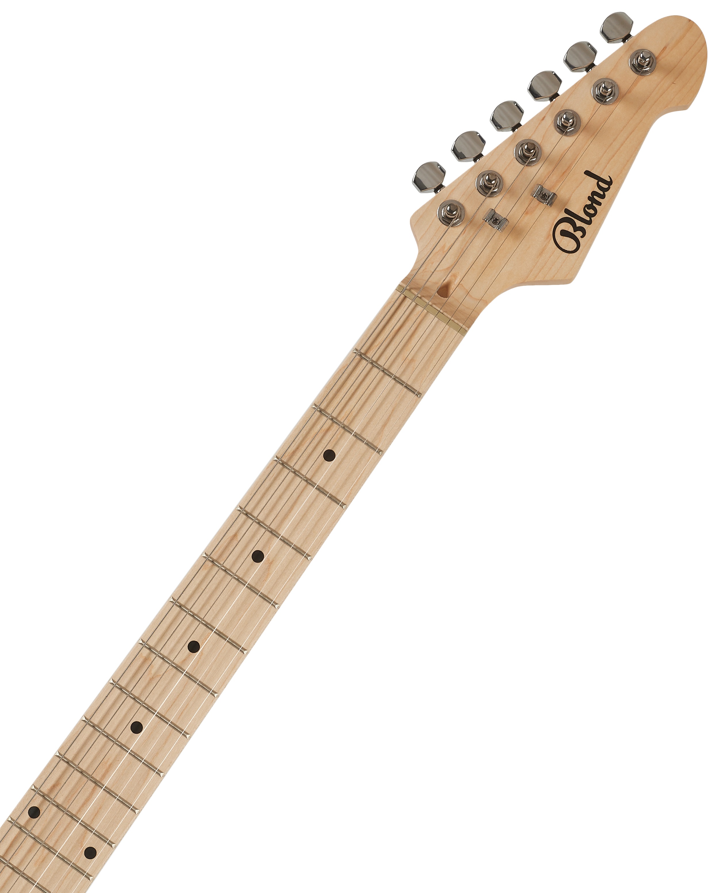 Elektrická gitara Elektrická gitara Blond STR-1H MN LPB je ideálnou voľbou pre začínajúcich rockerov a rockerky. Je to nástroj s tradičným tvarom ST a všetkými prvkami, ktoré si s týmto typom gitary spájate – od snímačov cez synchronizované tremolo až po pickguard. Telo gitary je vyrobené z topoľa. Javorový krk s pekným profilom Modern C je prilepený k javorovému hmatníku. Kombinácia kobylkového humbuckera a dvoch snímačov typu single-coil ST dáva gitare klasické čisté tóny a drive/crunch single-coilov, ako