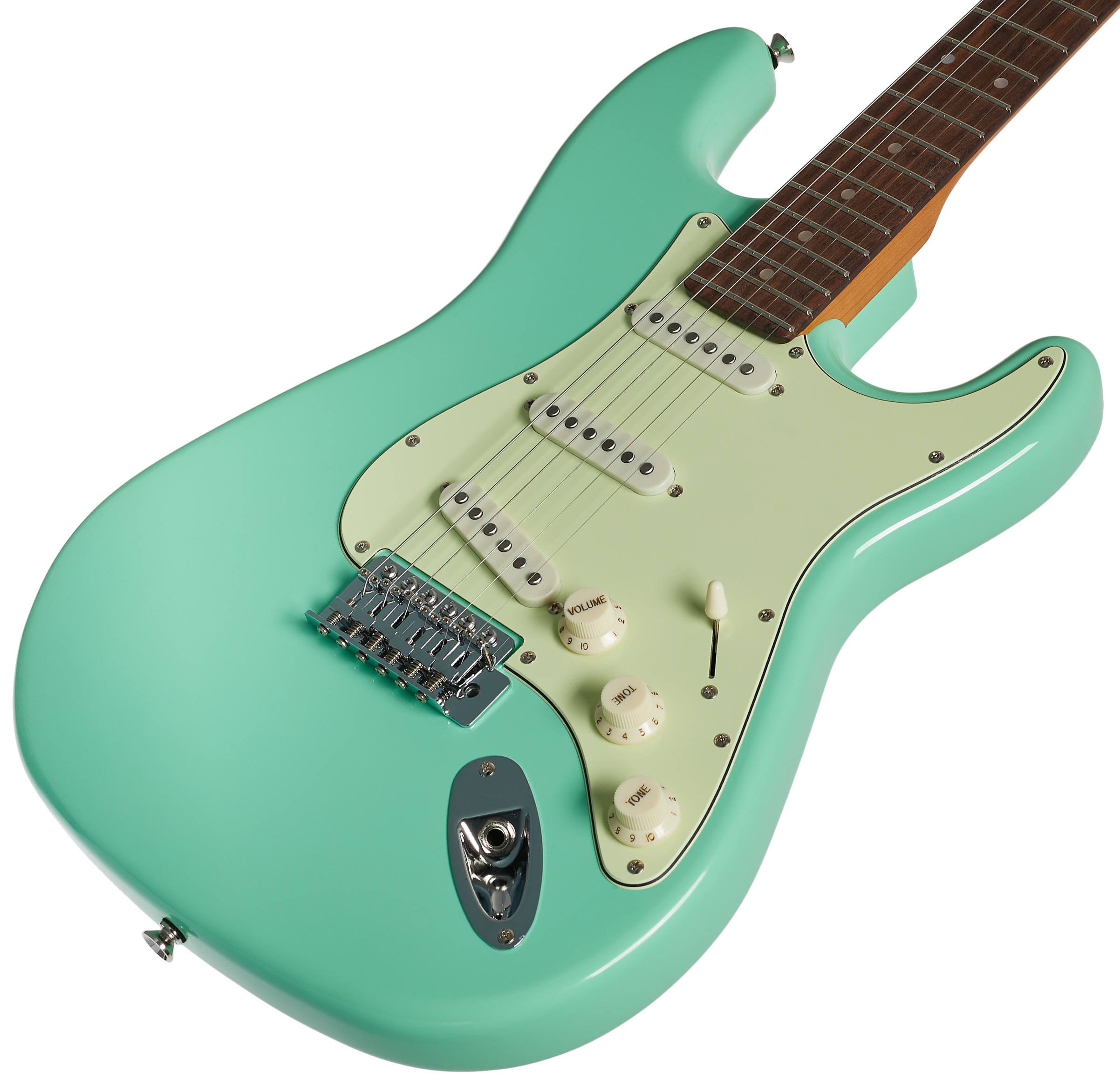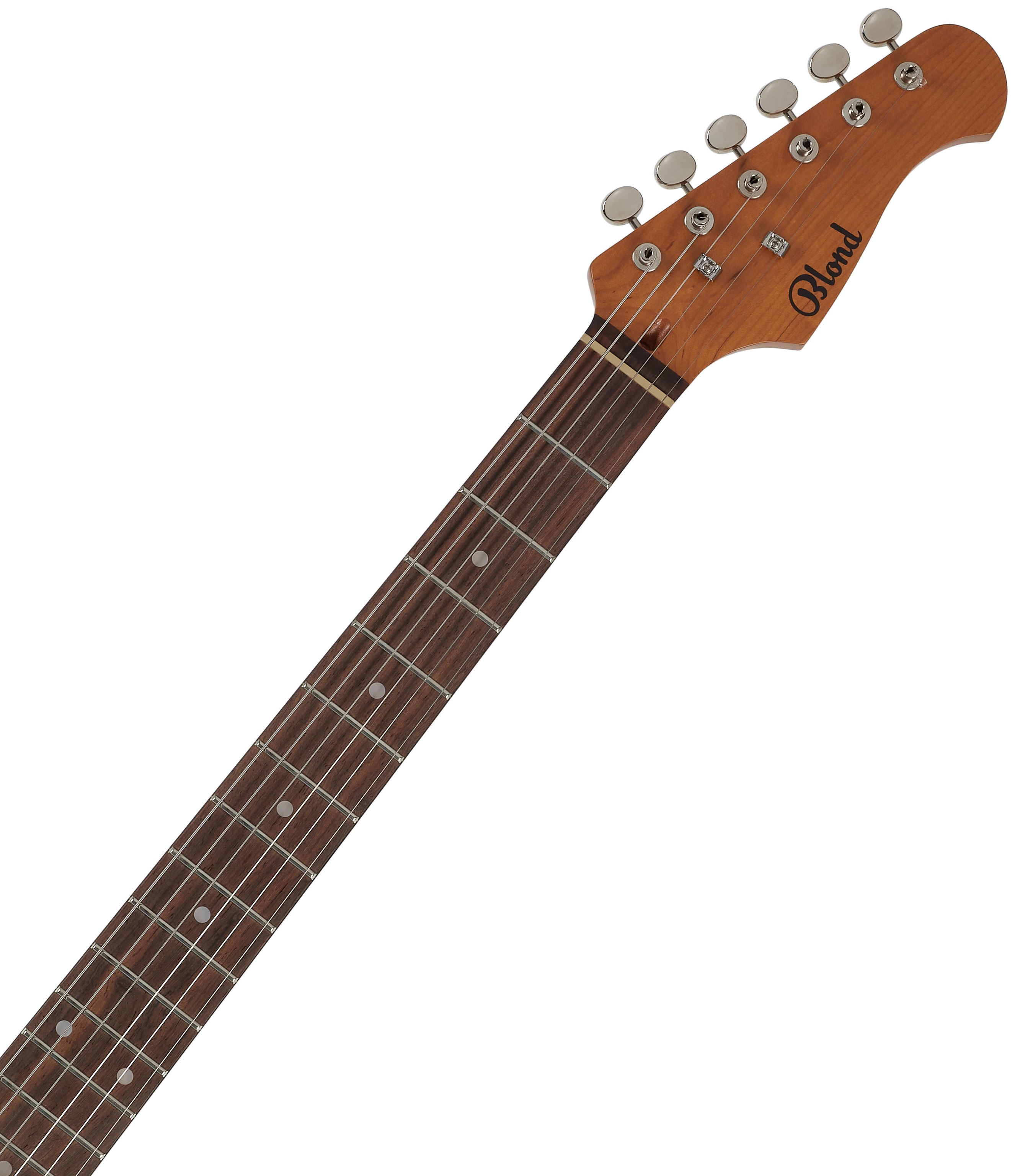 Elektrická gitara Elektrická gitara Blond STR-2 SFG Standard Series je ideálnou voľbou pre začínajúcich rockerov a rockerky. Je to nástroj s tradičným tvarom ST a všetkými prvkami, ktoré si s týmto typom gitary spájate – od snímačov typu ST s jednou cievkou cez synchronizované tremolo až po pickguard. Telo gitary je vyrobené z lipového dreva. Javorový krk je prilepený k figovému hmatníku osadenému dvadsiatimi dvoma pražcami. Vďaka tepelnej úprave krku (karamelizovaný javor) je drevo stabilnejšie a zároveň z