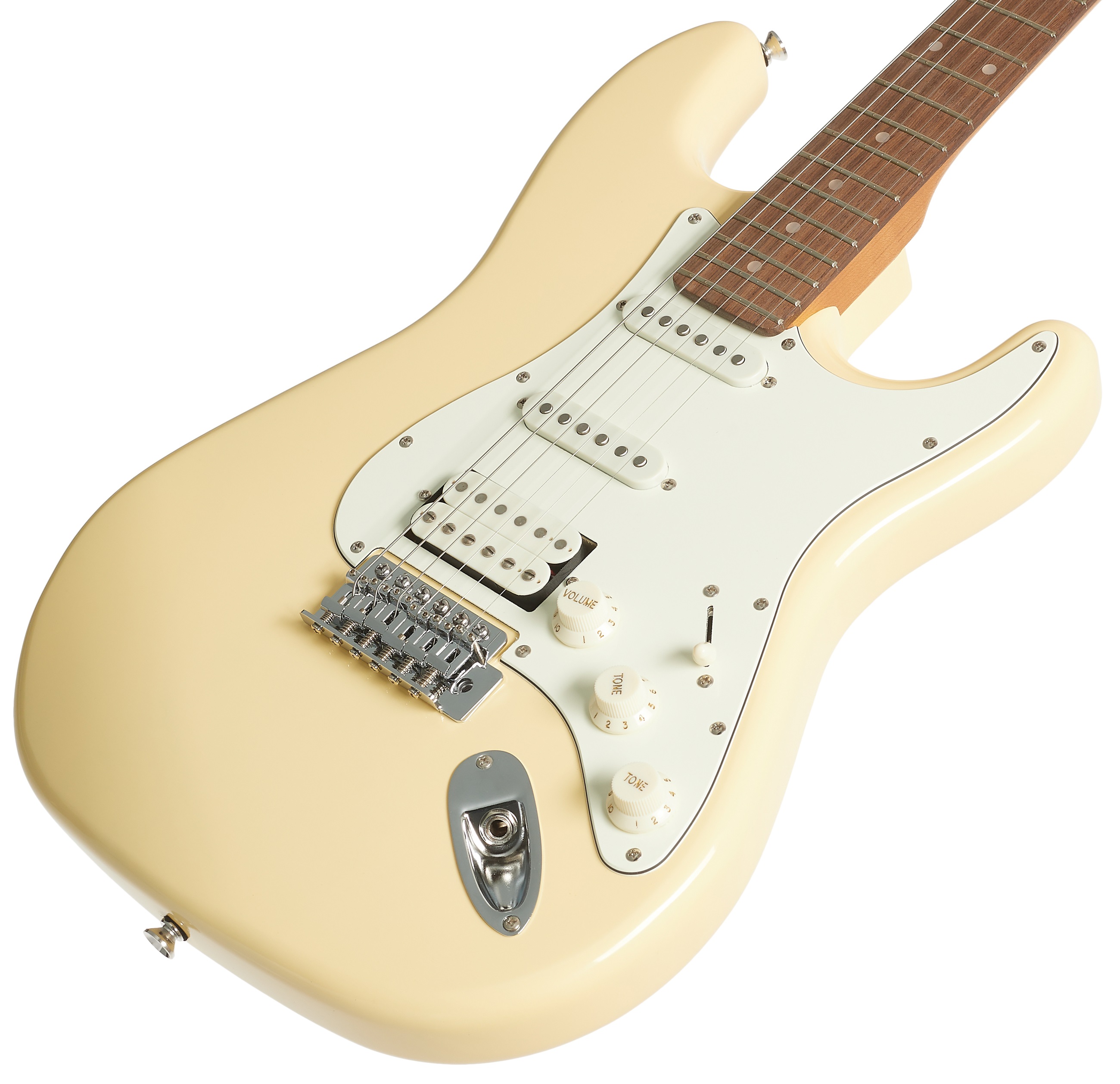 Elektrická gitara Elektrická gitara Blond STR-2H VW zo série Standard je ideálnou voľbou pre začínajúcich rockerov a rockerky. Je to nástroj s tradičným tvarom ST a všetkými prvkami, ktoré si s týmto typom gitary spájate – od snímačov cez synchronizované tremolo až po pickguard. Telo gitary je vyrobené z lipového dreva. Javorový krk je prilepený k figúrovanému javorovému hmatníku osadenému dvadsiatimi dvoma pražcami. Vďaka tepelnej úprave krku (karamelizovaný javor) je drevo stabilnejšie a zároveň získava p