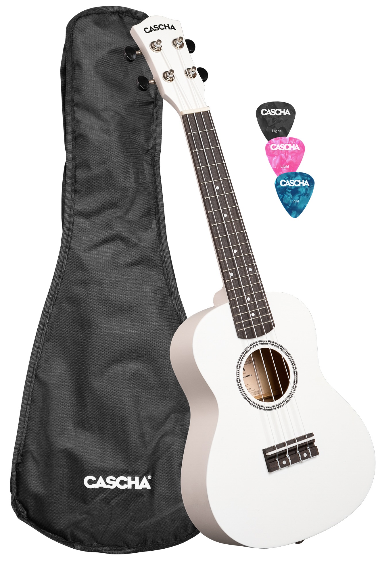 Akustické ukulele Akustické ukulele Cascha CUC106 Concert Linden White je cenovo dostupný nástroj vhodný pre začínajúcich hráčov na ukulele. Je vybavené telom vyrobeným z laminovanej lipy, lipovým krkom, hmatníkom a kobylkou z kompozitného materiálu a značkovou ladiacou mechanikou spoločnosti v štýle gitary. Ukulele sa dodáva v puzdre spolu s tromi trsátkami. Značka Cascha ponúka širokú škálu hudobných nástrojov s jedným spoločným menovateľom, a tým je cenová dostupnosť. Zameriava sa tak špeciálne na potreb