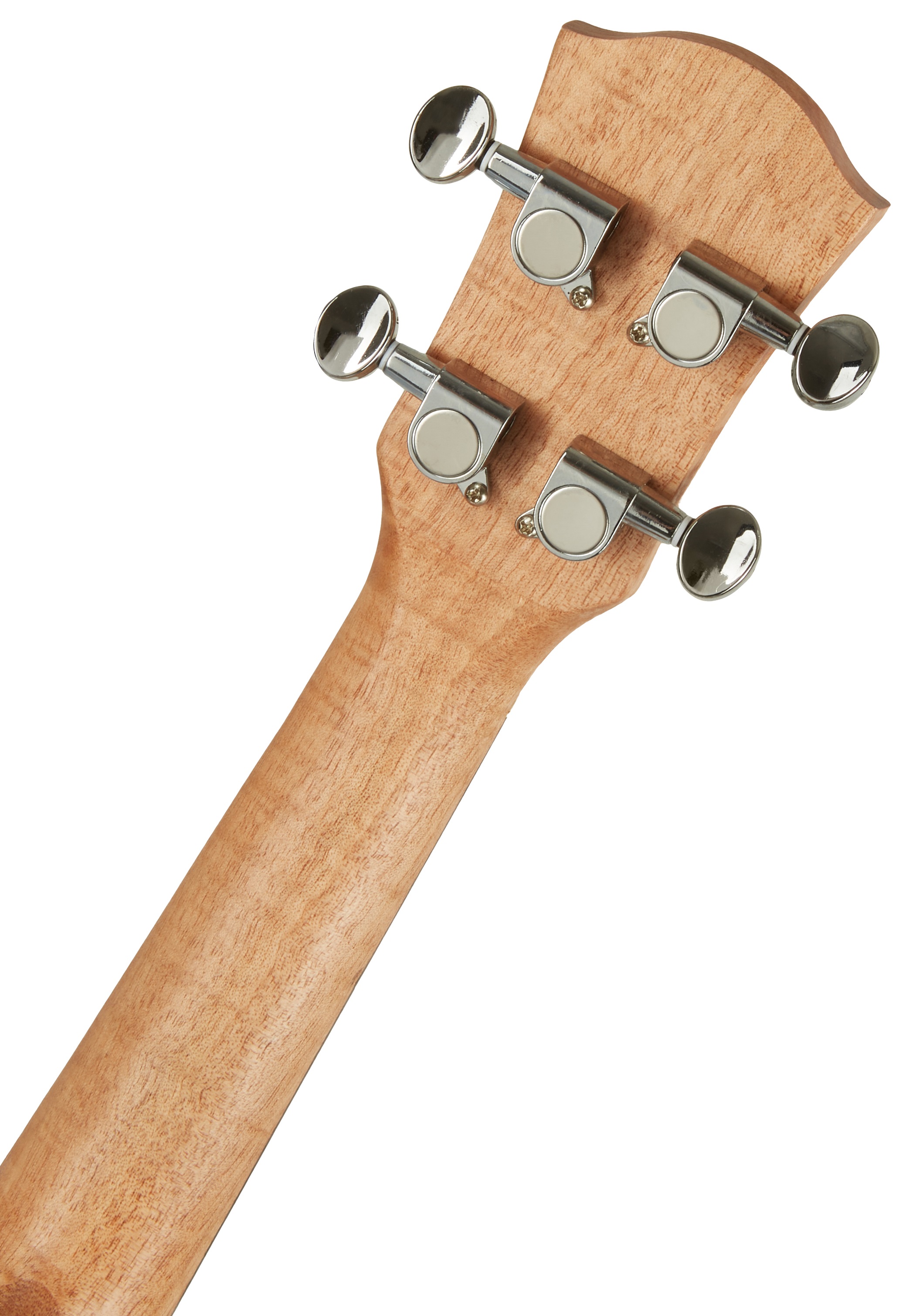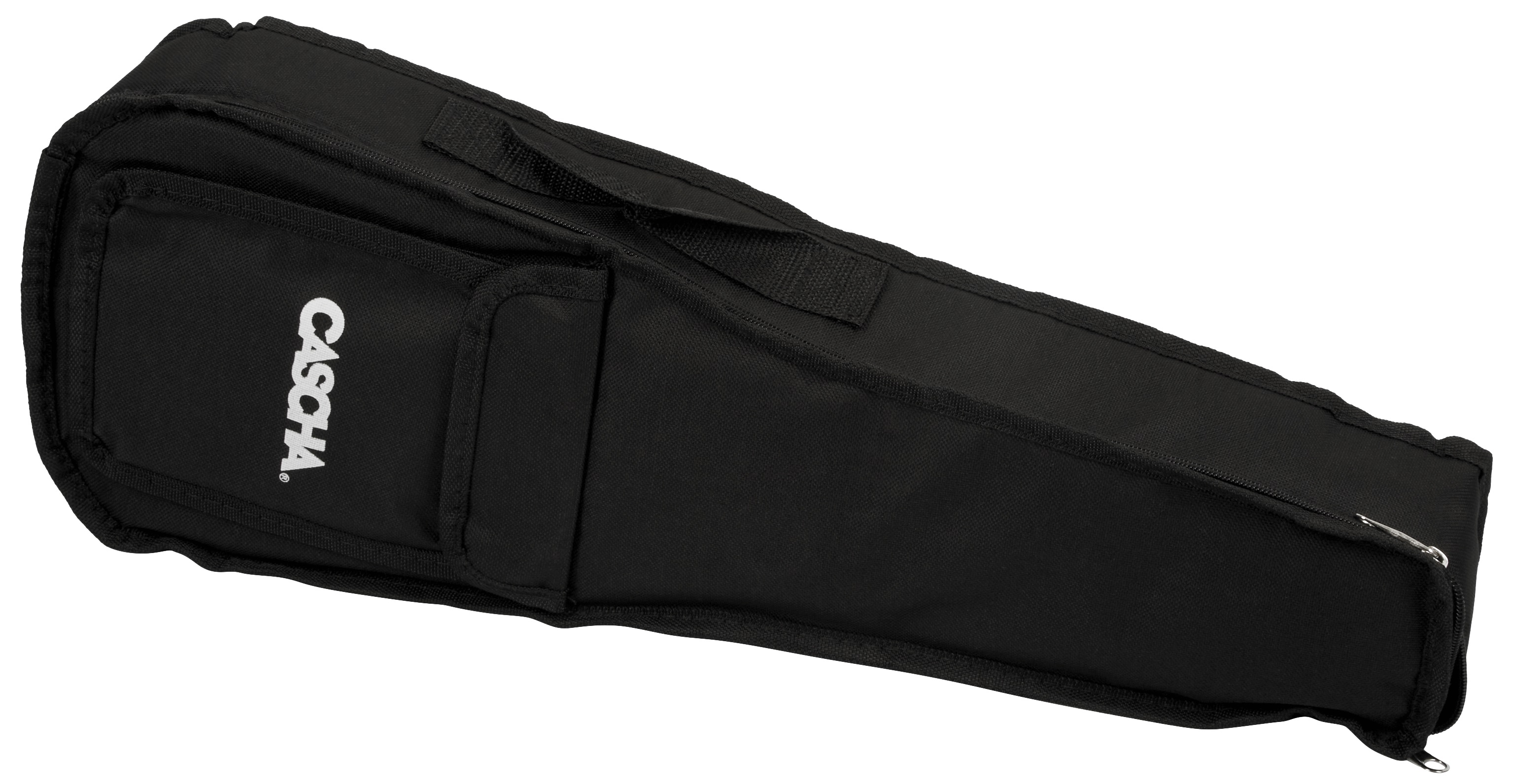 Akustické ukulele Predná doska sopránového ukulele Cascha Premium – Solid Top je vyrobená z masívneho smrekového dreva, zatiaľ čo zadná doska a luby sú z laminovaného mahagónu. Palisandrový hmatník je rozdelený šestnástimi pražcami. Polohové bodky uľahčujú orientáciu na jeho povrchu. Struny sú uchytené v pochrómovaných mechanikách gitarového typu a palisandrovom hmatníku. Pekné spracovanie podčiarkuje rozeta a pickguard so vzorom rybej kosti a čierne obojstranné obvodové lemovanie tela. Ukulele sa dodáva v