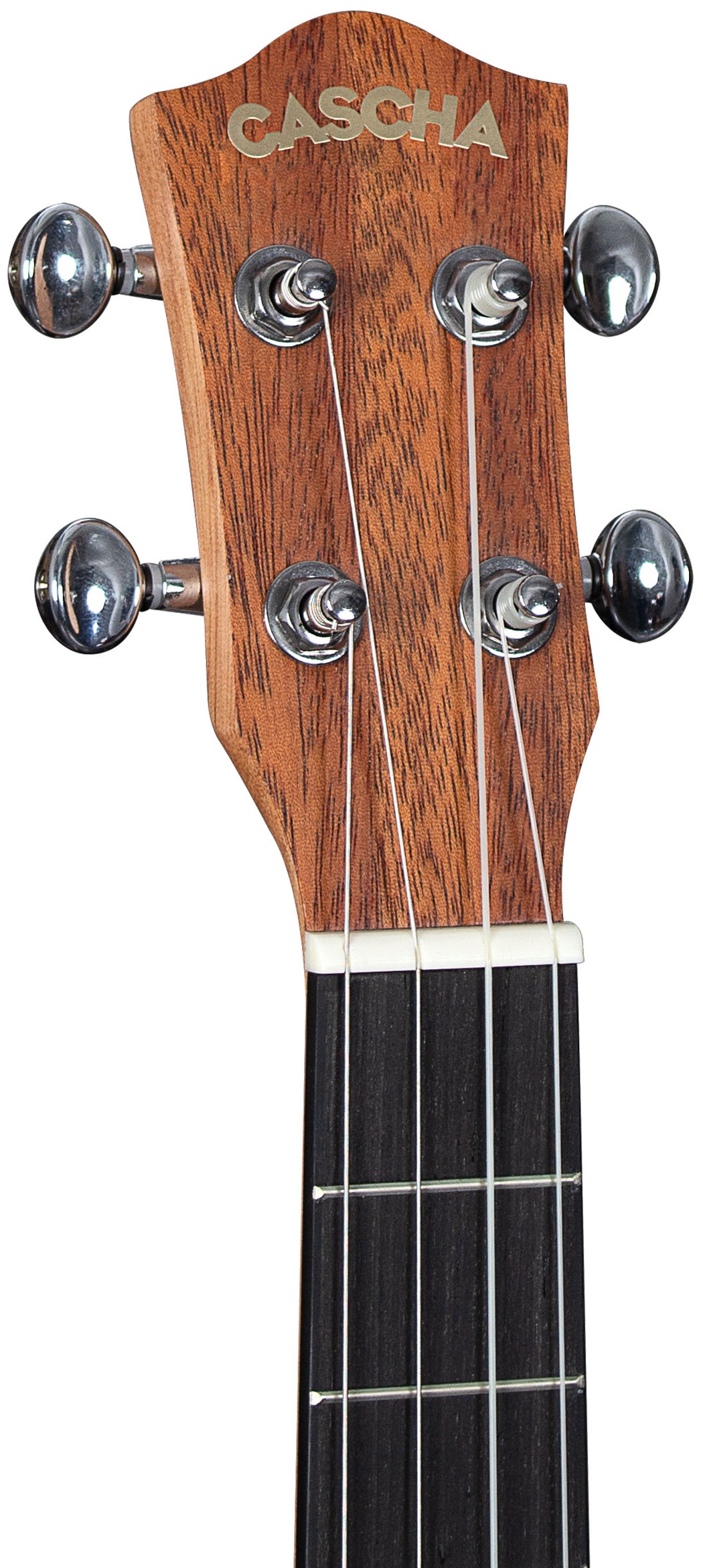 Akustické ukulele Barytónové ukulele Cascha HH 2243 je cenovo dostupný nástroj, ktorý poteší deti aj dospelých. Spolu s ukulele dostanete praktické polstrované puzdro (hrúbka polstrovania 5 mm) a tri trsátka, takže môžete okamžite vyraziť za zábavou k vode, do skál, k moru… kamkoľvek to žije. Telo ukulele je vyrobené z laminovaného mahagónu. Palisandrový hmatník je rozdelený devätnástimi pražcami (rovnaký materiál je použitý aj na hmatník). Struny sú uložené v pochrómovaných ladiacich mechanikách gitarové