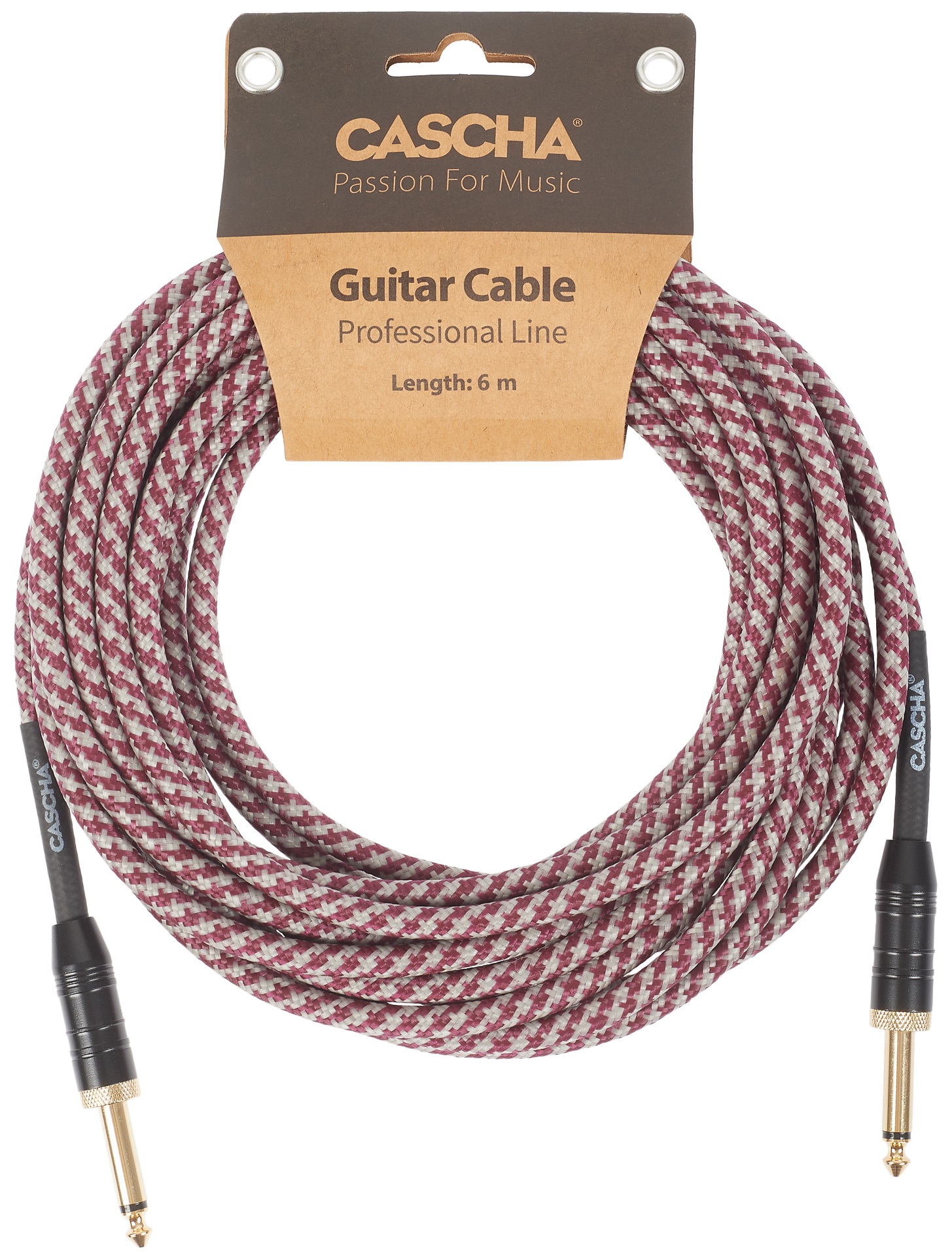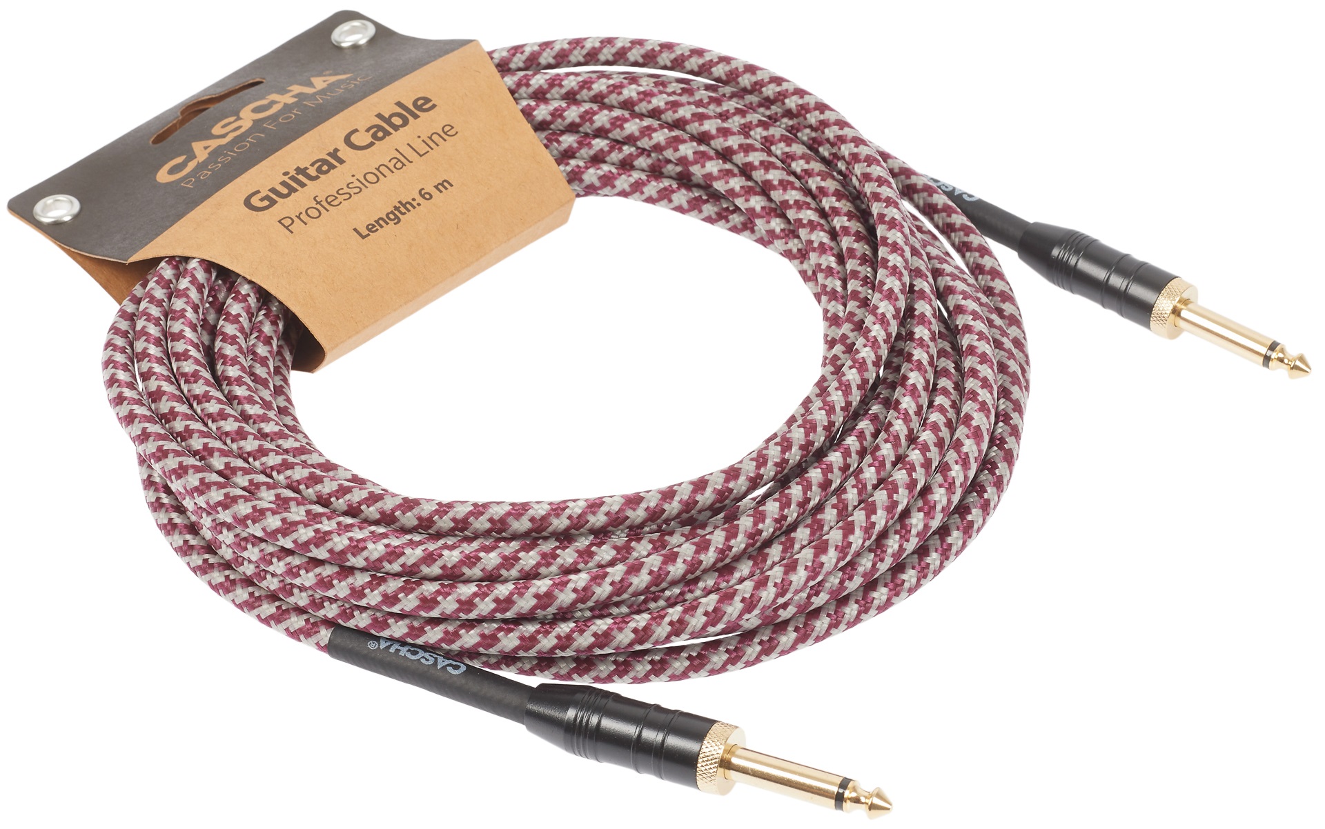 Cascha Professional Line Guitar Cable, Straight, Tweed Red, 6 m