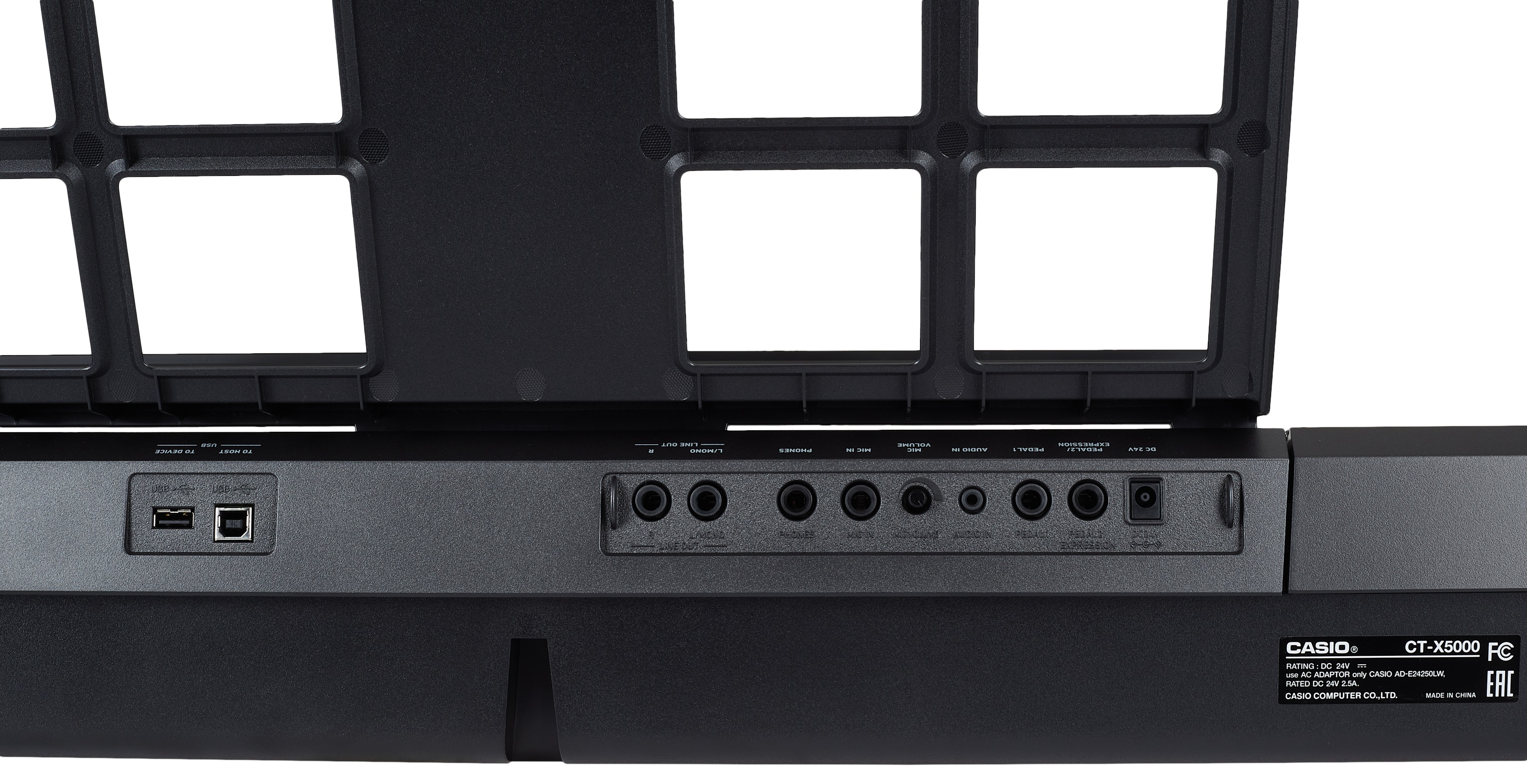 Klávesy s dynamikou úderu Casio CTX5000 ponúka vo svojej cenovej kategórii dobre spracované zvuky a výkonný basreflexový zvukový systém, ktorý naplno využije potenciál týchto klávesov. Klávesy ponúkajú celkovo 800 rôznych zvukov nástrojov a 235 sprievodných rytmov. Zvuk je spracovaný pomocou technológie AiX Sound Source, ktorá verne zachytáva vlastnosti pôvodných nástrojov v celom frekvenčnom spektre a prechádza do takých detailov, ako je nepatrná zmena tónu klavíra pri stlačení klávesov. Navyše vďaka dynam