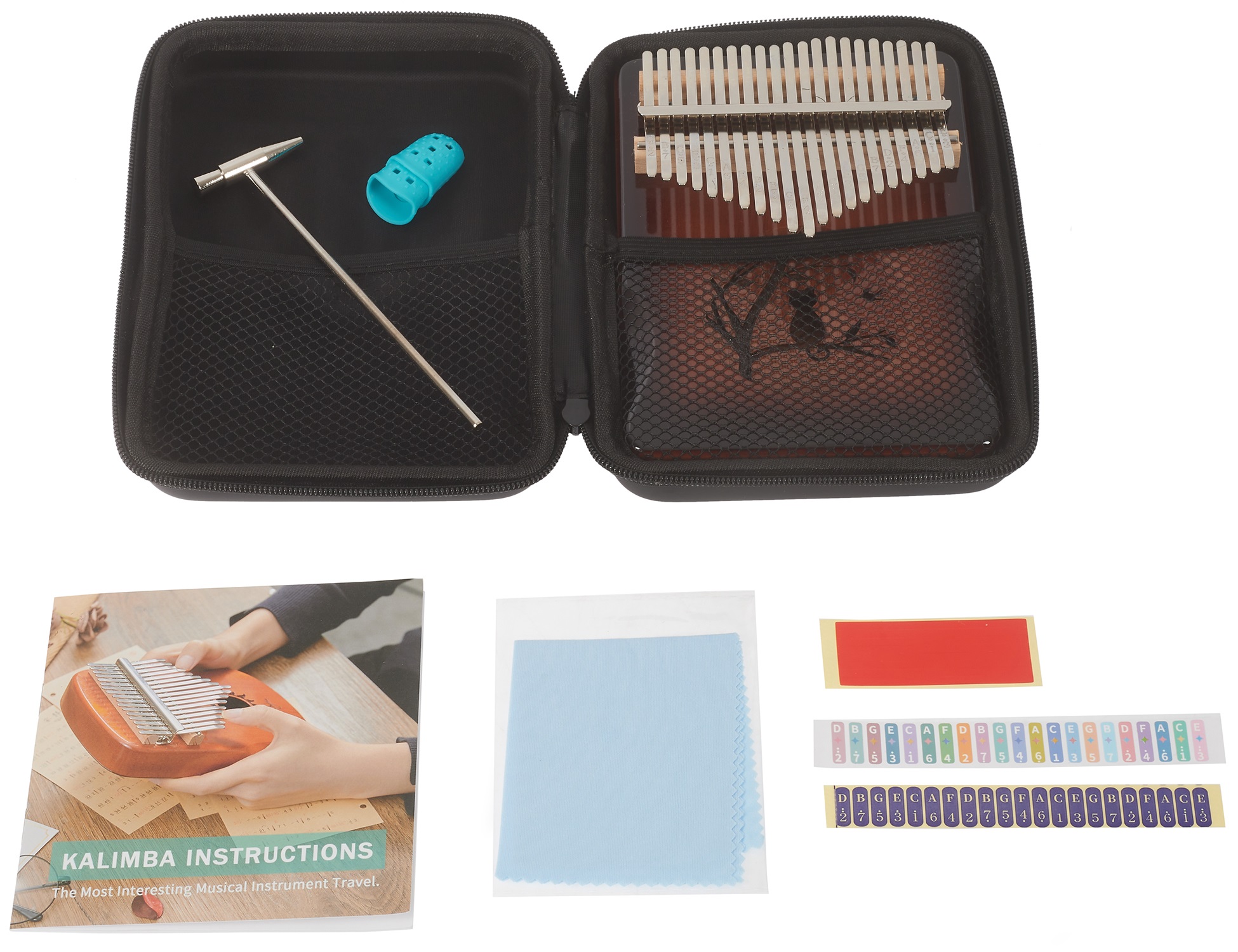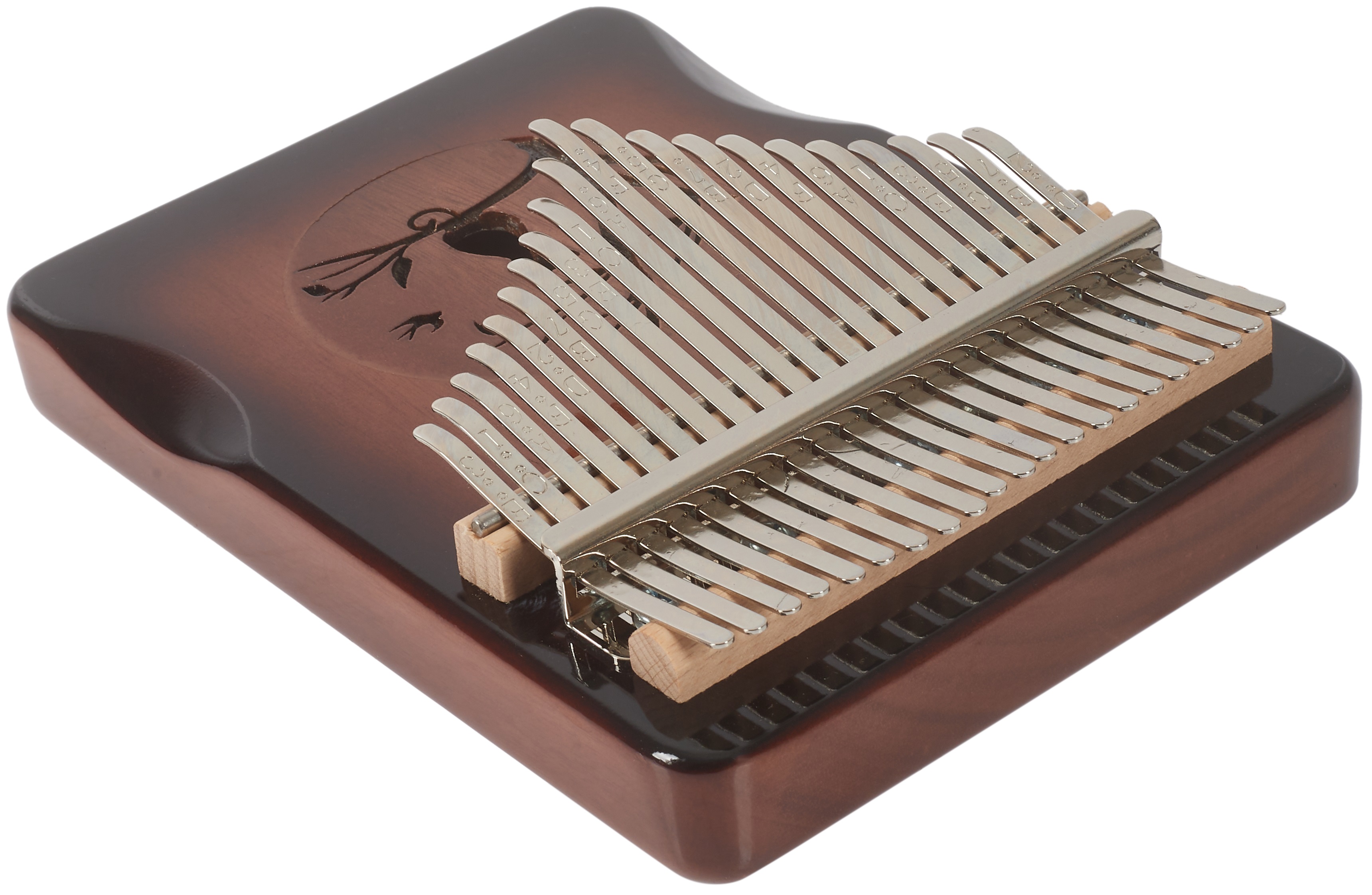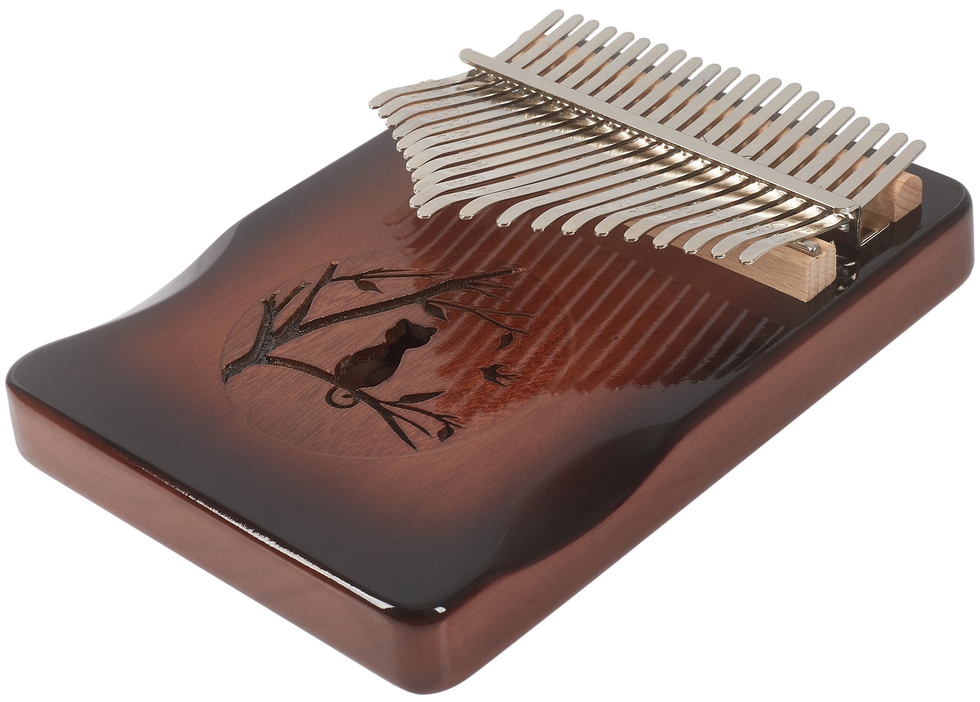 Kalimba Kalimba vyrobená zo zvučného mahagónu, vybavená dvadsaťjeden klávesmi z uhlíkovej ocele a ladená v C. Okolo ozvučného otvoru je vyrezávaná mačka. Súčasťou balenia je puzdro na prenášanie, ktoré chráni nástroj pred nechceným poškodením.