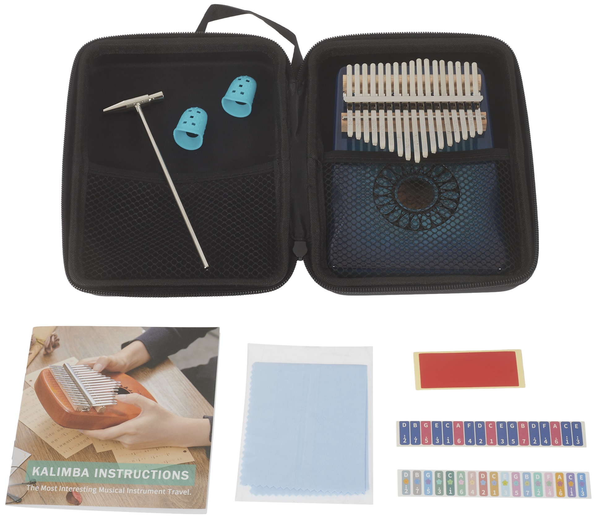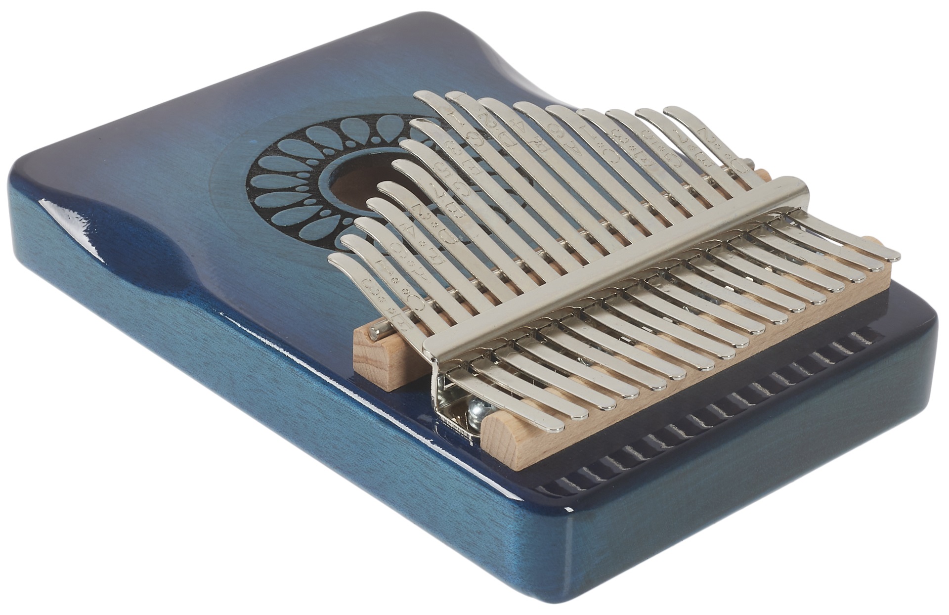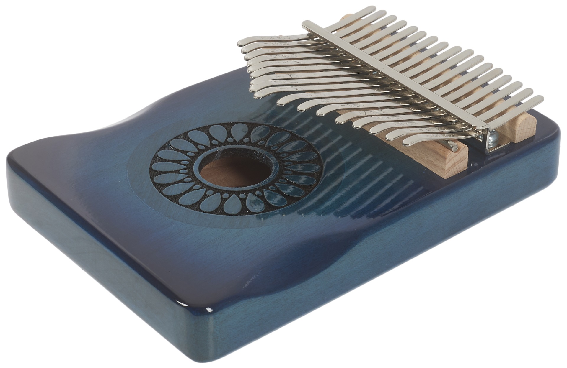 Kalimba Kalimba vyrobená zo zvučného mahagónu, vybavená sedemnástimi klávesmi z uhlíkovej ocele a ladená v C. Je zdobená rezbou kvapiek okolo ozvučného otvoru. Súčasťou balenia je puzdro na prenášanie, ktoré chráni nástroj pred nechceným poškodením.
