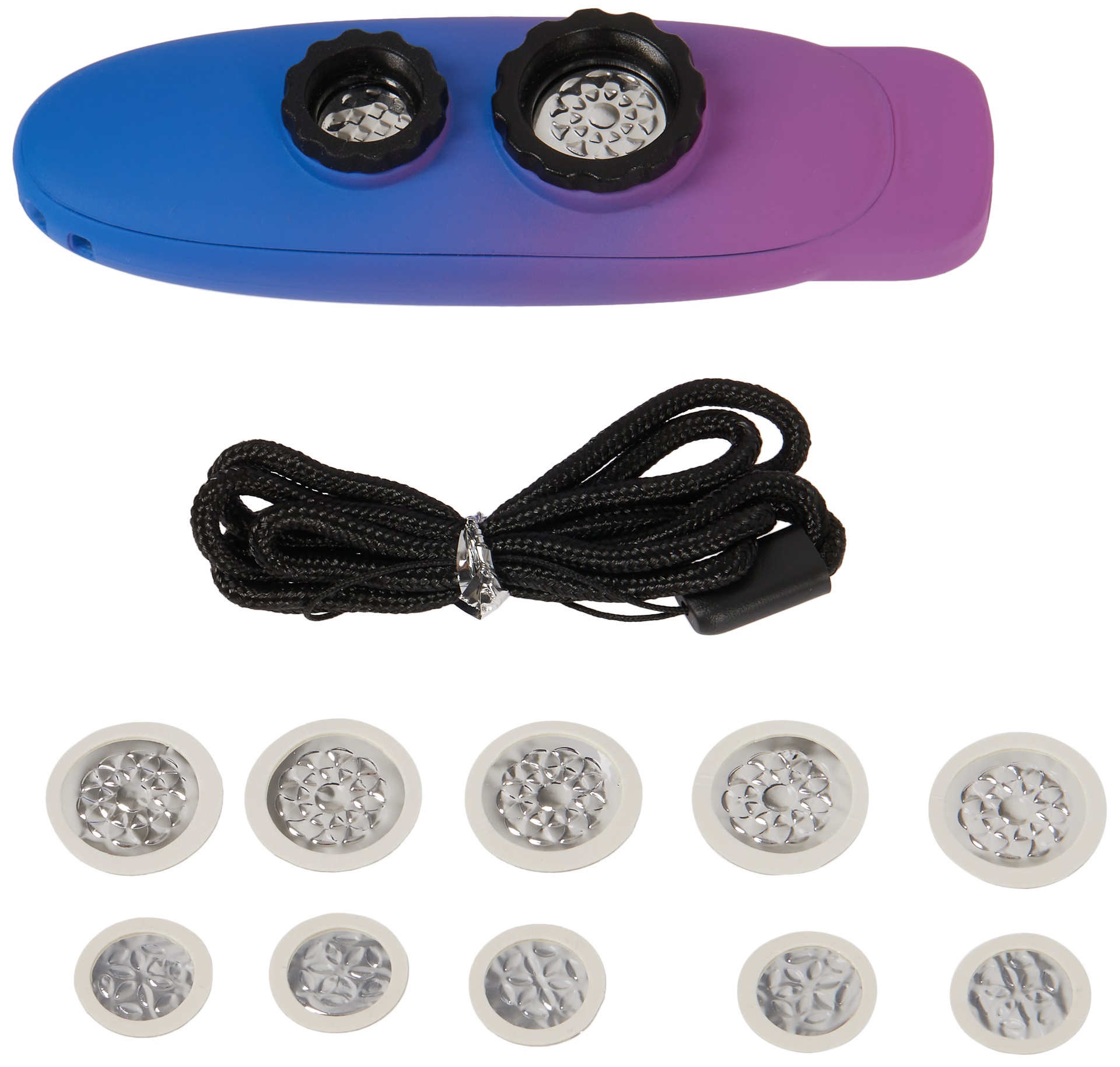 Kazoo Plastové dvojdierové kazoo s dvoma otvormi/membránami. Táto konštrukcia umožňuje brnkať melódiu v nižšom aj vyššom ladení bez toho, aby ste museli meniť membránu kazoo. Otáčaním krytov môžete upraviť napätie membrány a zmeniť tak zvukovú odozvu kazoo. Kazoo sa odporúča umyť pred prvým použitím a po každom hraní.