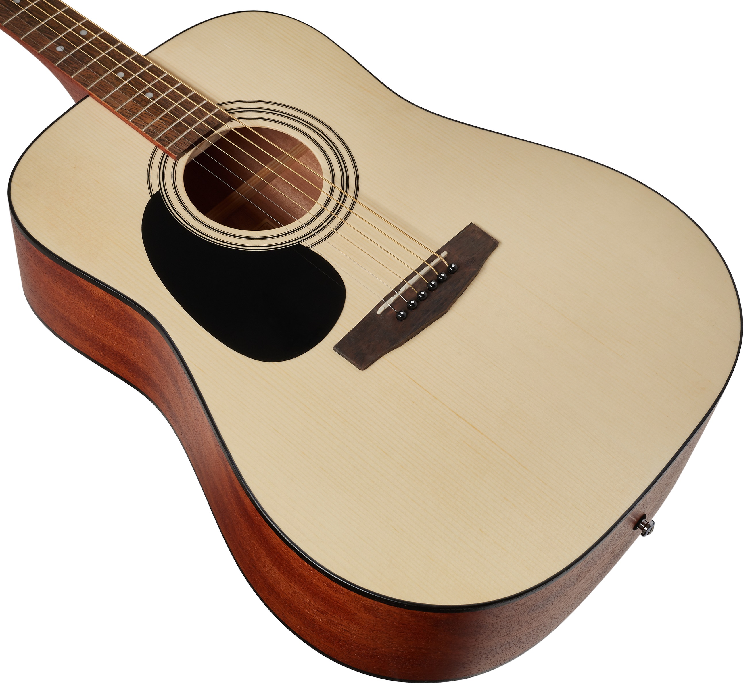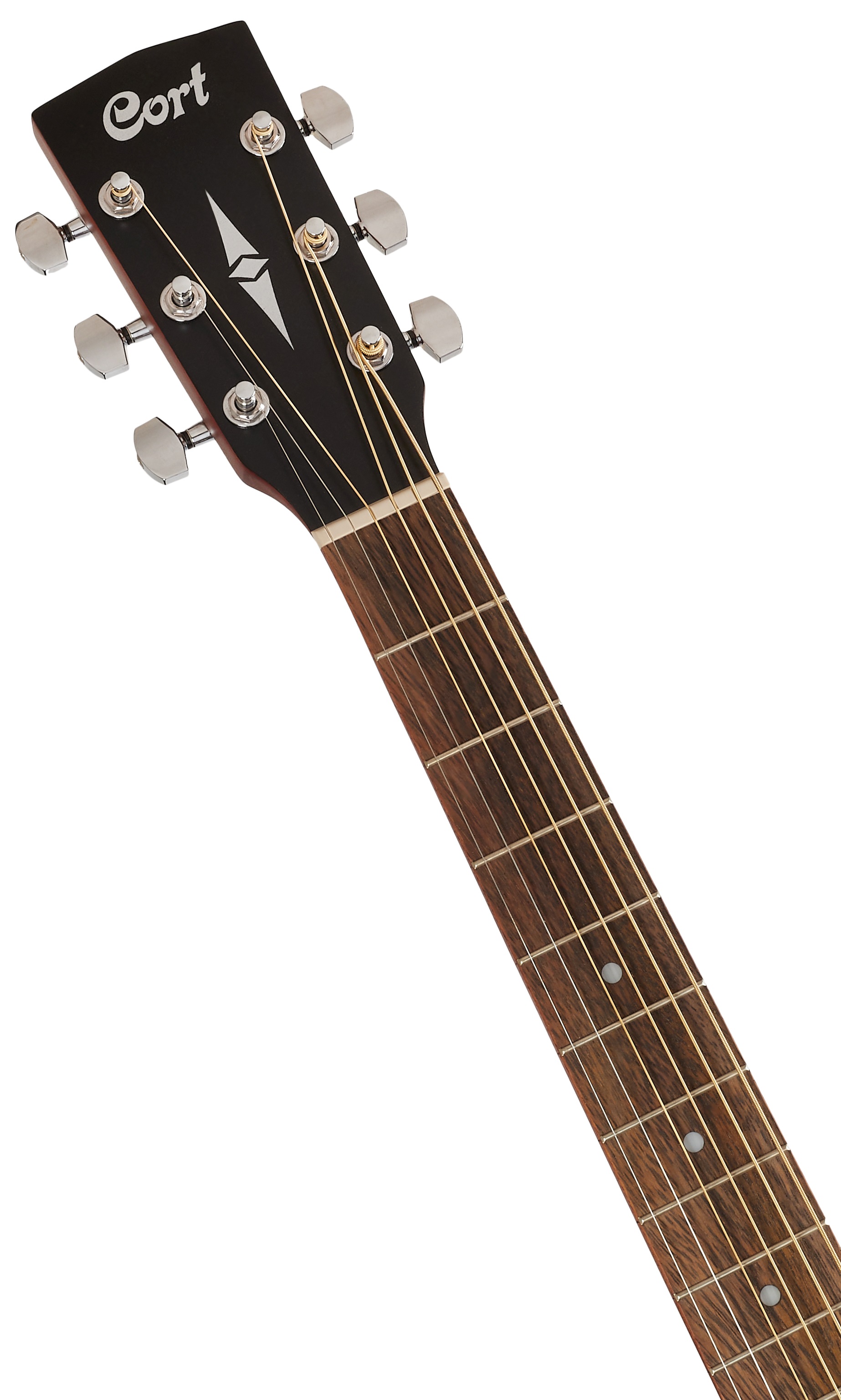 Ľavoruká akustická gitara Cort AD 810 je akustická gitara typu dreadnought. Vrstvené telo nástroja sa skladá zo smrekovej prednej dosky a mahagónovej zadnej dosky a lubov. Táto osvedčená kombinácia drevín dodáva nástroju vyvážený zvuk s potrebným množstvom tónovej čistoty a tepla. K mahagónovému krku je prilepený hmatník z exotického dreva merbau osadený dvadsiatimi pražcami s polohovacími bodmi, ktoré vám pomôžu orientovať sa na jeho povrchu. Uloženie strún v špeciálne tvarovanej hlavici z merbau a chrómov