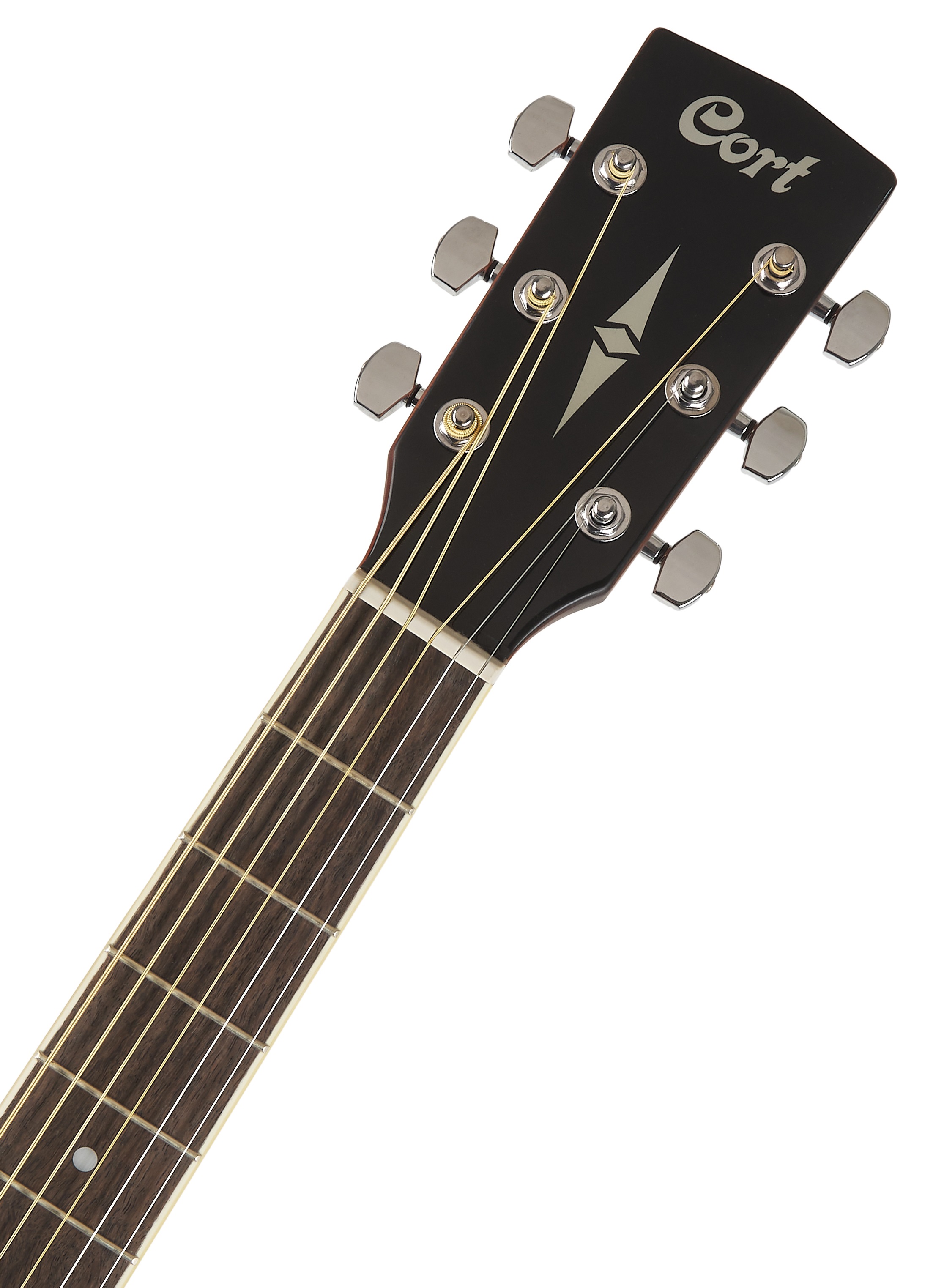 Elektroakustická gitara Cort AD 880CE je elektroakustická gitara typu dreadnought. Vrstvené telo nástroja pozostáva zo smrekovej rezonančnej dosky a mahagónovej zadnej dosky a lubov. Táto osvedčená kombinácia drevín dodáva nástroju vyvážený zvuk s potrebnou dávkou zvukovej čistoty a hrejivosti. K mahagónovému krku je prilepený hmatník z exotického dreva merbau osadený dvadsiatimi pražcami s polohovacími bodmi, ktoré vám pomôžu orientovať sa na jeho povrchu. Uloženie strún v špeciálne tvarovanej hlavici z me