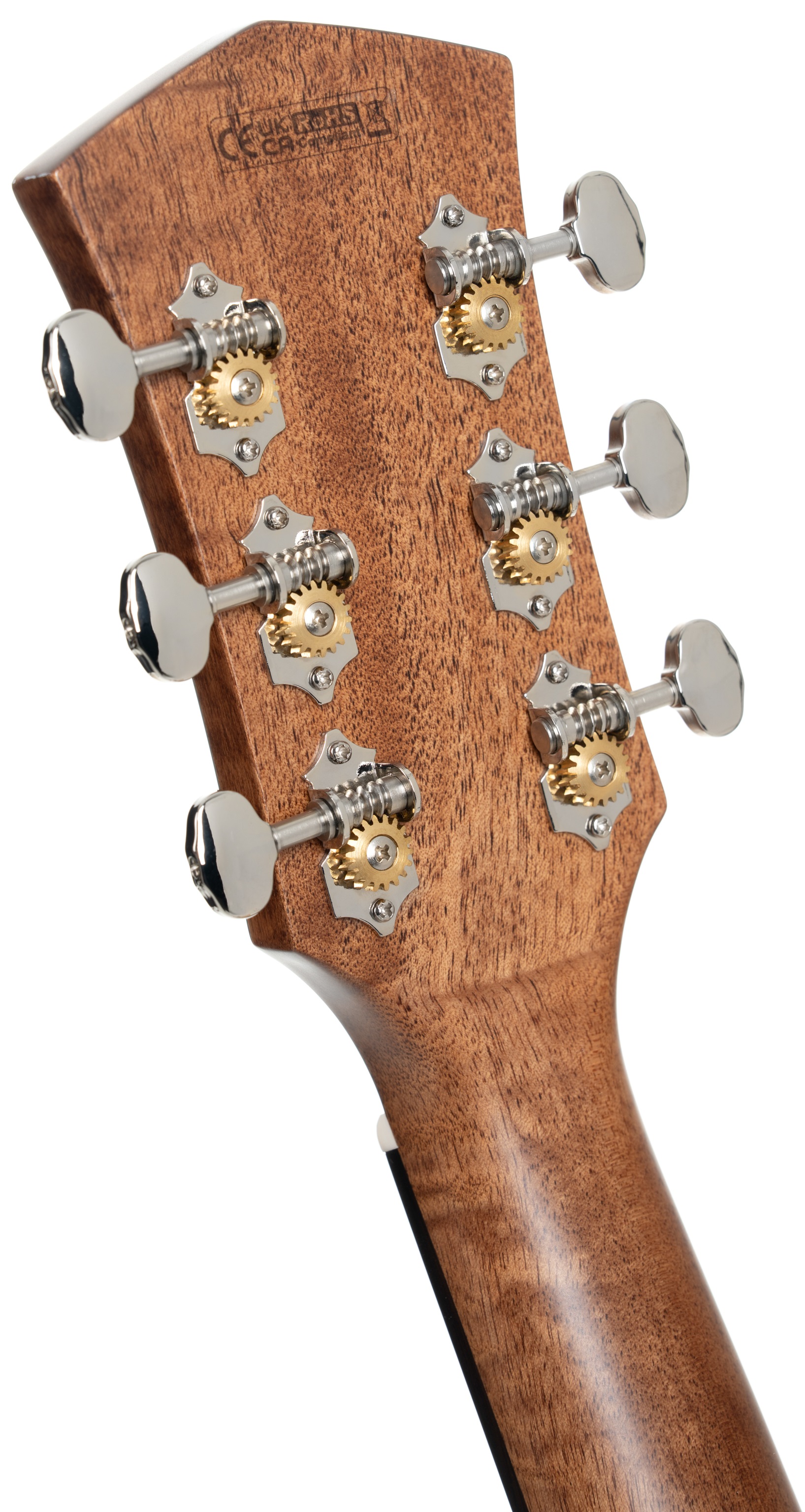 Elektroakustická gitara Elektroakustickou gitarou Core MC Ovangkol BTSG povstáva z popola séria Core spoločnosti Cort. Môžete sa tešiť na návrat cenovo dostupných celomasívnych gitár so striedmejším dizajnom, kde ornamentálne prvky plne kompenzuje prirodzený akustický zvuk a dobrá hrateľnosť. Kompaktnejšie telo Core MC Ovangkol BTSG je vyrobené z masívneho cédru (predná doska) a masívneho ovangkolu (zadná doska a luby). Rez