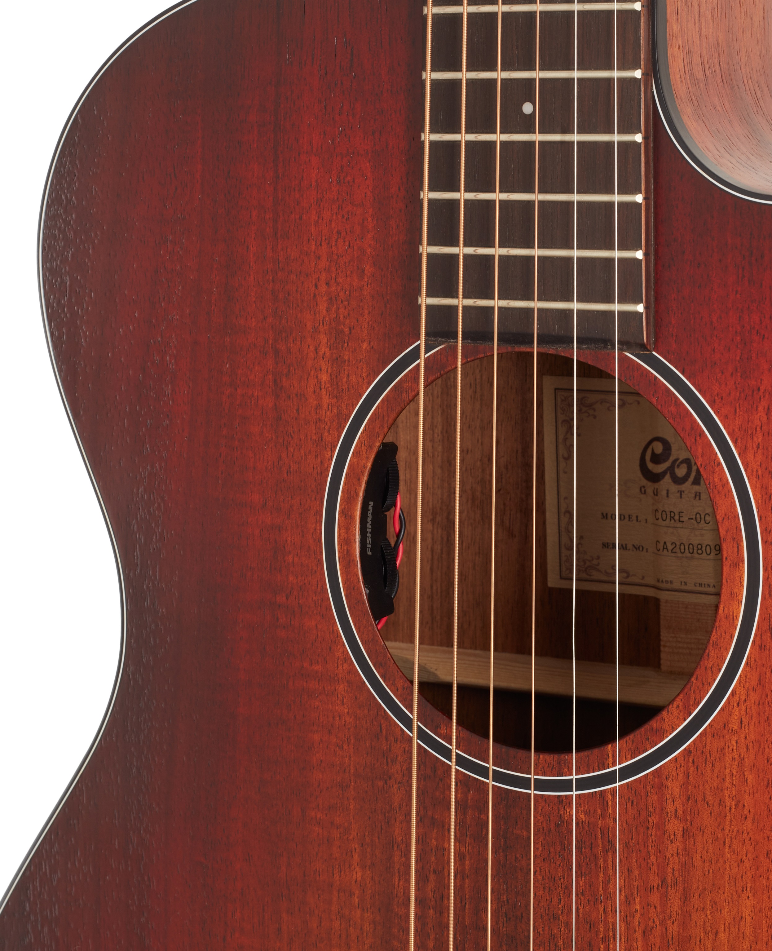 Elektroakustická gitara Séria Cort Core je rad kvalitne spracovaných elektroakustických gitár s masívnou konštrukciou tela a skromnejším dizajnom, kde sú dekoratívne prvky plne kompenzované prirodzeným akustickým zvukom, dobrými hernými vlastnosťami a rozumnou cenou pre gitaru s masívnym telom. Vďaka kompaktnejšiemu tvaru Orchestra (OM) sú gitary vhodné pre hudobníkov všetkých fyzických dispozícií a predovšetkým pre prstovú hru. Telo modelu CORE-OC ABW je vyrobené z čierneho dreva. Mahagónový krk je prilepe