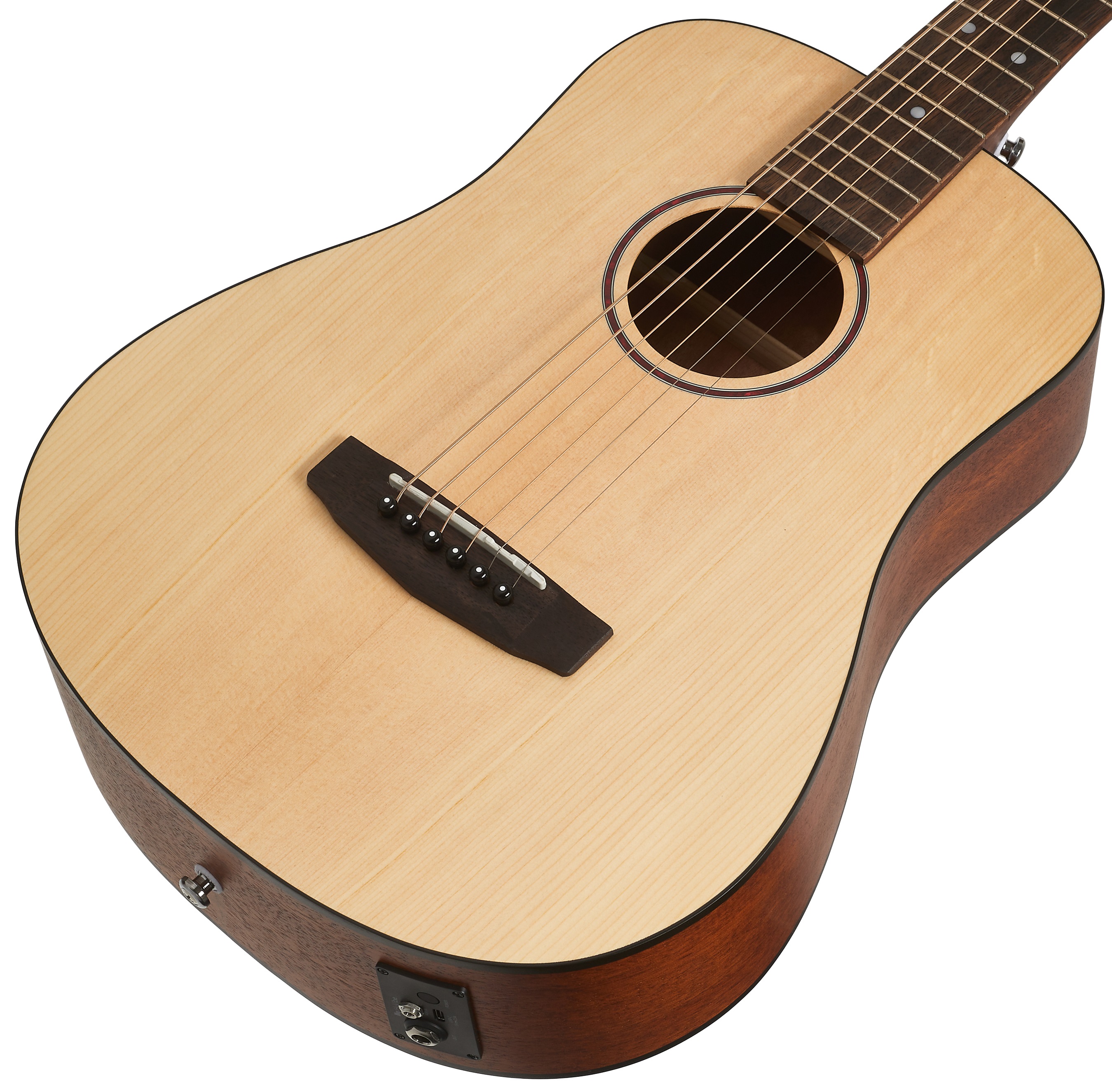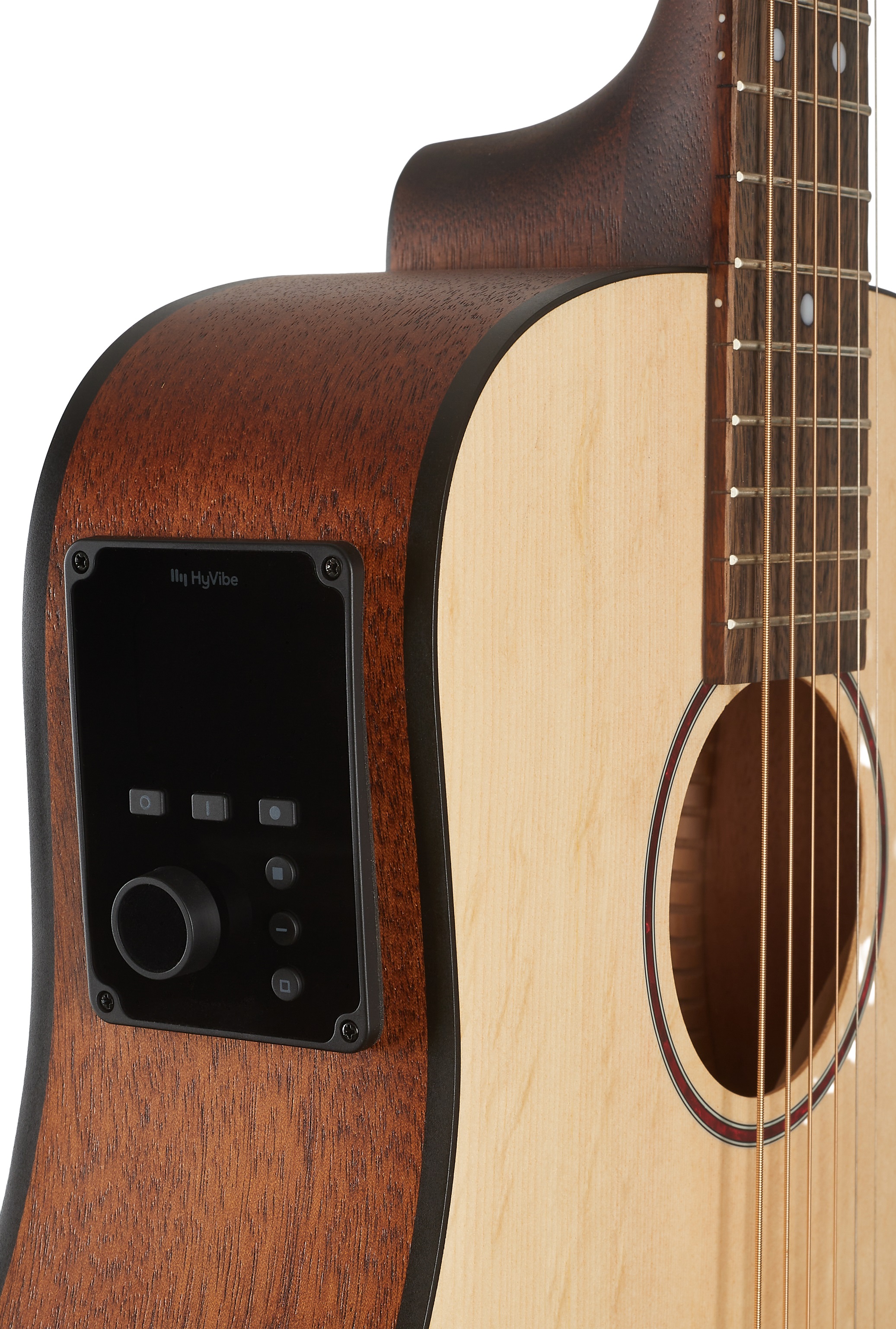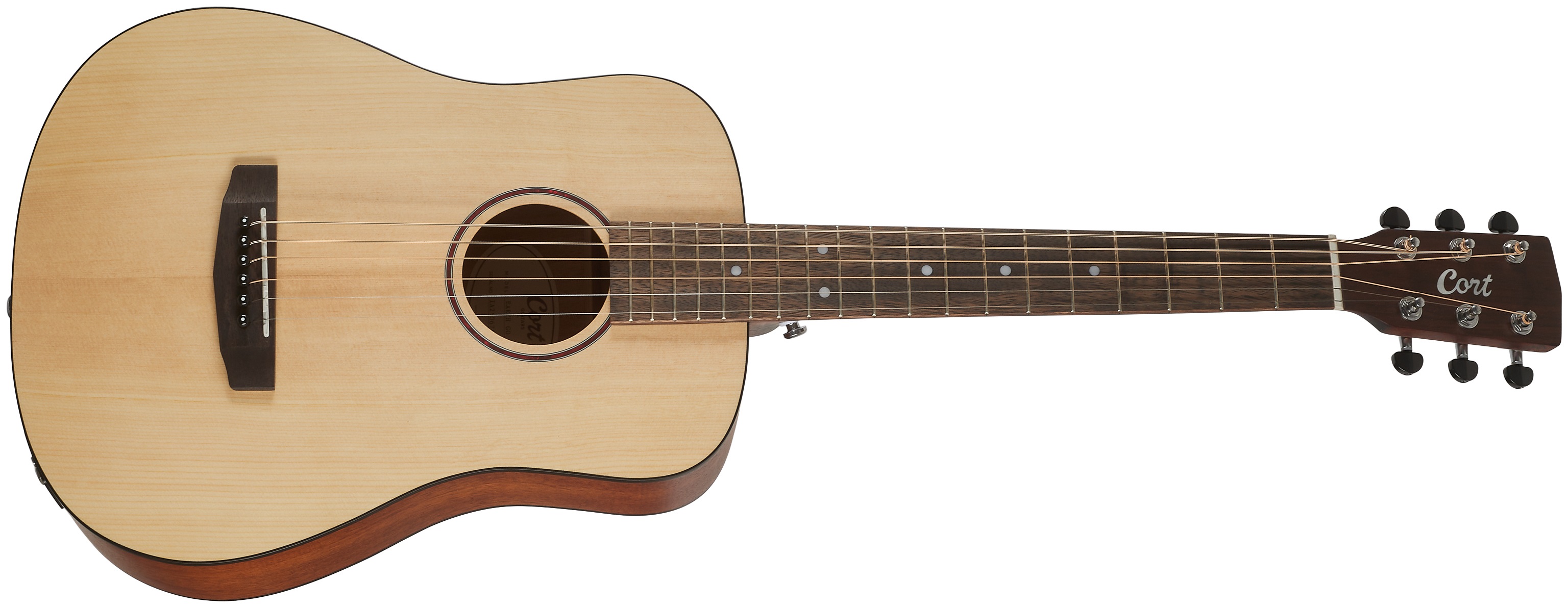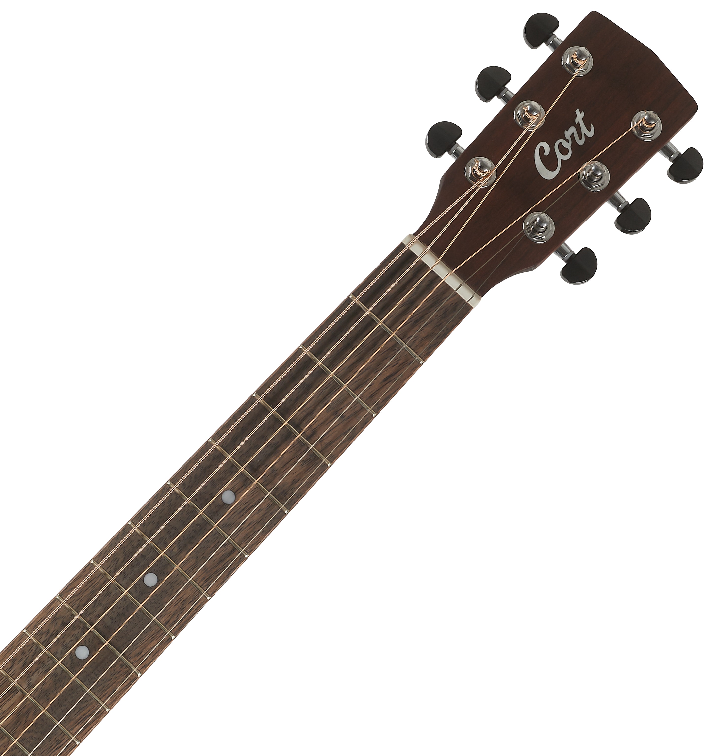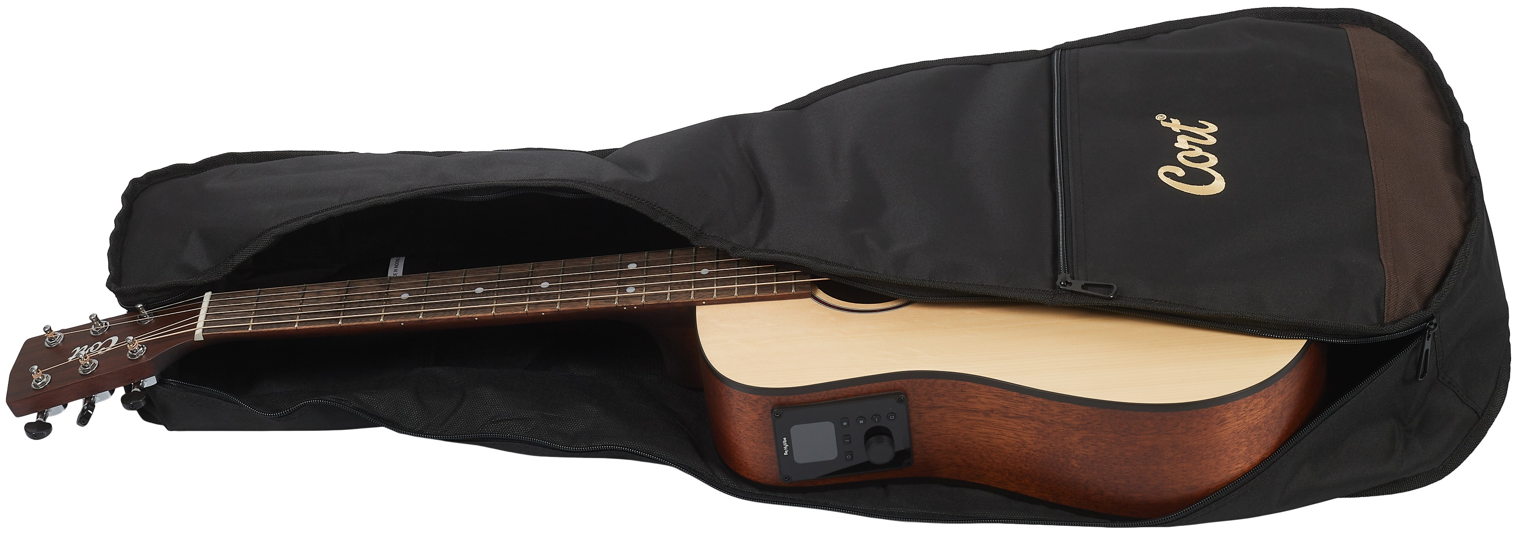 Elektroakustická gitara Kompaktné elektroakustické gitary Cort Earth GO ponúkajú nielen pohodlné telo veľkosti 3/4 Dreadnought, ale predovšetkým modernú elektroniku HyVibe H2, ktorá vďaka šikovným funkciám, ako je efektový procesor, looper, ladička, metronóm a kompatibilita s Bluetooth, úplne mení hru. Predná doska Earth GO OP je vyrobená z masívneho smreka Sitka, zatiaľ čo zadná doska a luby sú z laminovaného mahagónu. Mahagónový krk je prilepený k figovému hmatníku osadenému devätnástimi pražcami. Polohov