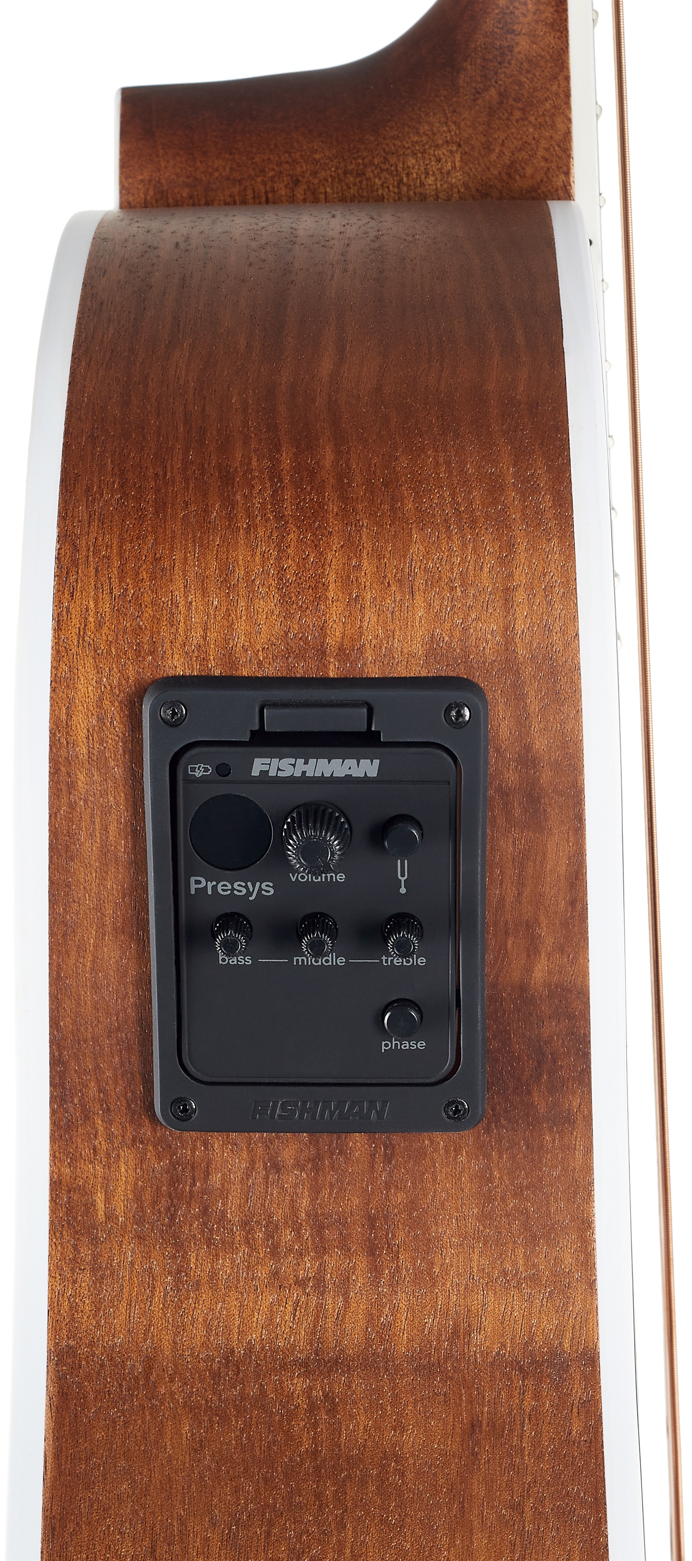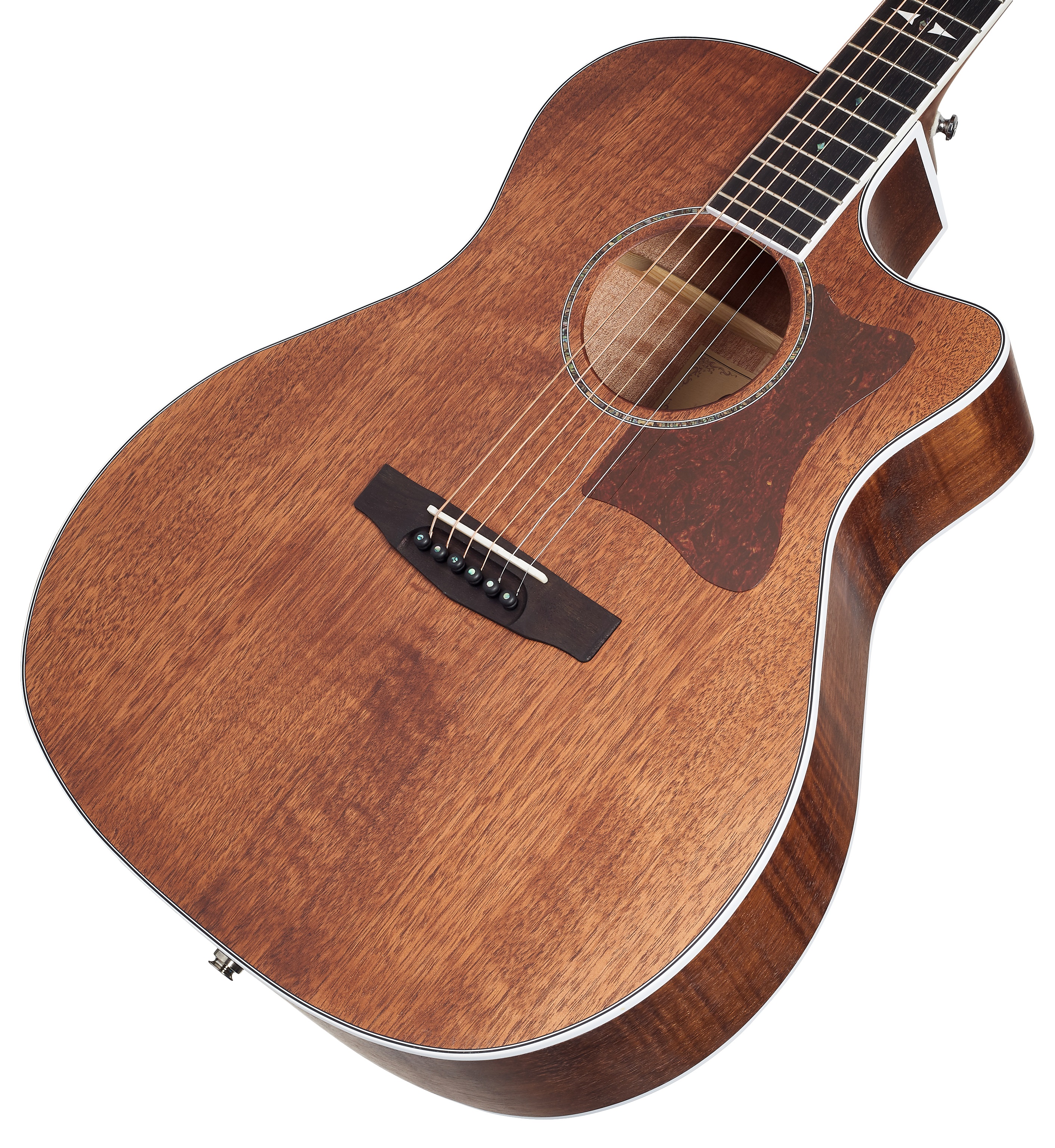 Elektroakustická gitara Modelový rad Grand Regal od spoločnosti Cort ponúka gitary v obľúbenom tvare Grand Auditorium (veľkosťou medzi väčším typom Dreadnought a menším typom Concert), ktoré ponúkajú plný, vyvážený zvuk univerzálne vhodný na hru prstami a trsátkom. Telo GA5F-FMH OP je vyrobené z vizuálne výrazného fládrovaného mahagónu. Povrchová úprava s otvorenými pórmi zlepšuje rezonanciu dreva a zároveň znižuje hmotnosť nástroja. K mahagónovému krku je prilepený 20-pražcový ovangkolový hmatník. Nižší st