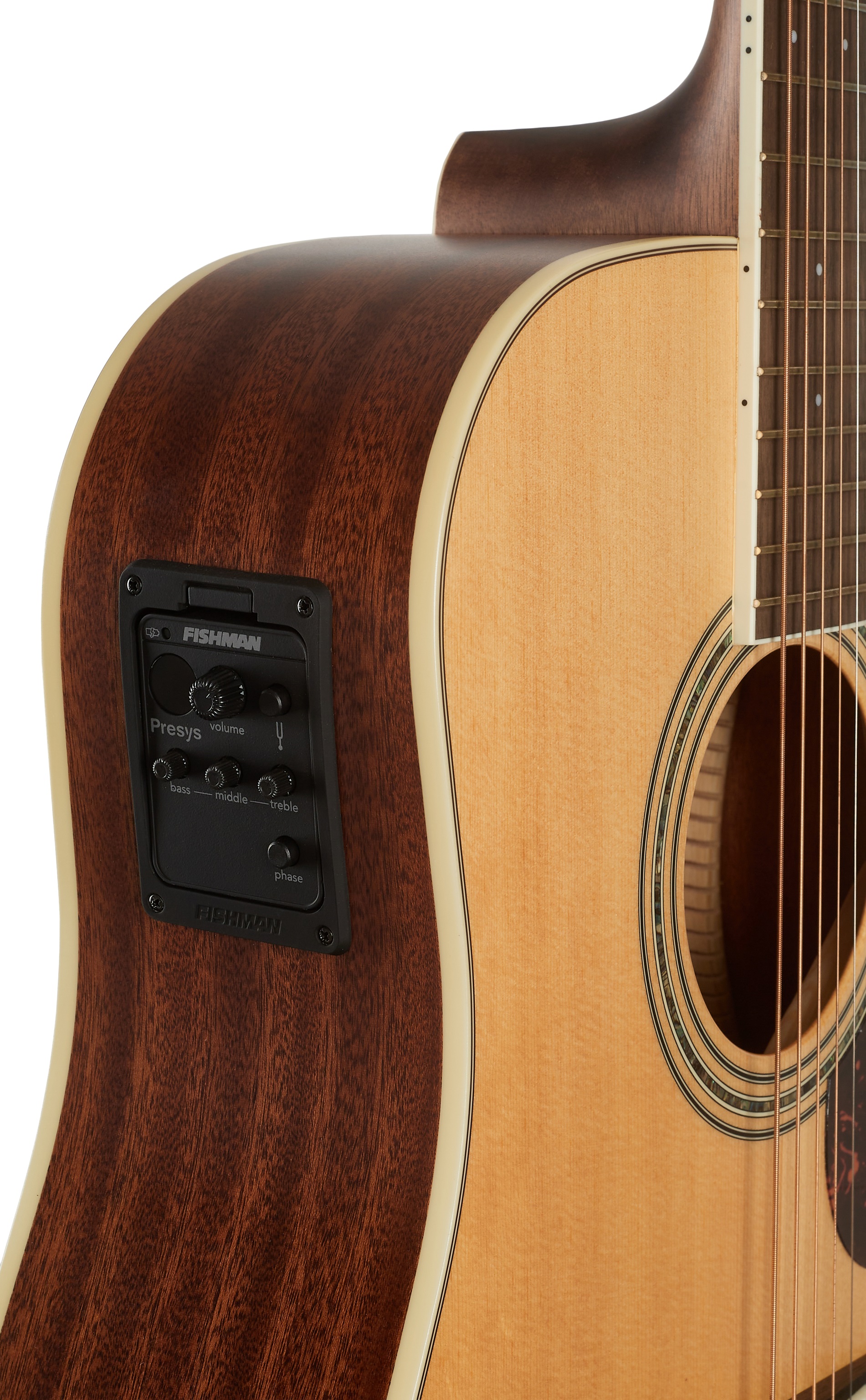 Elektroakustická gitara Séria MR je kvalitnejšia séria elektroakustických gitár Cort, ktorá ponúka obľúbený dizajn dreadnought, moderné funkcie a možnosť ozvučenia kvalitnou elektronikou – to všetko za veľmi prijateľnú cenu. Predná doska tejto gitary je vyrobená z masívneho smreka Sitka, zatiaľ čo zadná doska a luby sú z mahagónovej vrstvy. Táto osvedčená kombinácia drevín dodáva nástroju vyvážený zvuk s potrebným množstvom tónovej čistoty a tepla. Mahagónový krk je prilepený k ovangkolovému hmatníku s dvad