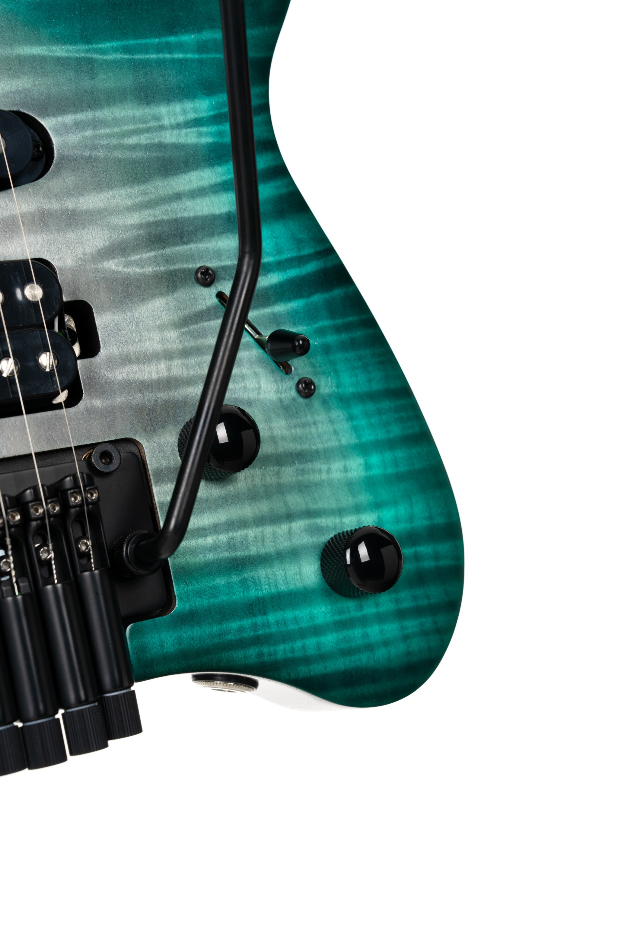 Elektrická gitara Po úspešnej sérii bezhlavých basgitár Space Bass prichádza Cort s novou radou bezhlavých elektrických gitár Cort Space G6. Telo bezhlavej gitary Space G6TR SGLG z okoumé zdobí efektná vrchná dýha z fládrovaného javora. K päťdielnemu krku z praženého javora a orecha je prilepený hmatník z praženého javora osadený dvadsiatimi štyrmi Medium Jumbo pražcami z nehrdzavejúcej ocele. Rádius hmatníka (12 – 15,75 palca) sa smerom k