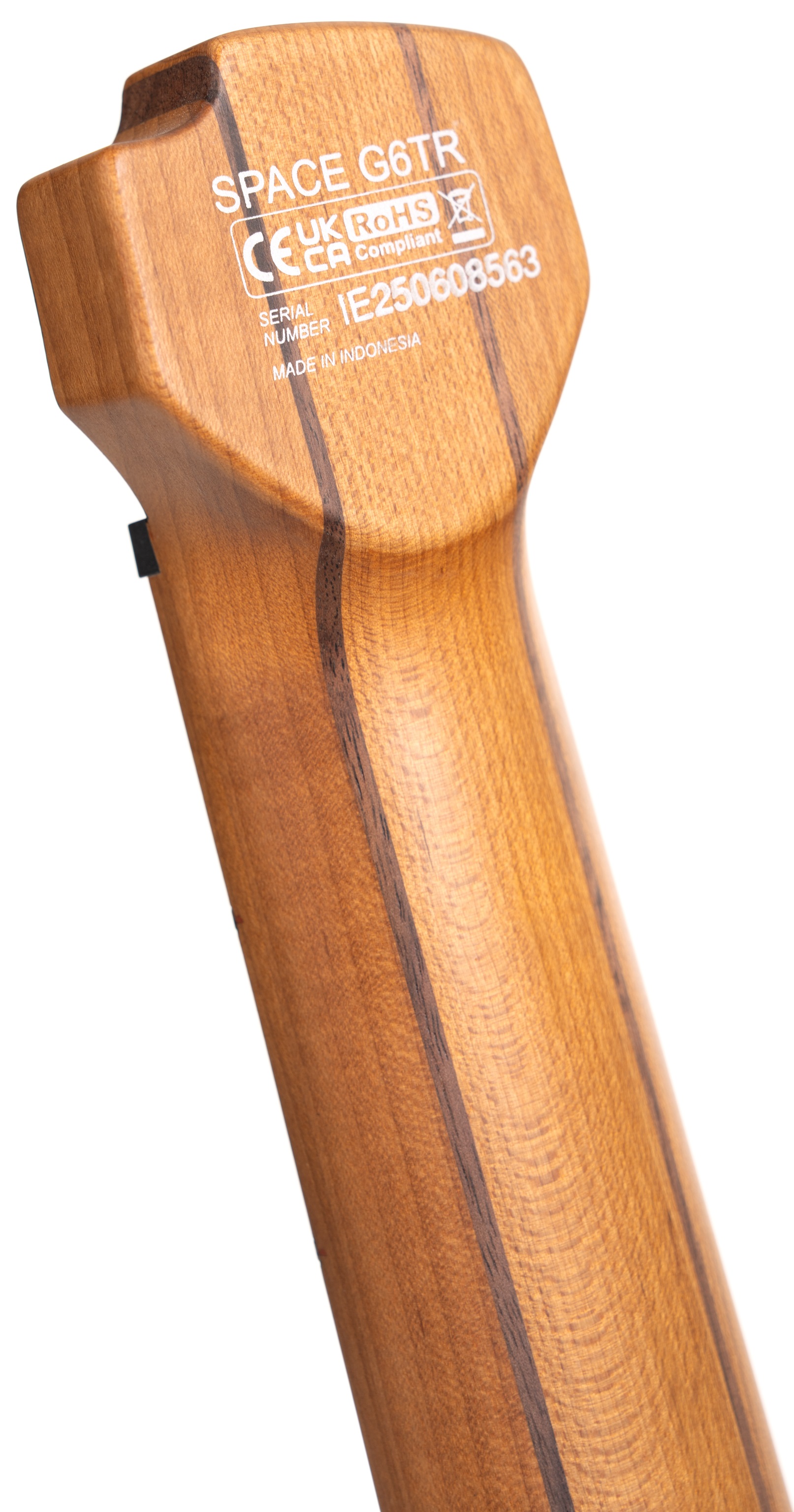 Elektrická gitara Po úspešnej sérii bezhlavých basgitár Space Bass prichádza spoločnosť Cort s novým radom bezhlavých elektrických gitár Cort Space G6. Bezhlavé telo Space G6TR SGLV z okoumé zdobí efektná vrchná dýha z fládrovaného javora. K päťdielnemu krku z praženého javora a orecha je prilepený hmatník z praženého javora osadený dvadsiatimi štyrmi Medium Jumbo pražcami z nehrdzavejúcej ocele. Rádius hmatníka (12 – 15,75 palca) sa smerom