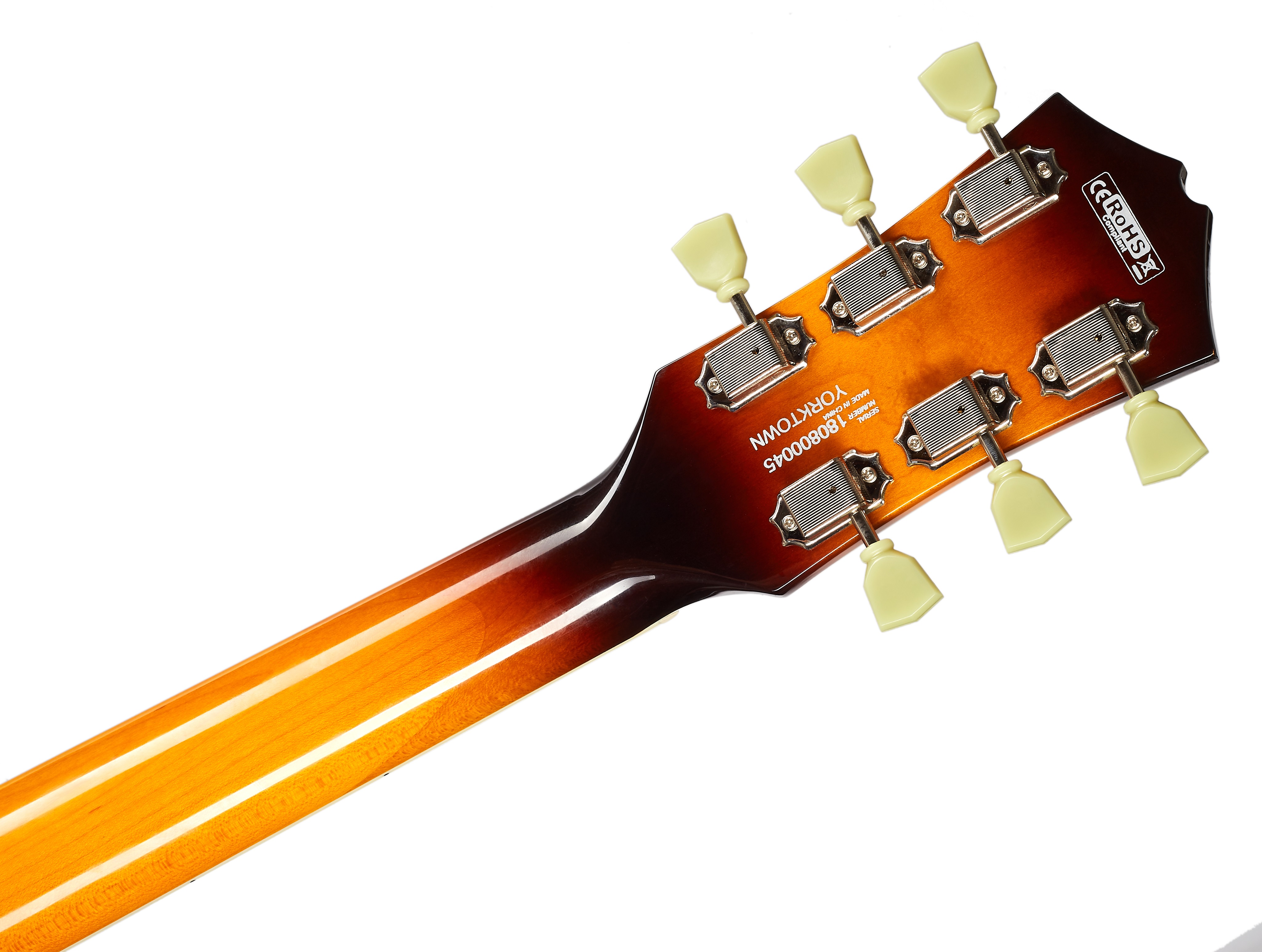 Semiakustická gitara Séria Cort Yorktown ponúka vysoko kvalitné elektrické gitary s dutým telom, tradičným dizajnom a plným, teplým zvukom dutého tela. Gitara Yorktown TAB s dutým telom je vyrobená z laminovanej smrekovcovej prednej dosky a laminovaného javorového zadného a bočných dielov. Javorový krk, pripevnený k telu pomocou pevného čapového spoja, je vybavený ovangkolovým hmatníkom s dvadsiatimi pražcami. Perleťové zna