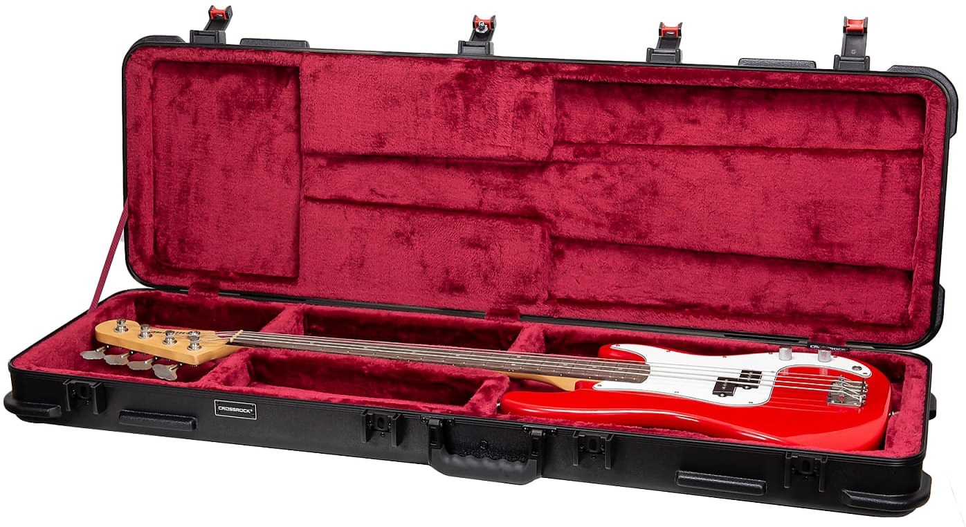 Kufor na elektrickú basgitaru Hľadáte spoľahlivý cestovný kufor na basgitaru, ktorý prežije cestovanie dodávkou aj lietadlom? Crossrock CRA980BBK pre elektrické basgitary je vyrobený z pevného a odolného polyetylénu, ktorý poskytne vášmu nástroju prvotriednu ochranu pred mechanickým poškodením. Je tiež vybavený kvalitnými zámkami TSA, ktoré zabezpečia, že sa kufor samovoľne neotvorí a obstojí aj pri letiskovej kontrole. Vnútro puzdra je vystlané hustou penou, ktorá zaručuje