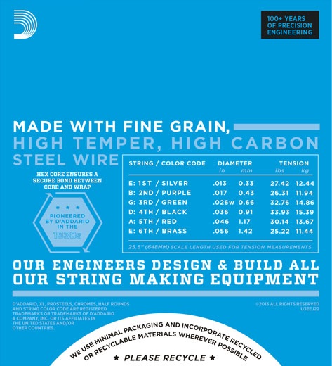 Struny na elektrickú gitaru Tento balík obsahuje struny 013″/056″ s vinutou strunou G. Ideálne pre jazz a iné hudobné štýly. Struny D’Addario XL pre elektrickú gitaru sú dlhodobo bestsellerom vo svete gitarových strún a je nepravdepodobné, že by niekedy vyšli z módy. Sú osvedčeným zlatým štandardom, ktorý je populárny od roku 1974, takže nebudete sklamaní. Základom je šesťhranné oceľové jadro, ktoré zaisťuje perfektnú intonáciu, dlhú životnosť a konzistentný pocit pri hraní. Opletené struny