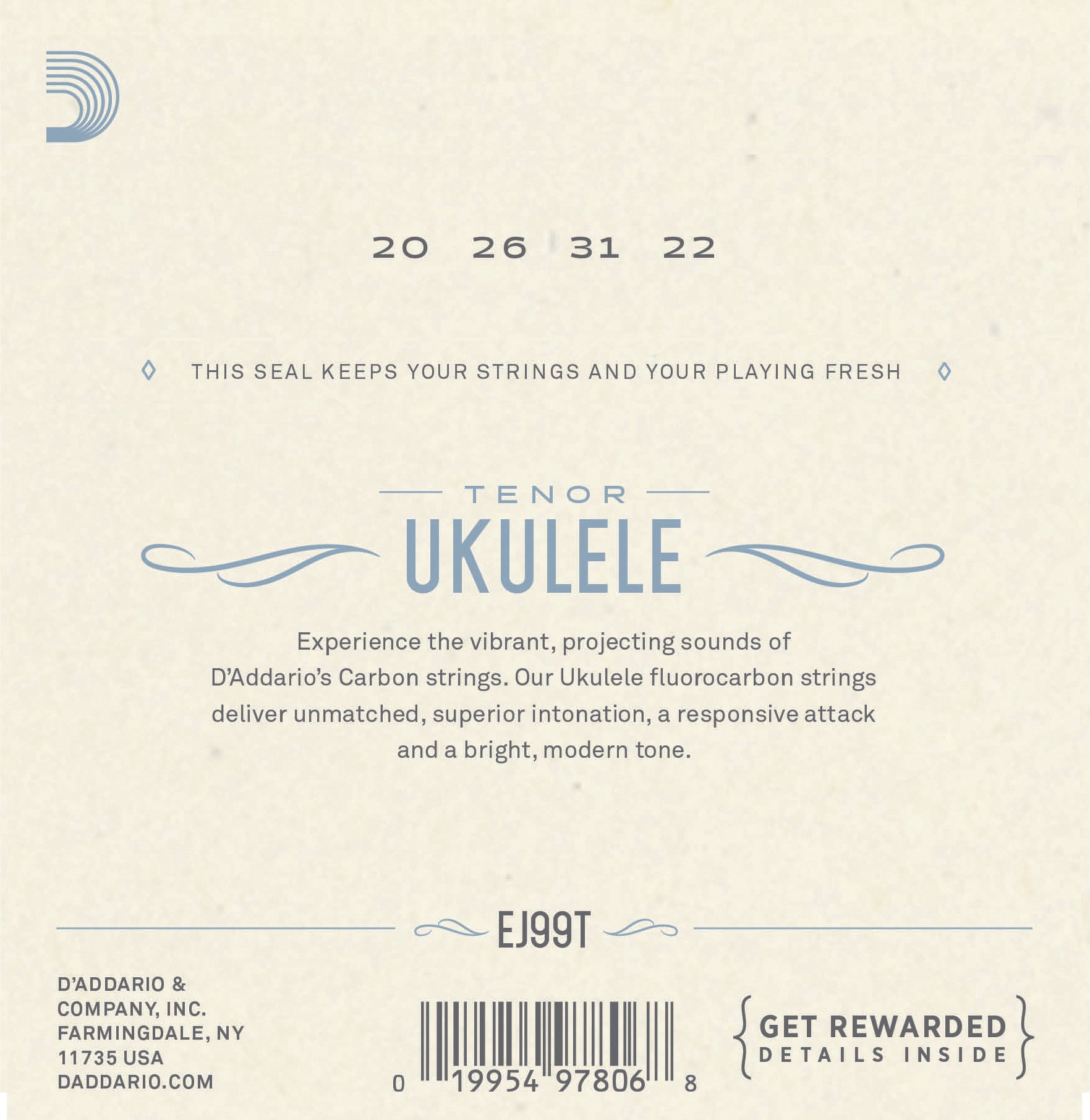 Struny na tenorové ukulele Struny D’Addario zo série Fluorocarbon sú vyrobené z uhlíkových strún Pro-Arté a produkujú cinkavý, prenikavý tón, ktorý sa najlepšie hodí pre moderné štýly hry. Vynikajú aj presnou intonáciou. Táto sada je určená pre tenorové ukulele a je vhodná najmä pre ladenie GCEA.