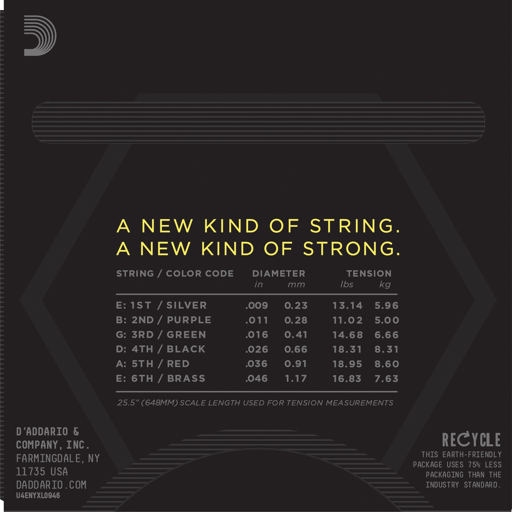 Struny na elektrickú gitaru Struny D’Addario NYXL premium pre elektrickú gitaru sú navrhnuté tak, aby prekračovali hranice. Zároveň sú vďaka silným stredným frekvenciám veľmi výrazné, špecifické a čisté. Poskytujú tiež výnimočne presnú stabilitu ladenia. Ich šesťhranné jadro je vyrobené zo špeciálnej zliatiny NY Steel, ktorá je o 40 % odolnejšia ako bežná oceľ, takže sa nemusíte obávať častého praskania. Okrem toho je niklované oceľové vinutie navinuté pomocou špeciálnej technológie Fusion