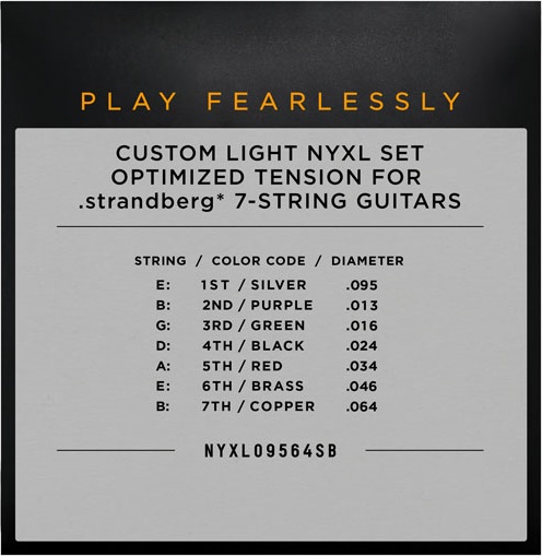 Struny na sedemstrunovú elektrickú gitaru Tento balík obsahuje struny optimalizované pre sedemstrunové gitary Strandberg s variabilnou dĺžkou menzúry. Prémiové struny D’Addario NYXL pre elektrickú gitaru sú navrhnuté tak, aby prekonávali hranice. Zároveň sú vďaka silným stredným frekvenciám veľmi výrazné, presné a čisté. Poskytujú tiež výnimočne presnú stabilitu ladenia. Ich šesťhranné jadro je vyrobené zo špeciálnej zliatiny NY Steel, ktorá je o 40 % odolnejšia ako bežná o