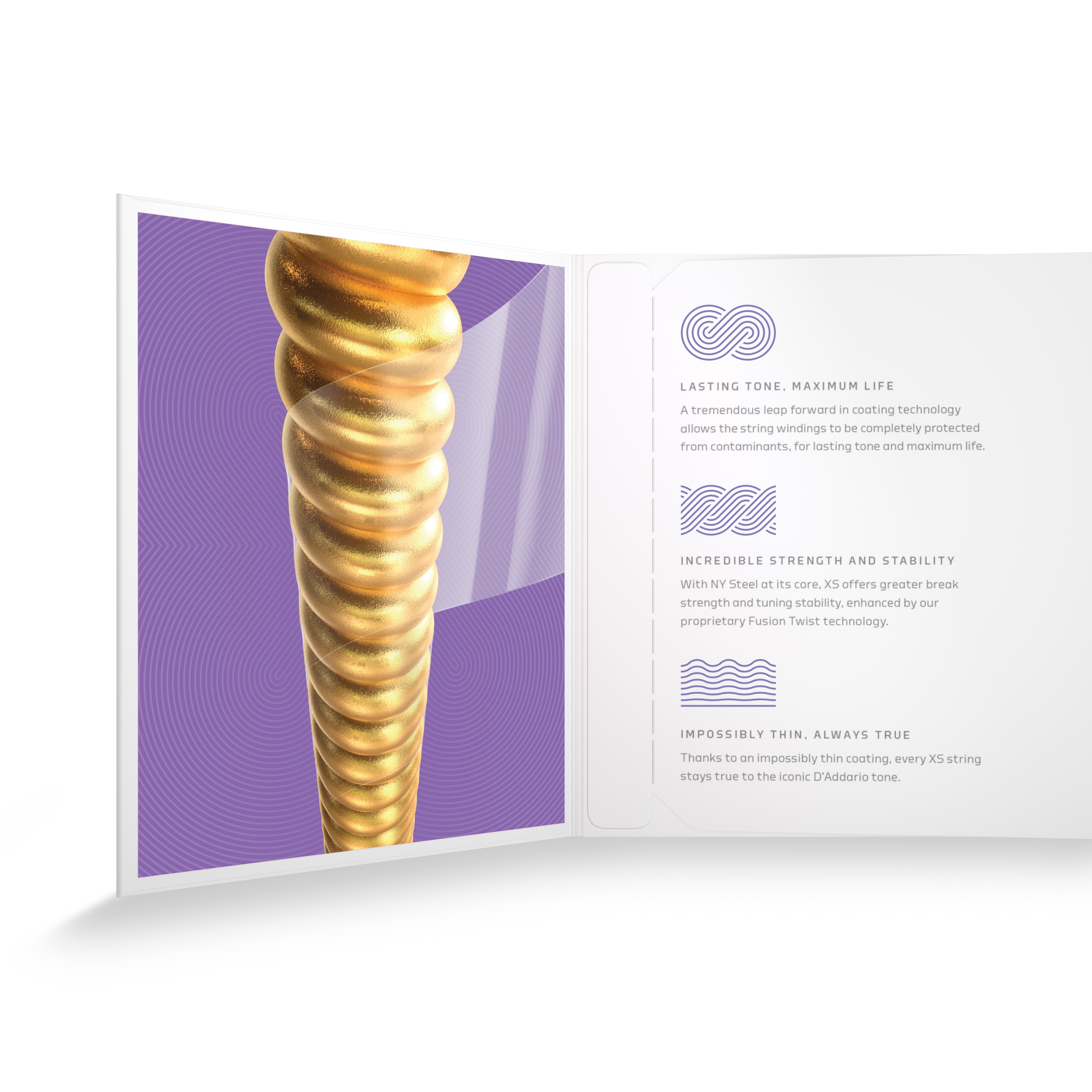 Kovové struny na akustickú gitaru Špičkové struny XS od spoločnosti D’Addario predstavujú technologický prielom v oblasti potiahnutých strún a patria medzi najlepšie, ktoré nájdete v katalógu tejto svetoznámej spoločnosti. Tieto struny kombinujú to najlepšie zo série XT, ale posúvajú latku ešte vyššie. Neuveriteľne tenký povlak im dodáva bezkonkurenčnú odolnosť a príjemne hladký povrch, bez toho, aby to malo negatívny vplyv na vynikajúce zvukové vlastnosti, pre ktoré sú str