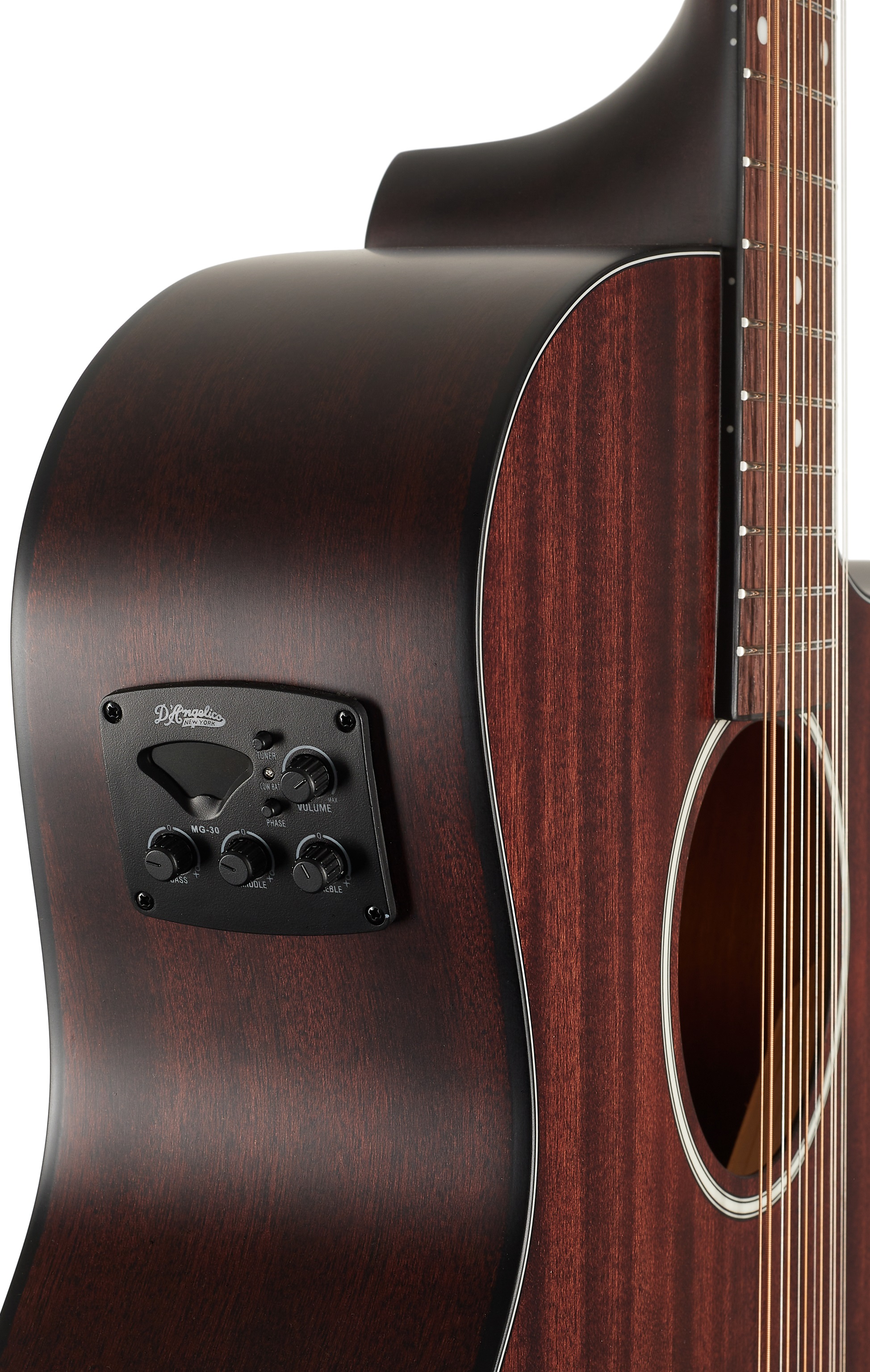 Dvanásťstrunová elektroakustická gitara D’Angelico Premier Fulton LS je cenovo dostupná 12-strunová elektroakustická gitara v obľúbenom tvare Grand Auditorium. Telo nástroja je vyrobené z laminovaného mahagónu. Mahagónový krk s profilom „C“ je prilepený k hmatníku z tepelne upraveného dreva merbau (torrefied) osadenému dvadsiatimi pražcami typu Medium Jumbo. Orientáciu na jeho povrchu uľahčujú polohové bodky z imitácie perlete. Užší profil krku a nižší výrez tela zaručujú ľahký dotyk a plynulý pohyb ruky po