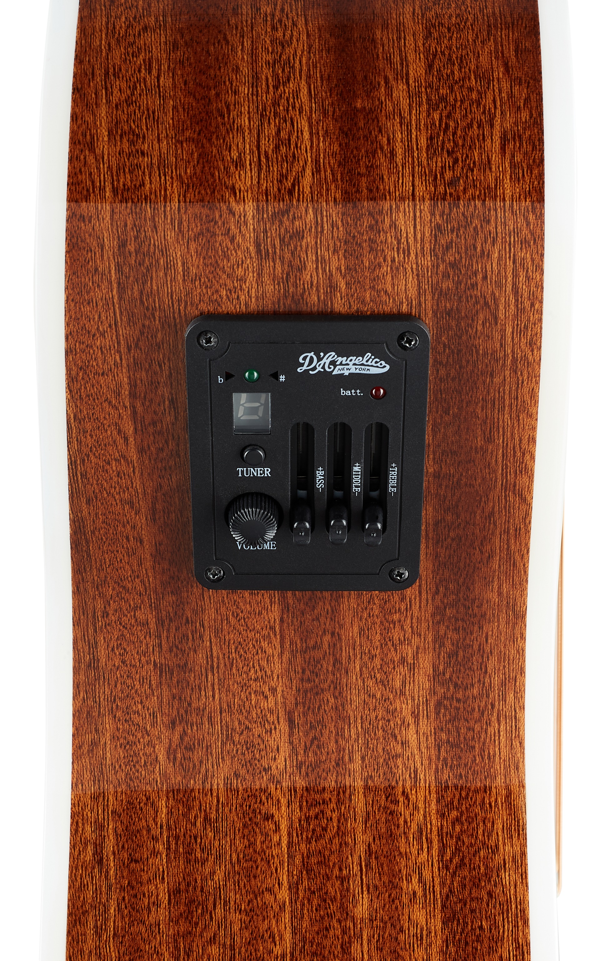 Elektroakustická gitara D’Angelico Premier Gramercy je polomasívna elektroakustická gitara v obľúbenom tvare Grand Auditorium, ktorá vás poteší krásnym dizajnom a teplým, vyváženým tónom. Akustické vlastnosti tohto nástroja oceníte pri hre trsátkom a prstovou technikou. Predná doska gitary je vyrobená z masívneho smreka Sitka, zatiaľ čo zadná doska a luby sú z laminovaného mahagónu. Dobré akustické vlastnosti gitary podporuje redukované rebrovanie X (Scalloped X). Mahagónový krk s užším „C“ profilom je pril