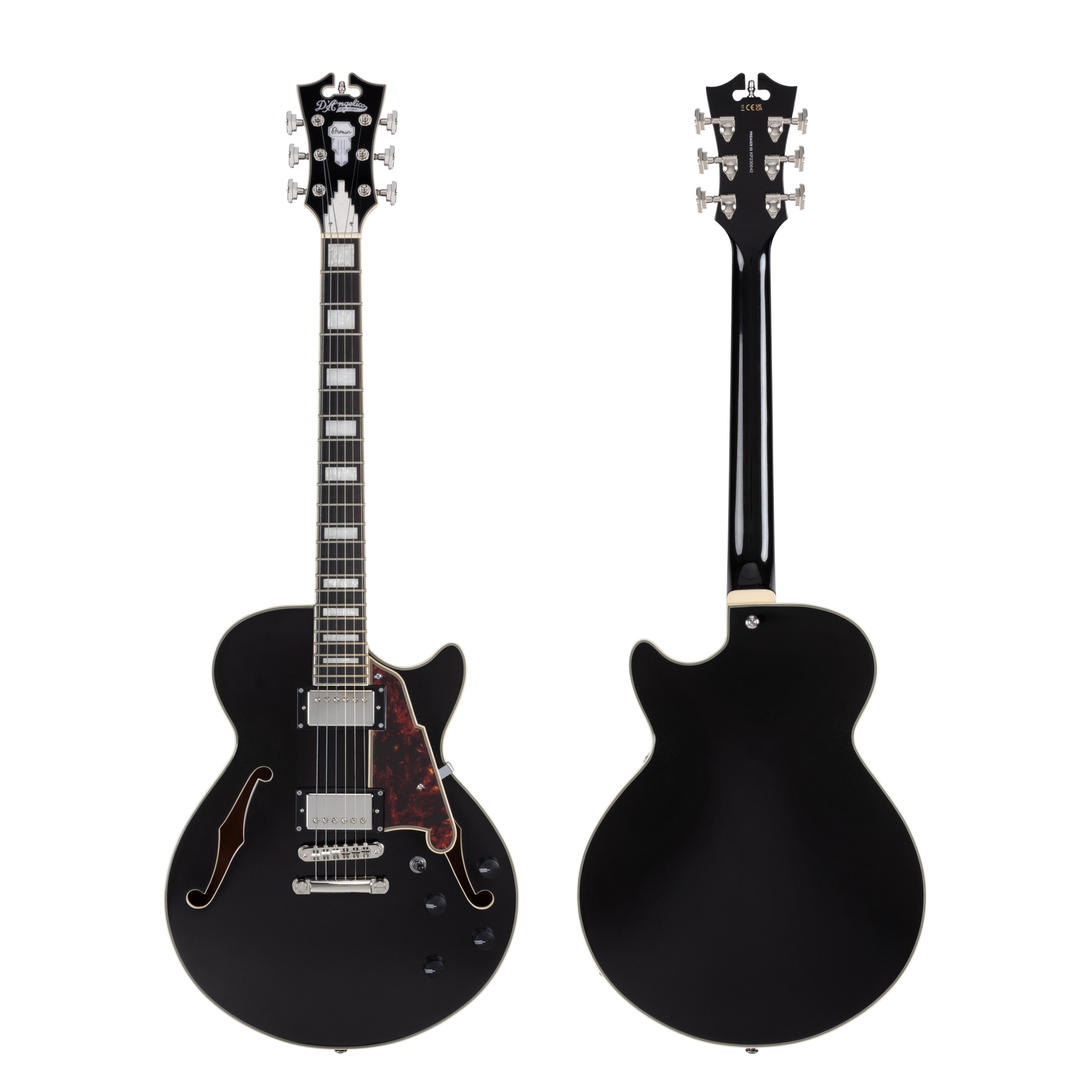 Semiakustická gitara Séria Premier predstavuje cenovo dostupnejšie nástroje z portfólia D’Angelico, ktoré však stále spĺňajú všetky požiadavky na kvalitu spojené s touto značkou. Premier SS sú poloduté gitary v single-cut dizajne. Polodutá konštrukcia modelu PREMIER SS Black Flake je vyrobená z laminovaného javora. Stredový blok posilňuje vrchnú dosku a potláča nežiaduci efekt „vyztuženia“ tela. Javorový krk je vybavený hmatníkom z pau ferr