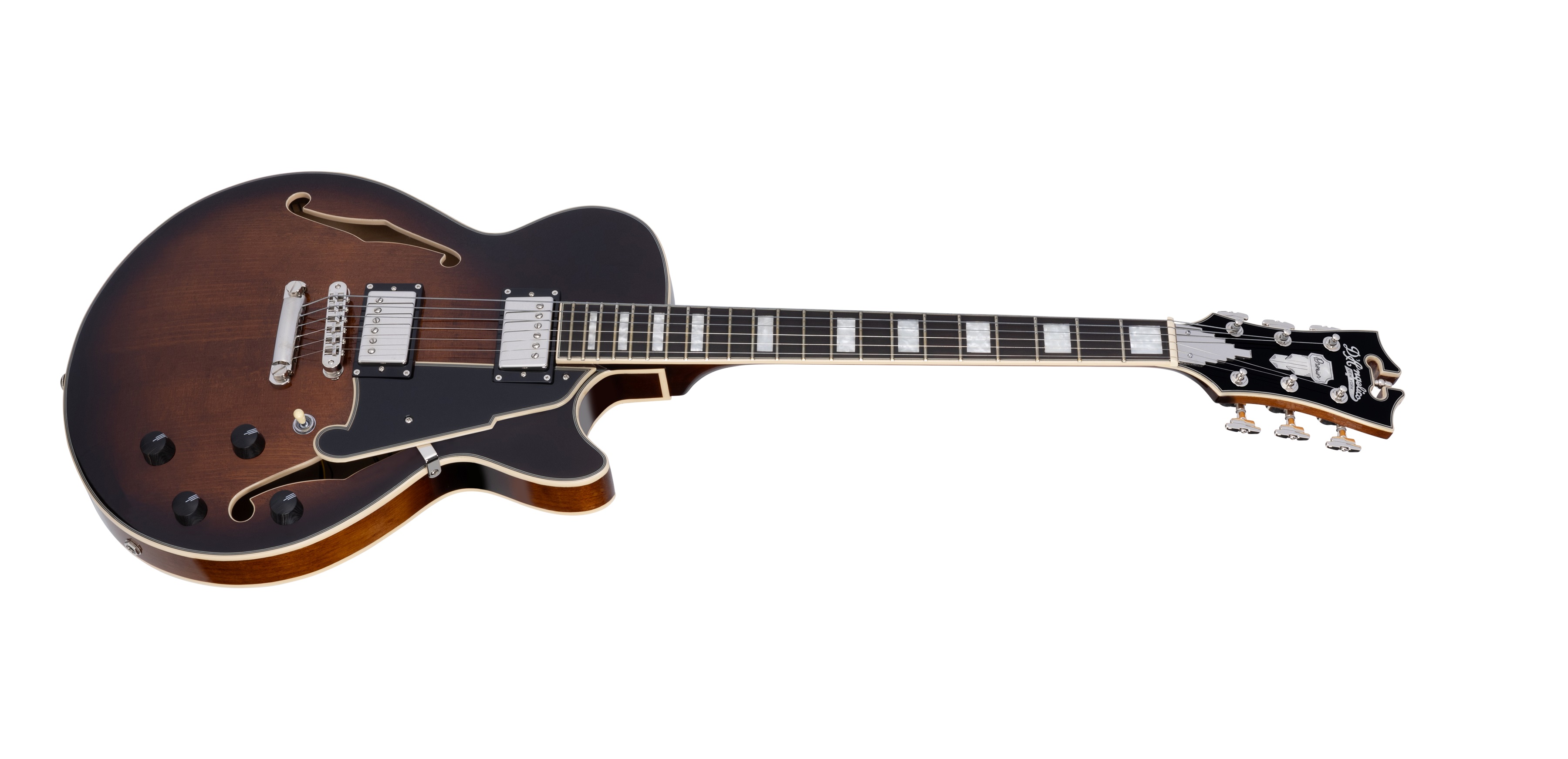 Semiakustická gitara Rad Premier predstavuje cenovo dostupnejšie nástroje v portfóliu značky D’Angelico, ktoré však spĺňajú všetky požiadavky na kvalitu remeselného spracovania spojené s touto značkou. Premier SS sú poloduté gitary v prevedení single-cut. Pololubová konštrukcia modelu PREMIER SS Brown Burst pozostáva z laminovanej javorovej zadnej dosky a lubov, vrchnej dosky so smrekovou dyhou a stredového bloku. K javorovému krku je prilepený pau ferro hmatník osadený dvadsiatimi dvoma Medium Vintage praž