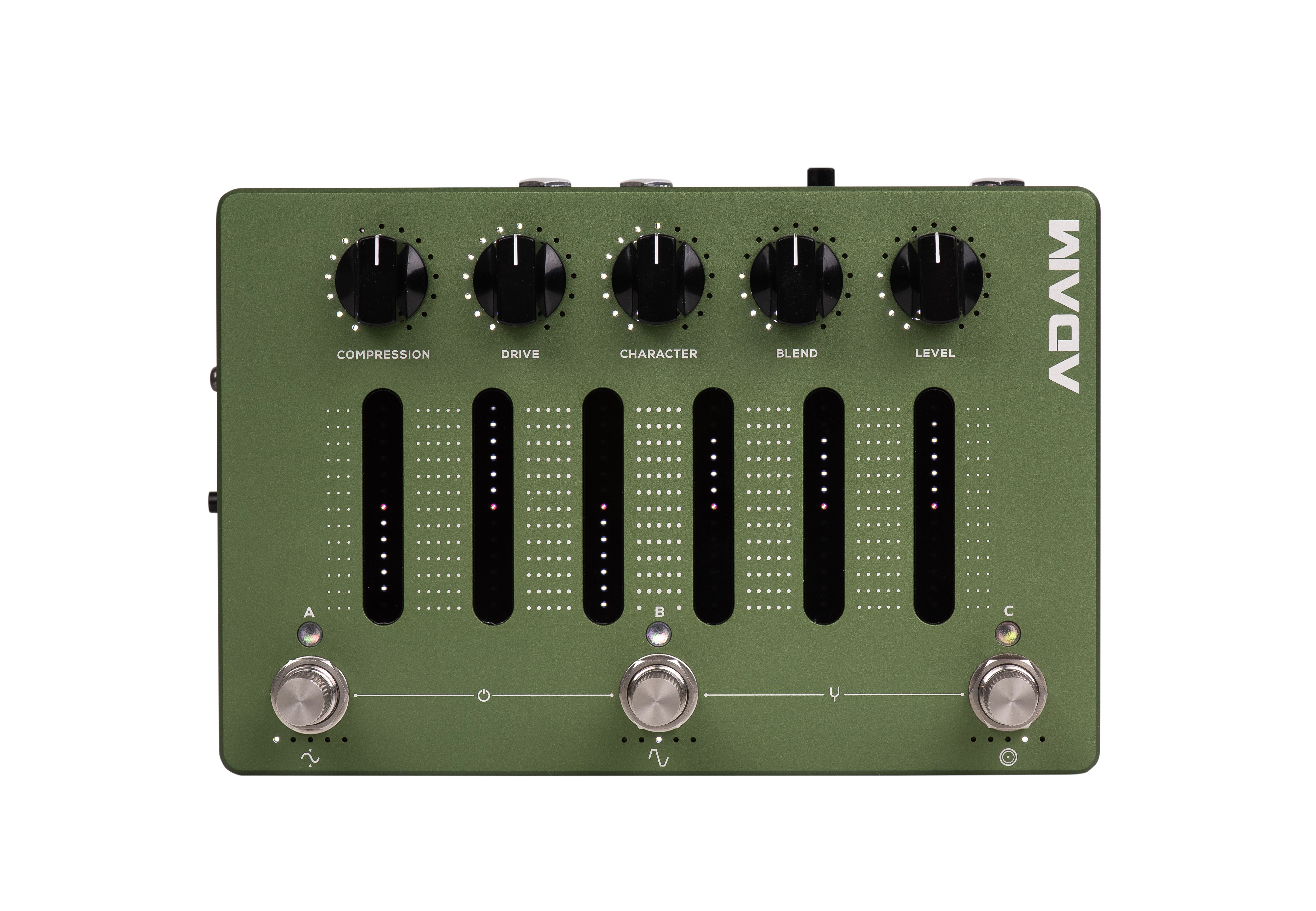 Basgitarový efekt Basový efekt ADAM (Aggressively Distorting Advanced Machine) je signature pedál slávneho metalového basgitaristu Adama „Nollyho“ Getgooda zo skupiny Periphery. V tomto pedáli sa nachádza prakticky celý zvukový arzenál, ktorý Nolly vybudoval počas mnohých rokov starostlivým testovaním. Teraz máte aj vy k dispozícii tento legendárny zvukový arzenál, ktorý sa špičkovej firme Darkglass podarilo vtesnať do jedného efektového pedálu. Tento pedál je vybavený tromi plne programovateľnými predvoľba